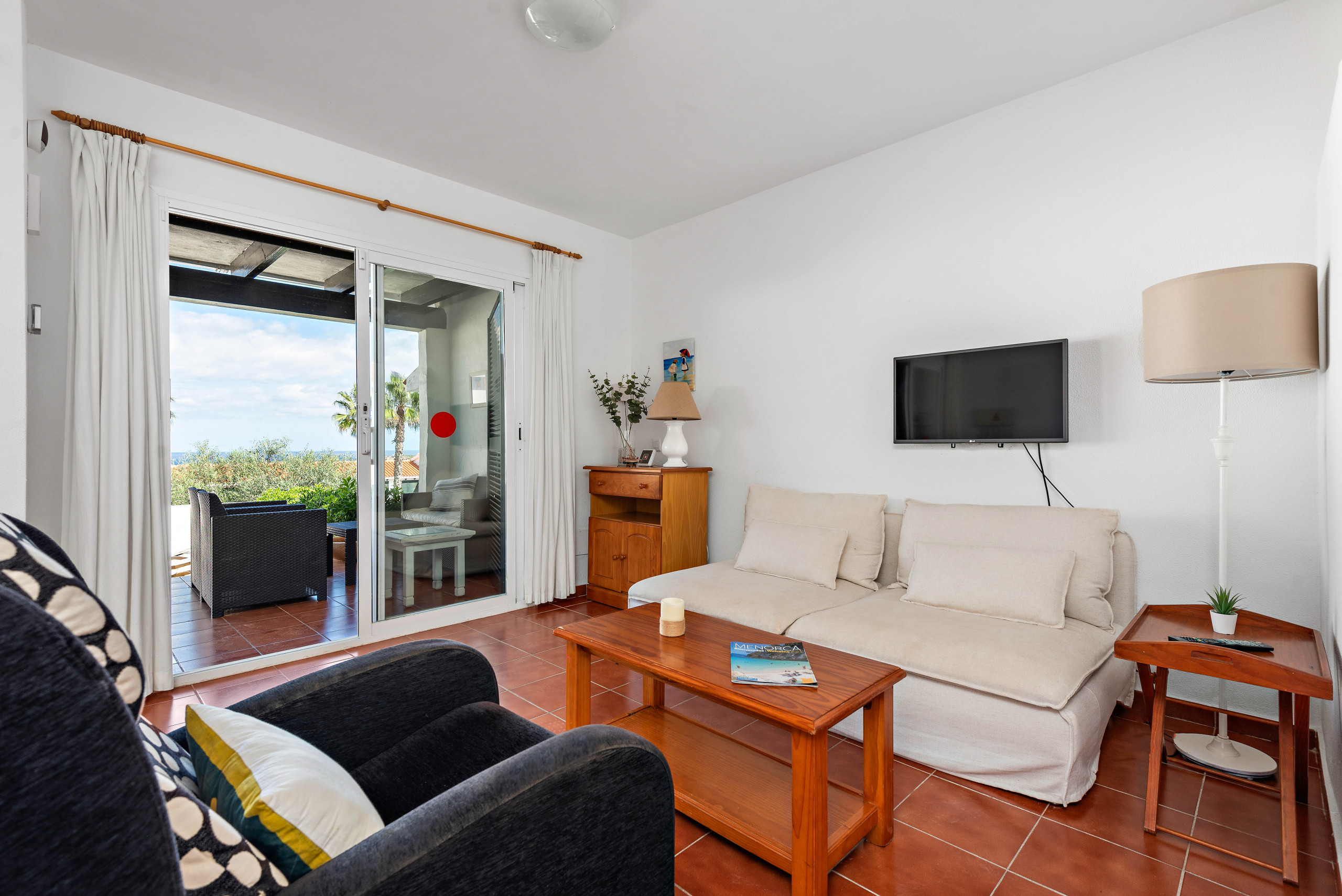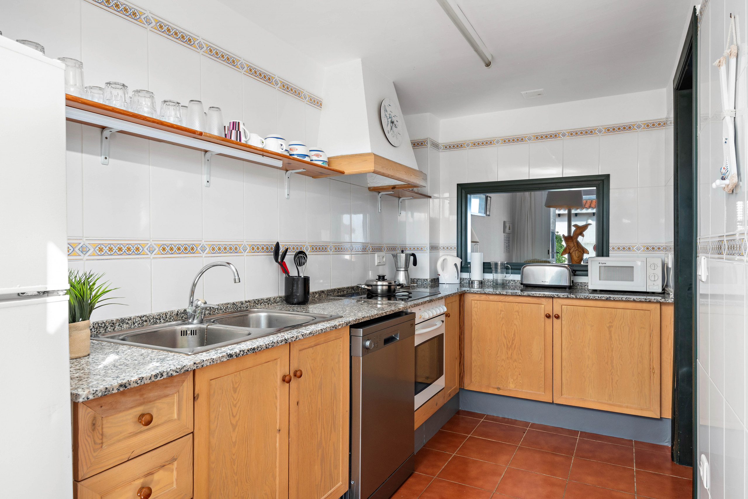 Espacioso salón comedor con TV y Wifi, con un ventanal que da acceso a la terraza. Cocina independiente, bien equipada con horno eléctrico, vitrocerámica, lavaplatos, tostadora, nevera, microondas, lavadora, cafetera de capsulas y cafetera italiana.