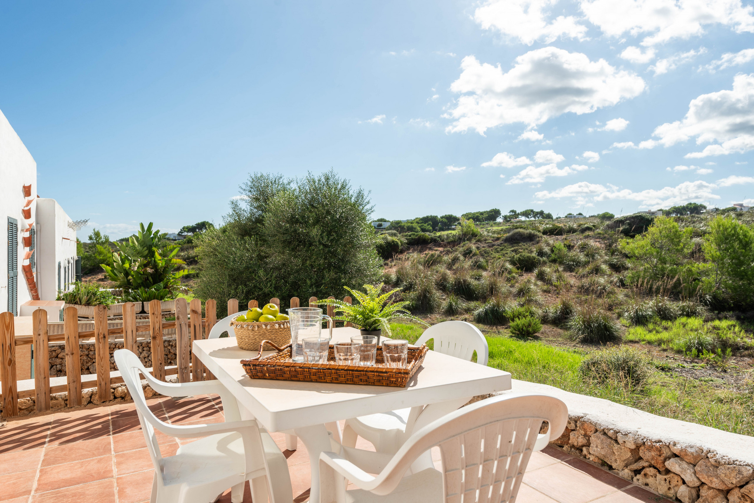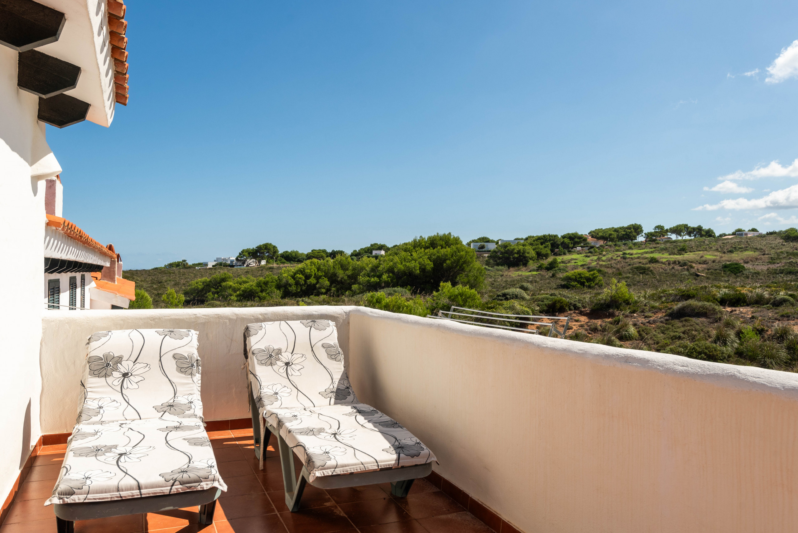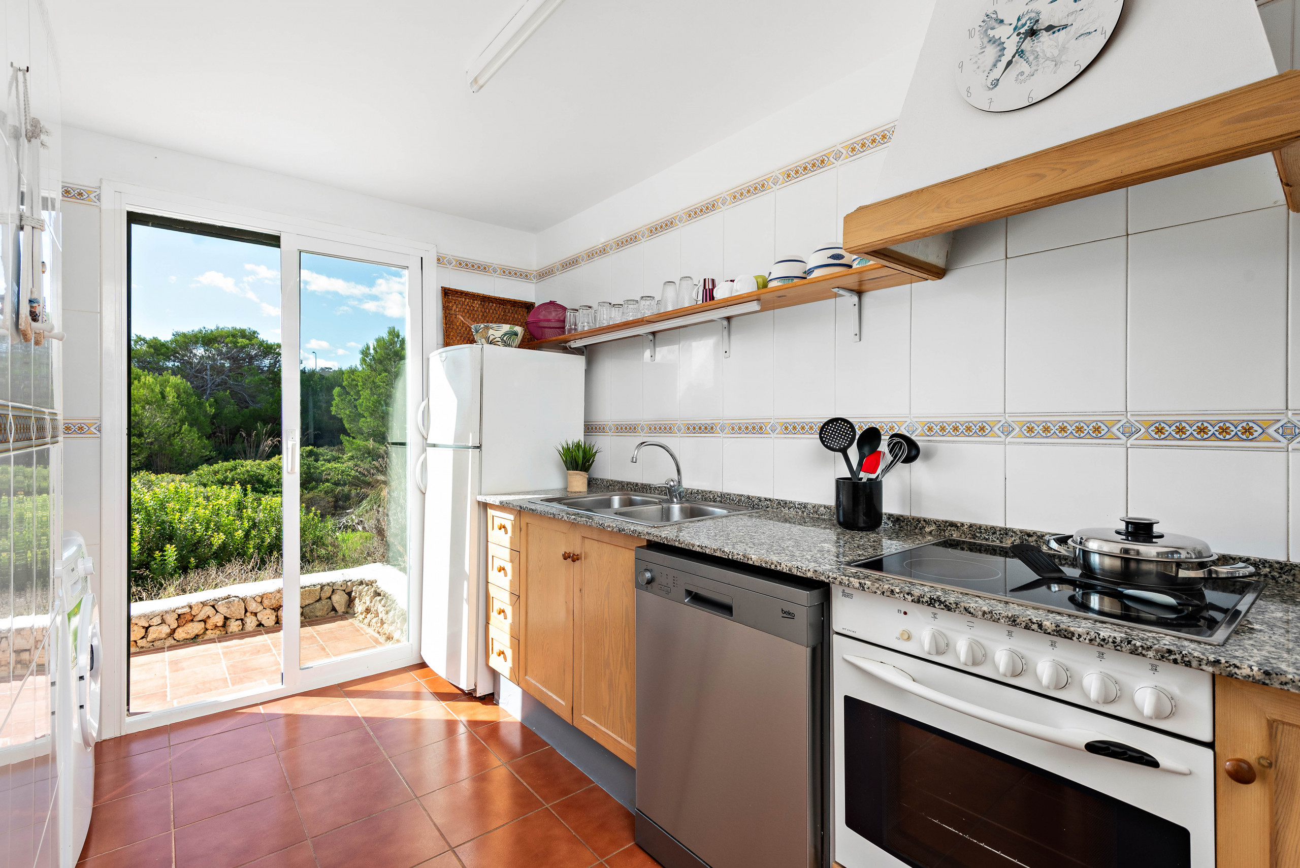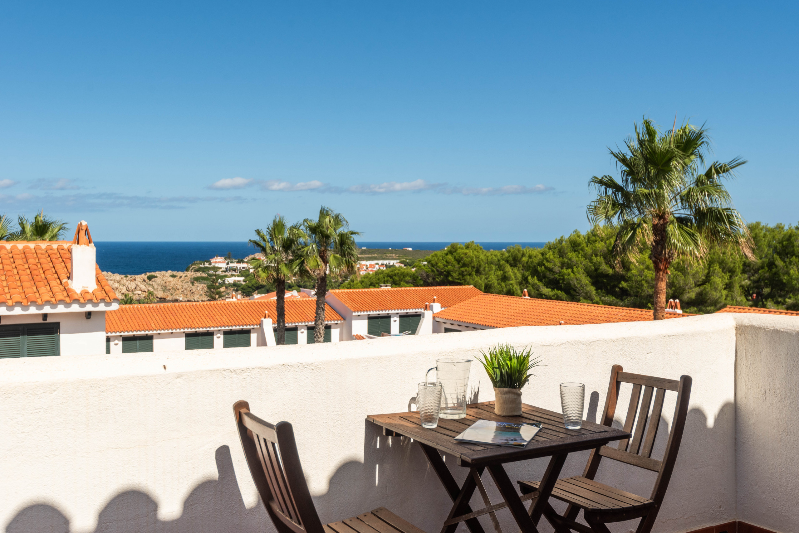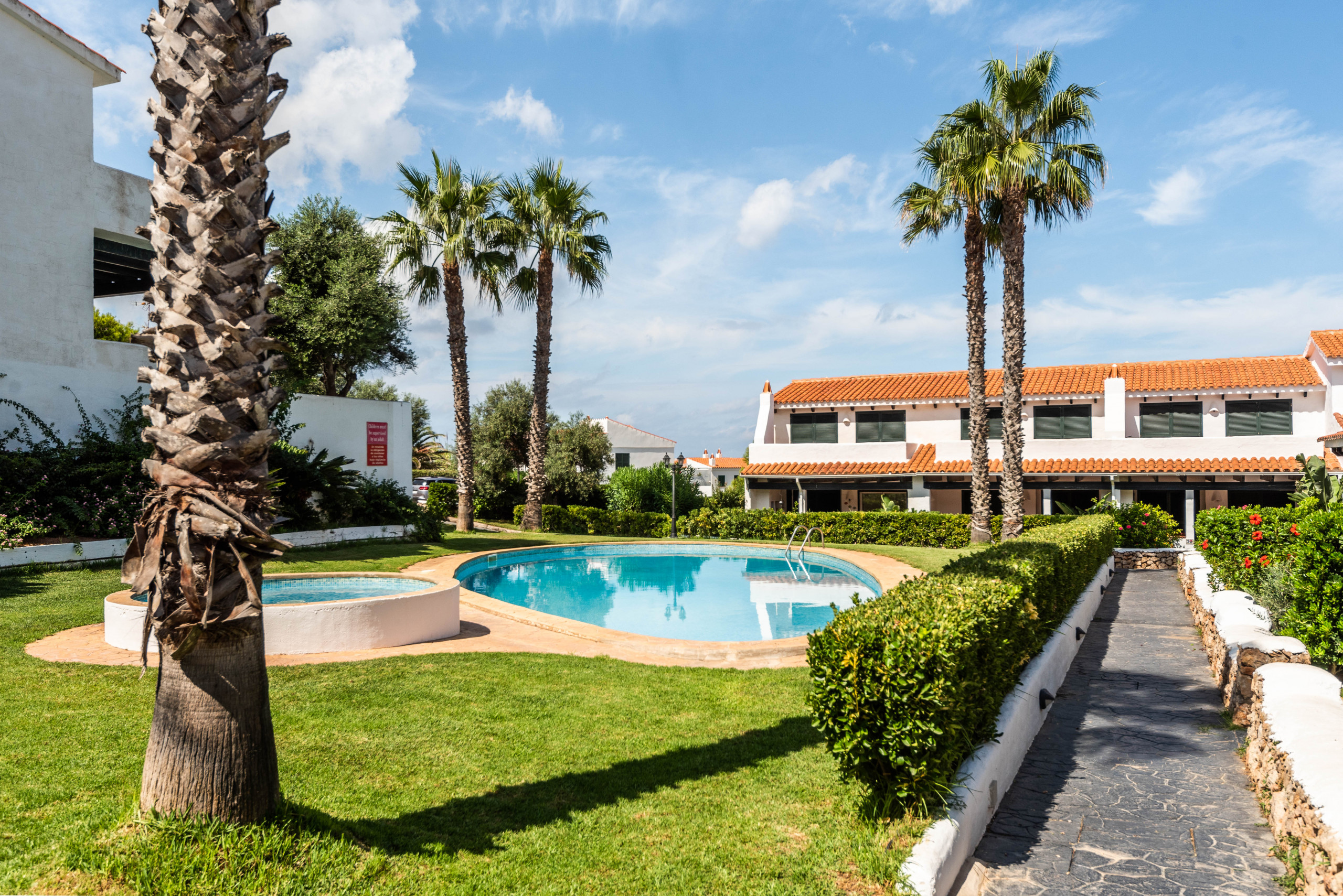 Acogedor apartamento con preciosa zona de jardín y piscina comunitaria en un complejo de 25 apartamentos situado en la costa norte de la isla en la urbanización de Arenal d' en Castell, a 300 m de la playa.