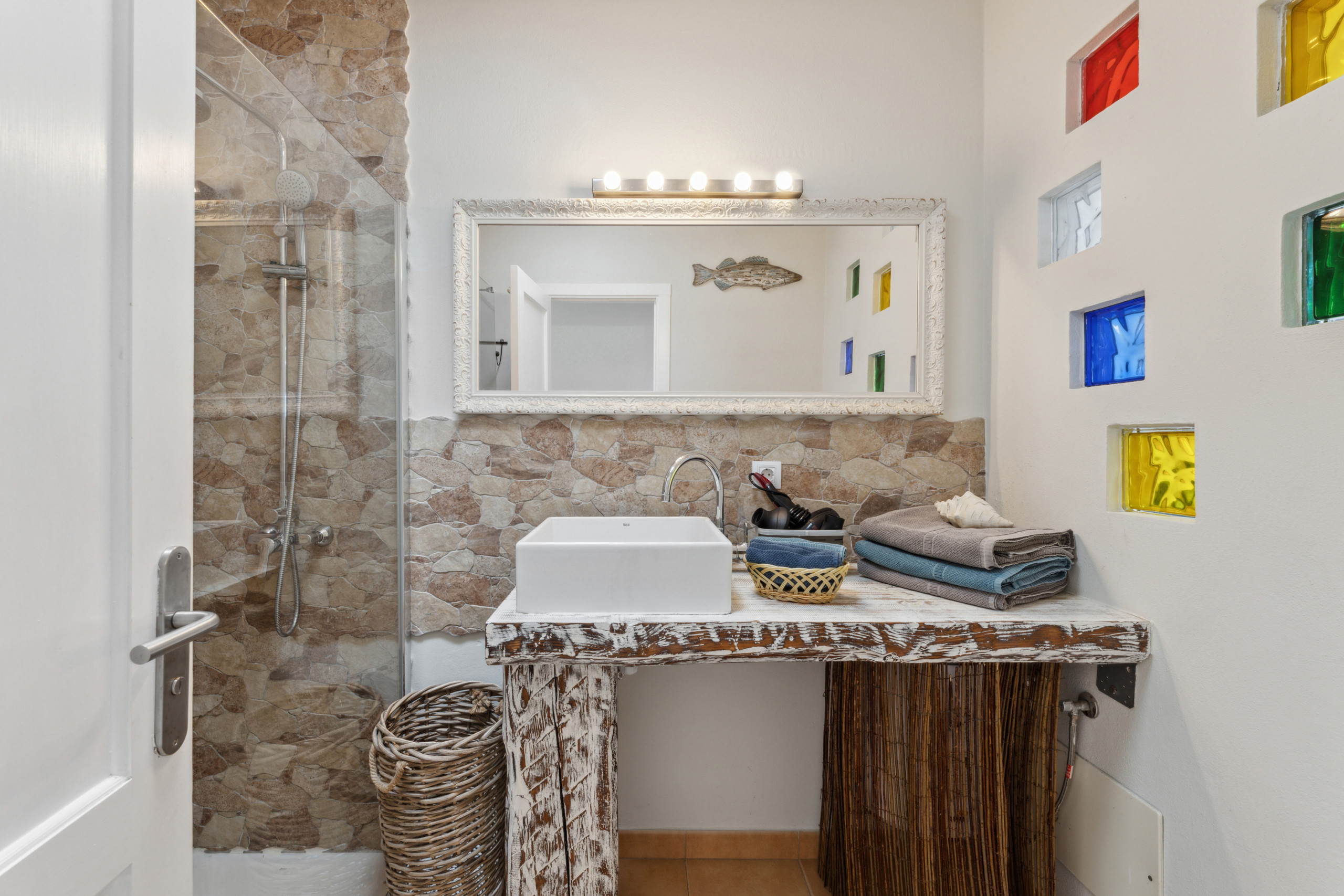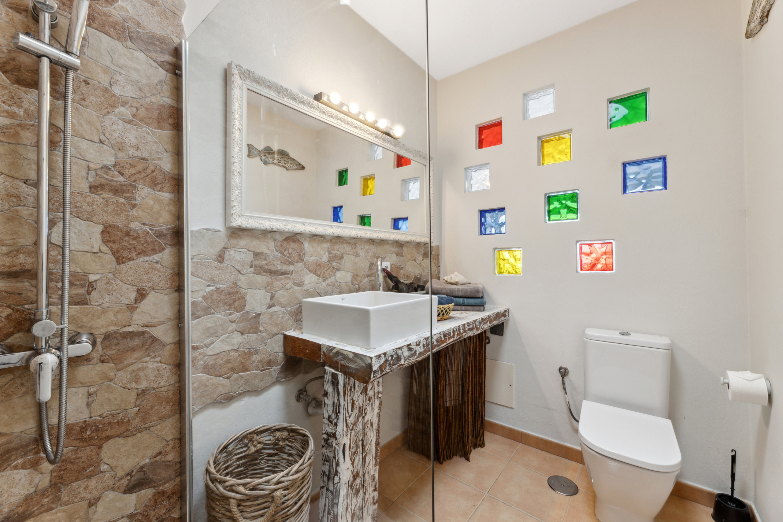 La cocina está completamente equipada con electrodomésticos modernos como nevera, congelador, lavadora, horno, microondas, cafetera, hervidor y exprimidor. Además, encontrarás todos los utensilios de cocina necesarios para preparar deliciosas comidas.