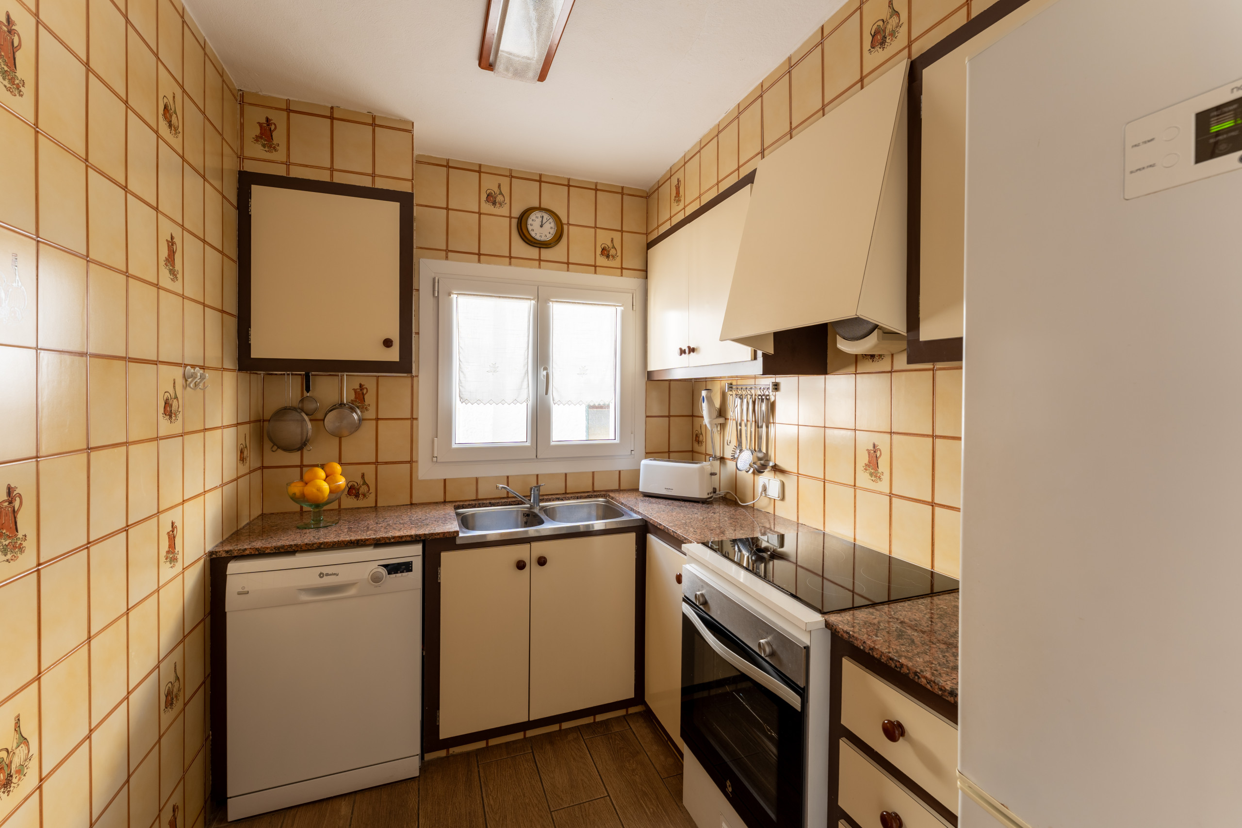 El interior de la vivienda está diseñado pensando en el confort, con aire acondicionado en la sala de estar y conexión WiFi para mantenerse comunicados. La cocina independiente está completamente equipada con electrodomésticos como frigorífico, lavadora, horno, microondas, cafetera, tostadora y hervidor, facilitando la preparación de comidas familiares. Además, cuenta con 2 baños con ducha y características adicionales como caja fuerte y plancha.