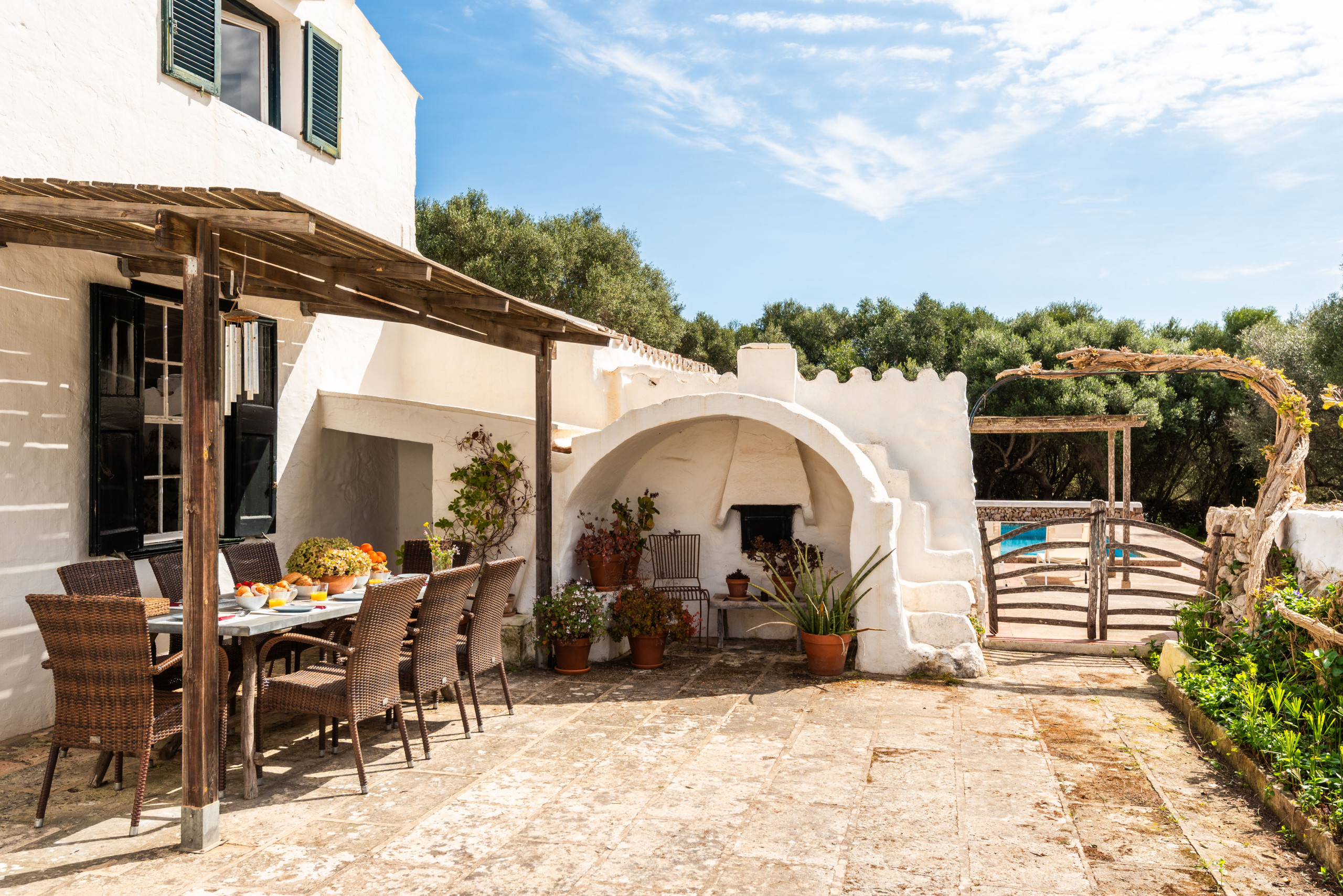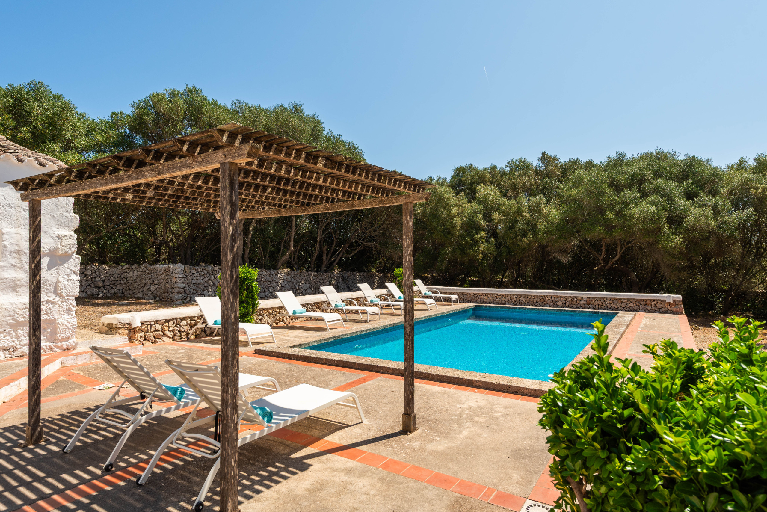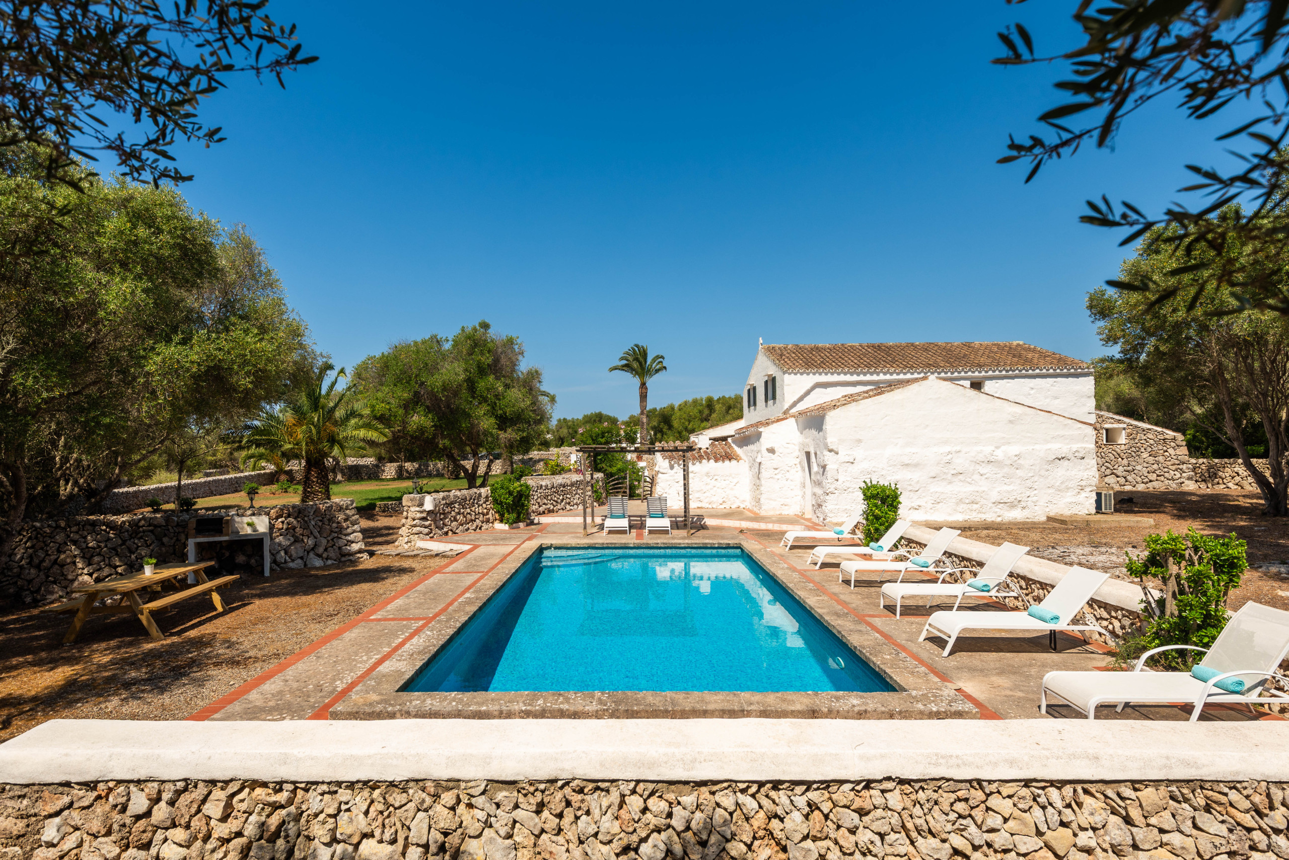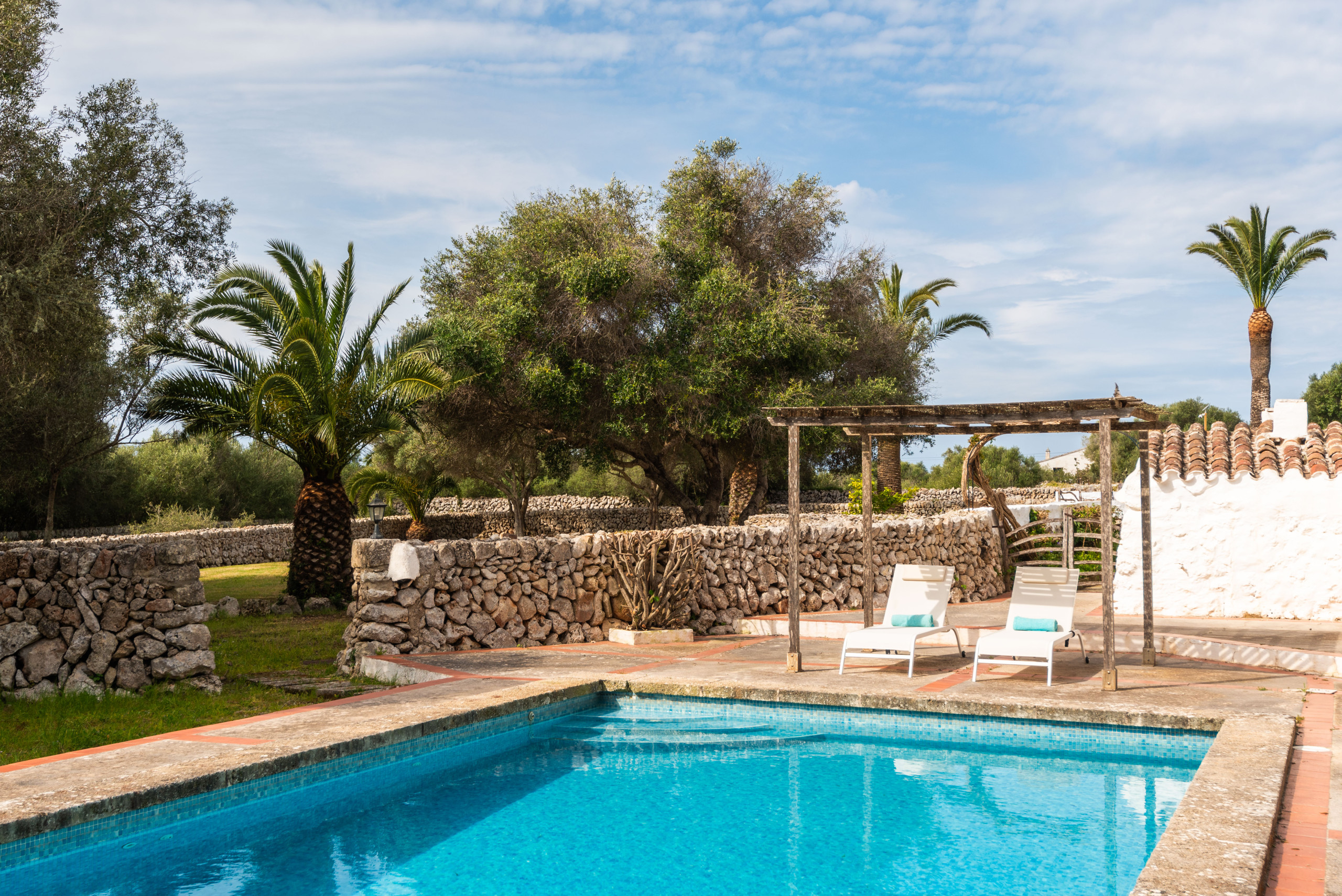 Finca Biniparrell Vell es un alojamiento en el campo en el camino de Biniparrell en el termino de Sant Lluis, con gran espacio de vegetación, Consta de piscina privada, jardín parking privado Piscina al aire libre terraza, pérgola con sombra 10 hamacas con 2 sombrillas y barbacoa de obra.