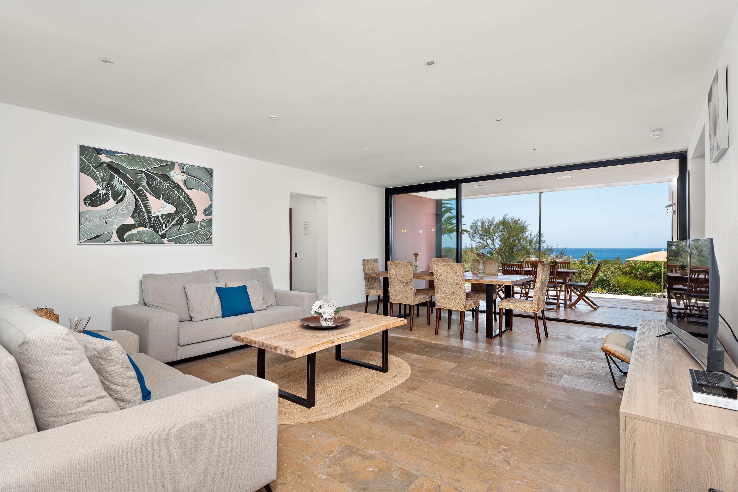 La villa es de diseño moderno con amplias habitaciones y muebles elegantes. El salón-comedor y la cocina independiente se abren a la terraza cubierta, que está ligeramente elevada para ofrecerle lo mejor de esas estupendas vistas al mar. Tiene una increíble piscina infinita que recorre todo el ancho de la terraza, perfecta para nadar por la mañana antes de relajarse en una tumbona. La villa dispone de Wifi gratuito para los clientes.