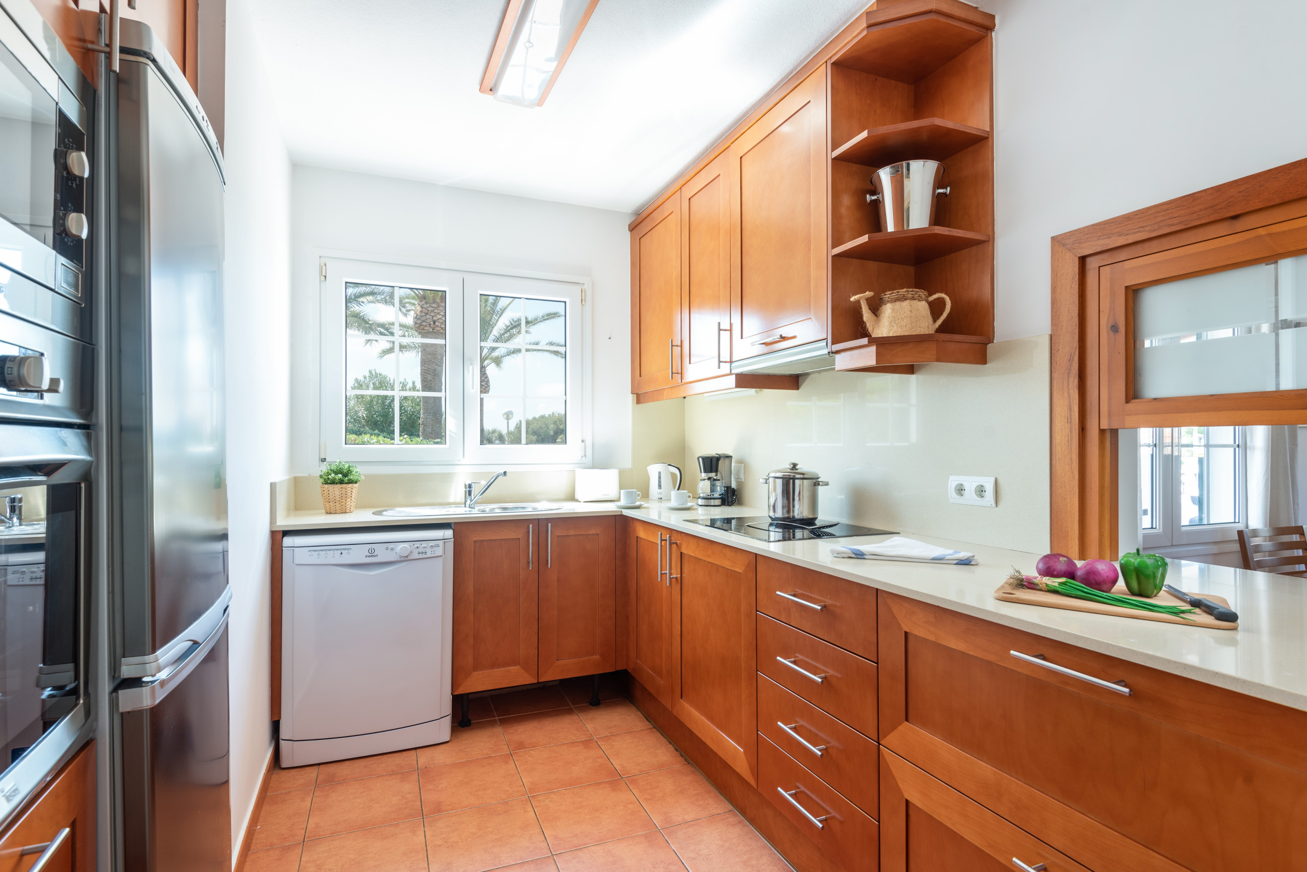 El interior está completamente equipado con aire acondicionado y conexión WiFi para garantizar el máximo confort durante toda la estancia. La cocina independiente dispone de electrodomésticos modernos, incluyendo nevera, lavadora, horno, microondas, lavavajillas, cafetera, tostadora y hervidor, ofreciendo todo lo necesario para preparar comidas con facilidad. Los dormitorios cuentan con un total de cinco camas, tres dobles y dos individuales, lo que permite una gran flexibilidad en la distribución. Además, la villa incluye plancha para mayor comodidad.