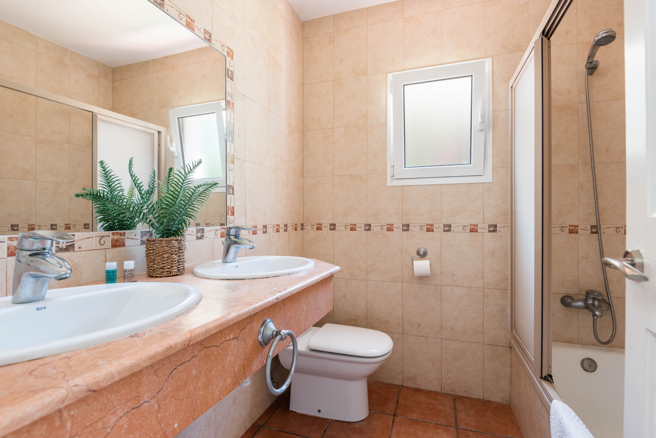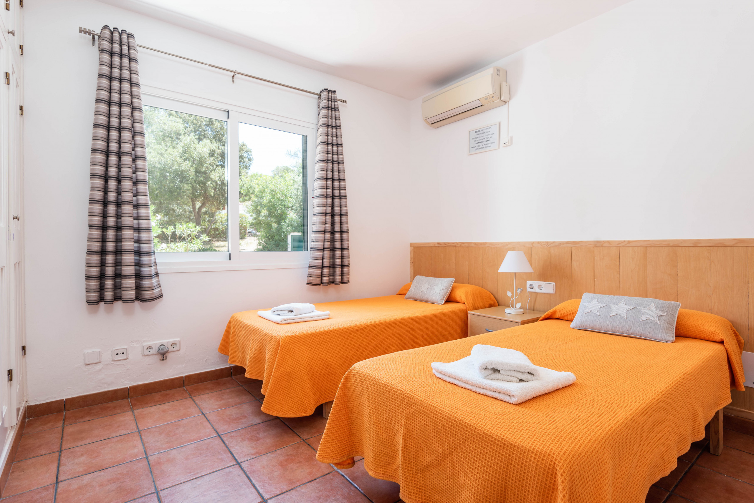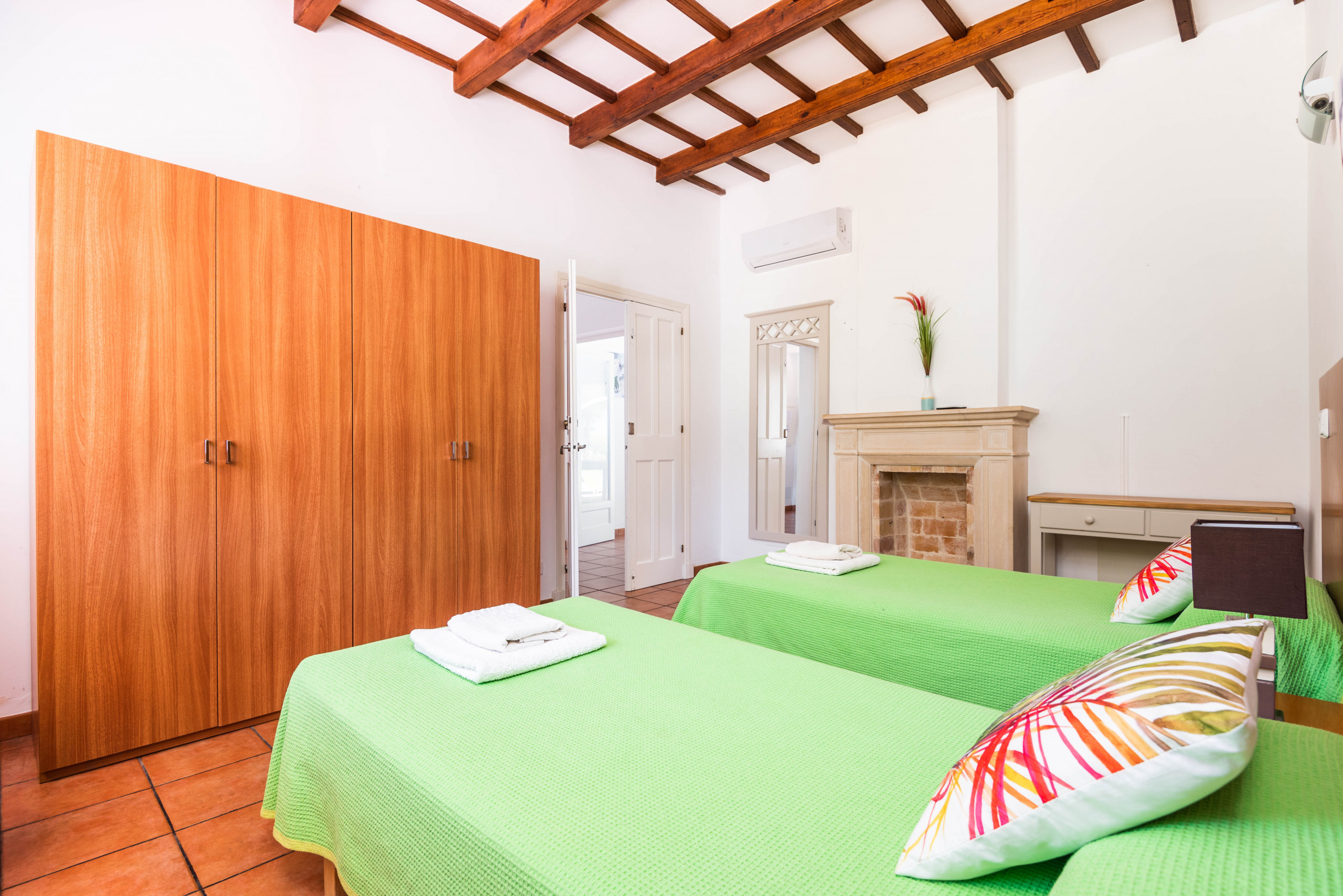 La villa consta de 5 dormitorios dobles, 4 de ellos con 2 camas dobles y 1 de ellos con cama de matrimonio. La villa Dispone de 2 baños con bañera y uno con ducha. Todas las dependencias de la casa disponen de aire frío y caliente con sensores.