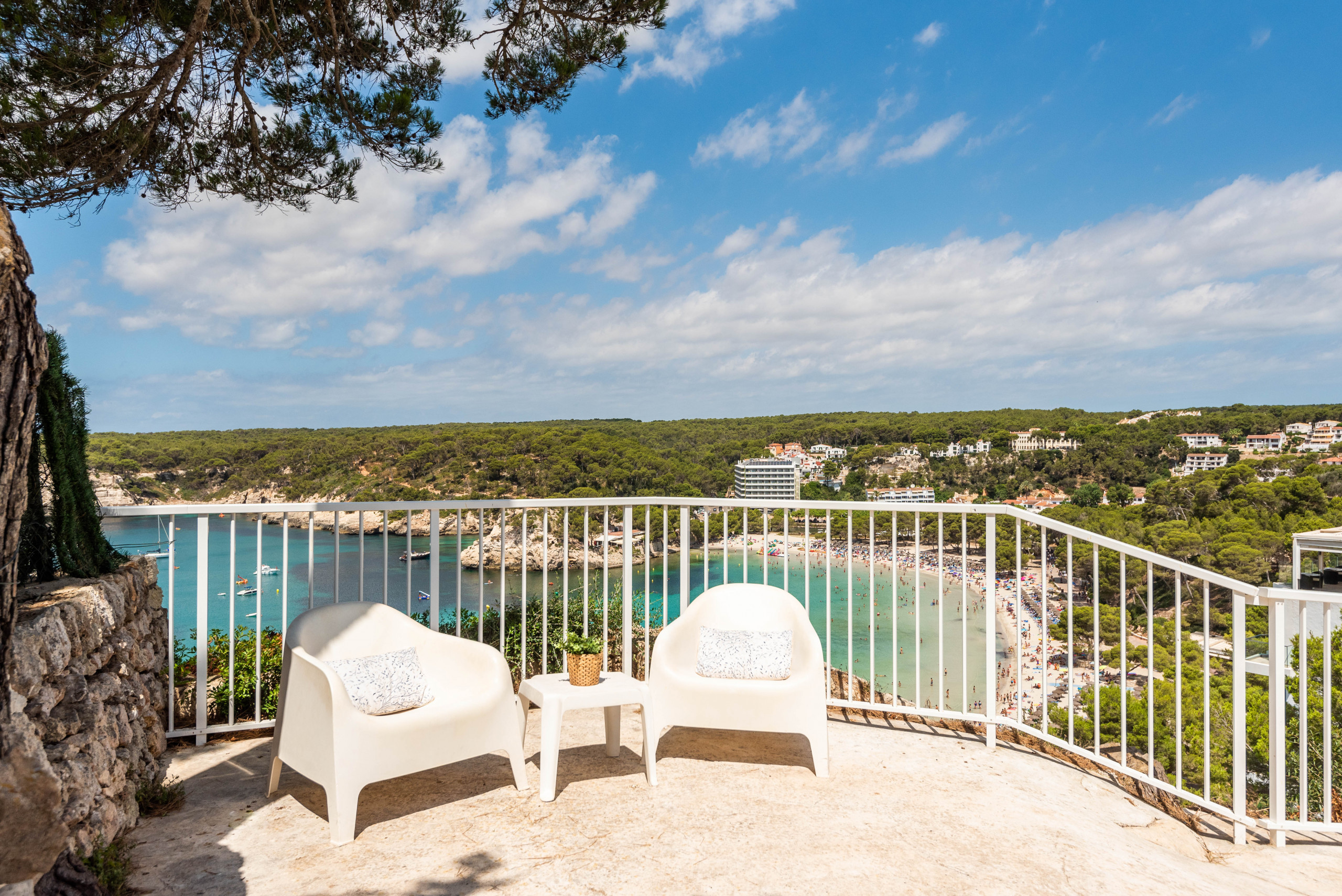 La casa tiene una magnífica terraza con vistas al mar a la playa de Cala Galdana. La terraza consta de Barbacoa de obra con mobiliario exterior y hamacas para 10 personas.
