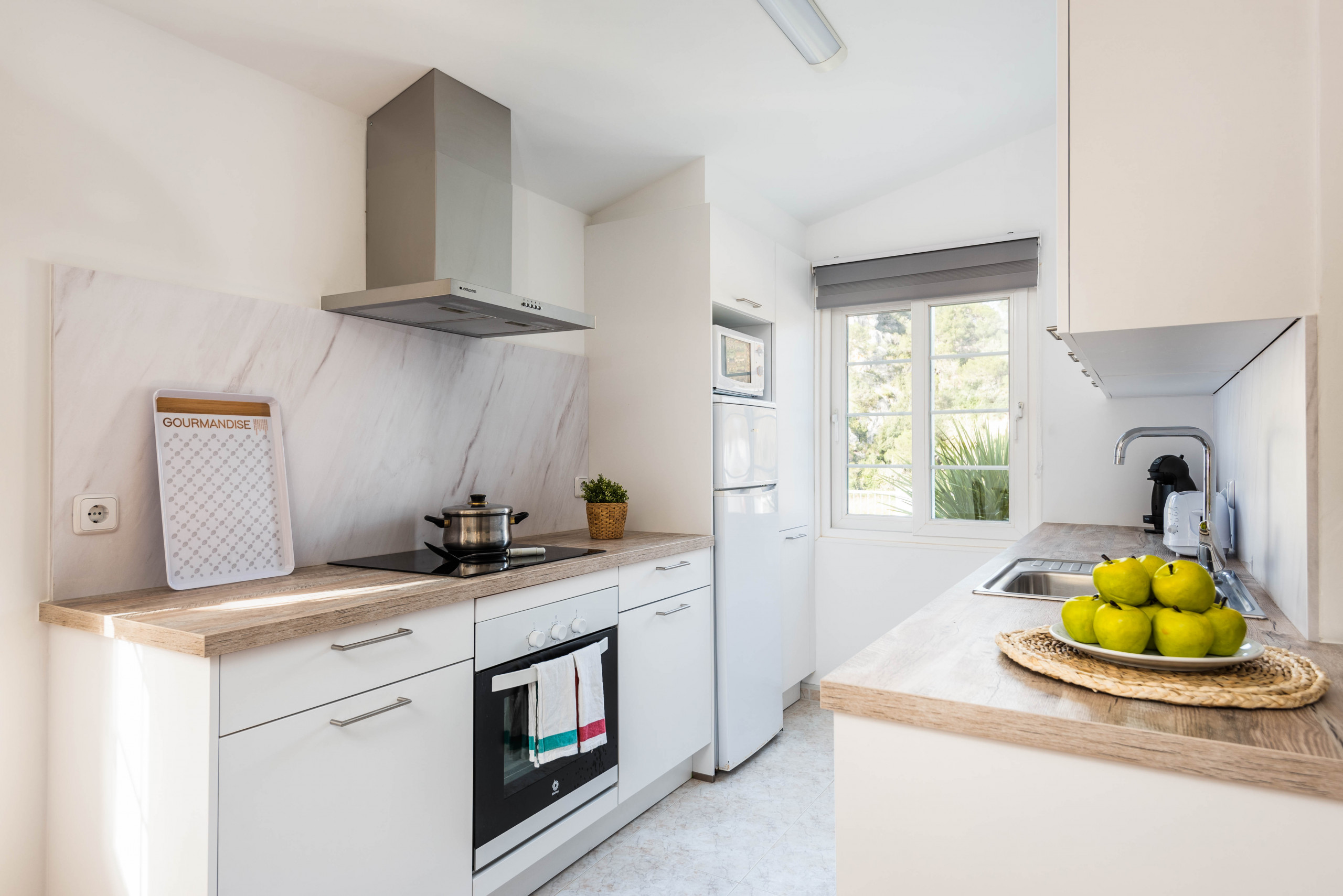 La cocina es independiente, dispone de vitrocerámica, está equipada con nevera, microondas, horno, congelador, lavadora, lavavajillas, vajilla/cubertería, utensilios/cocina, cafetera, tostadora y hervidor de agua; todo lo que necesita para sus vacaciones.