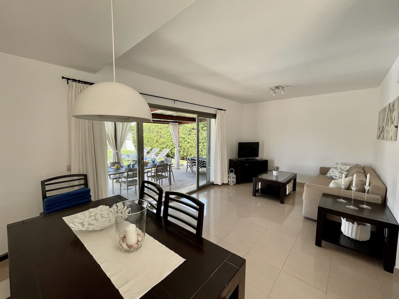 Salón comedor amplio con acceso directo a la terraza exterior y conectado a la vez con la cocina.