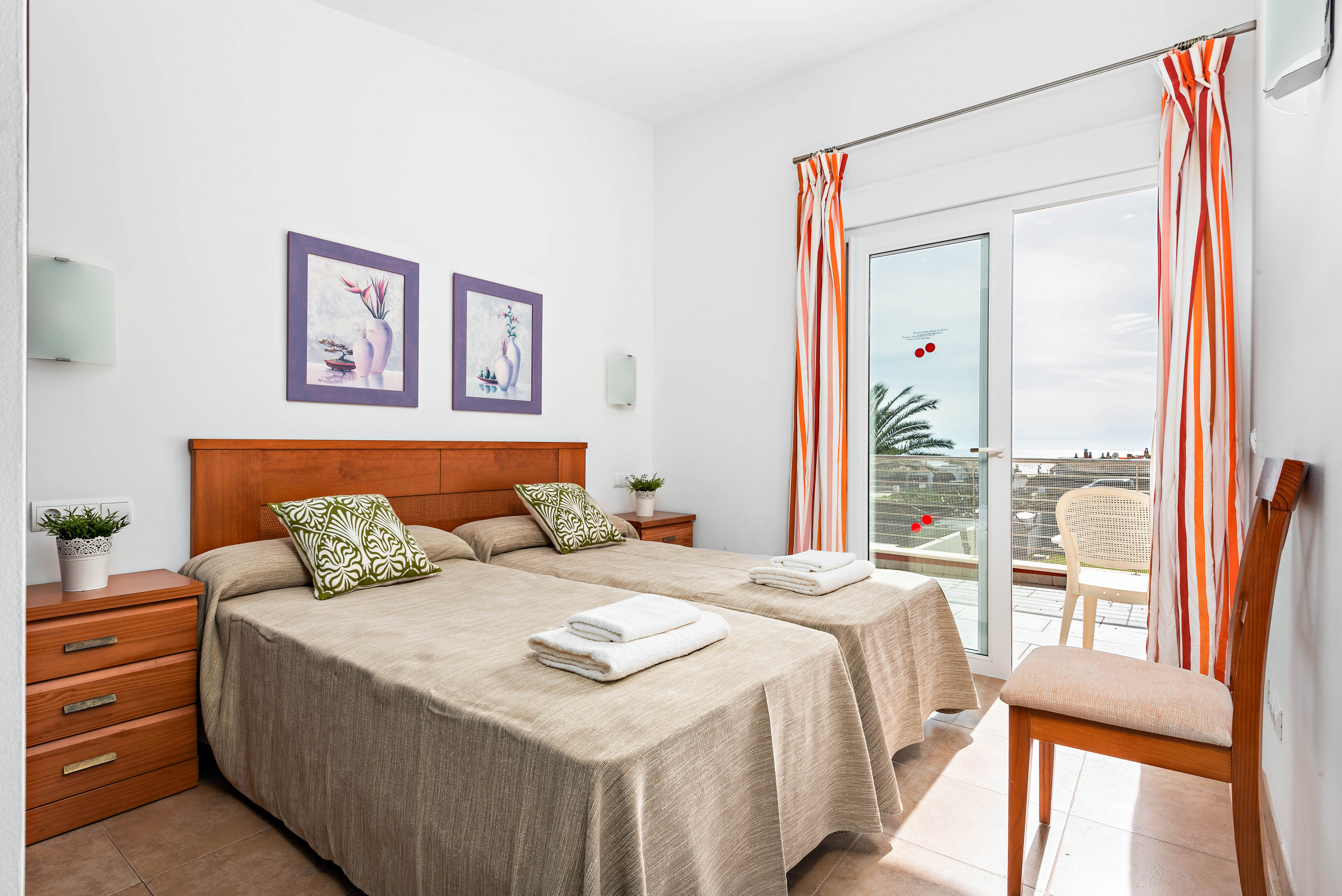 Primera planta: 2 habitaciones con 2 camas individuales, ambos con acceso a un balcón con vistas a la parte trasera del jardín.