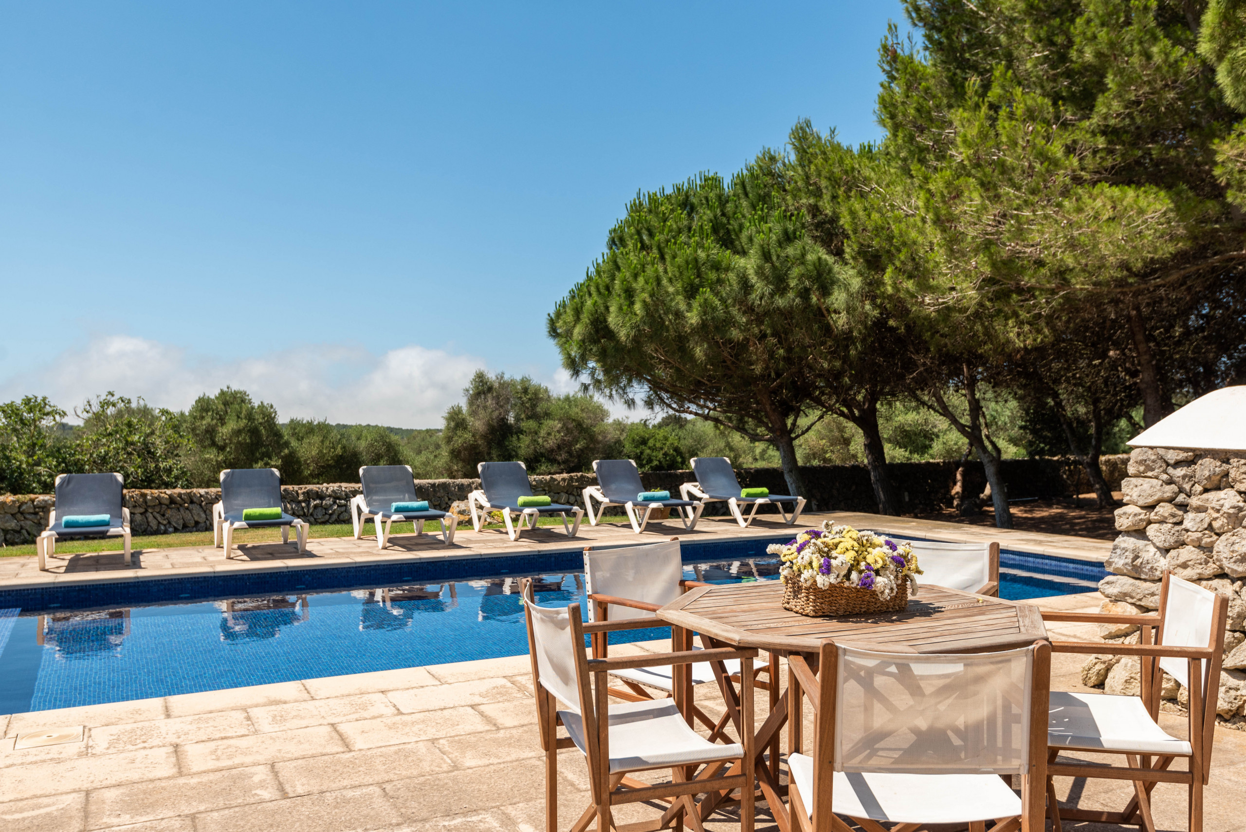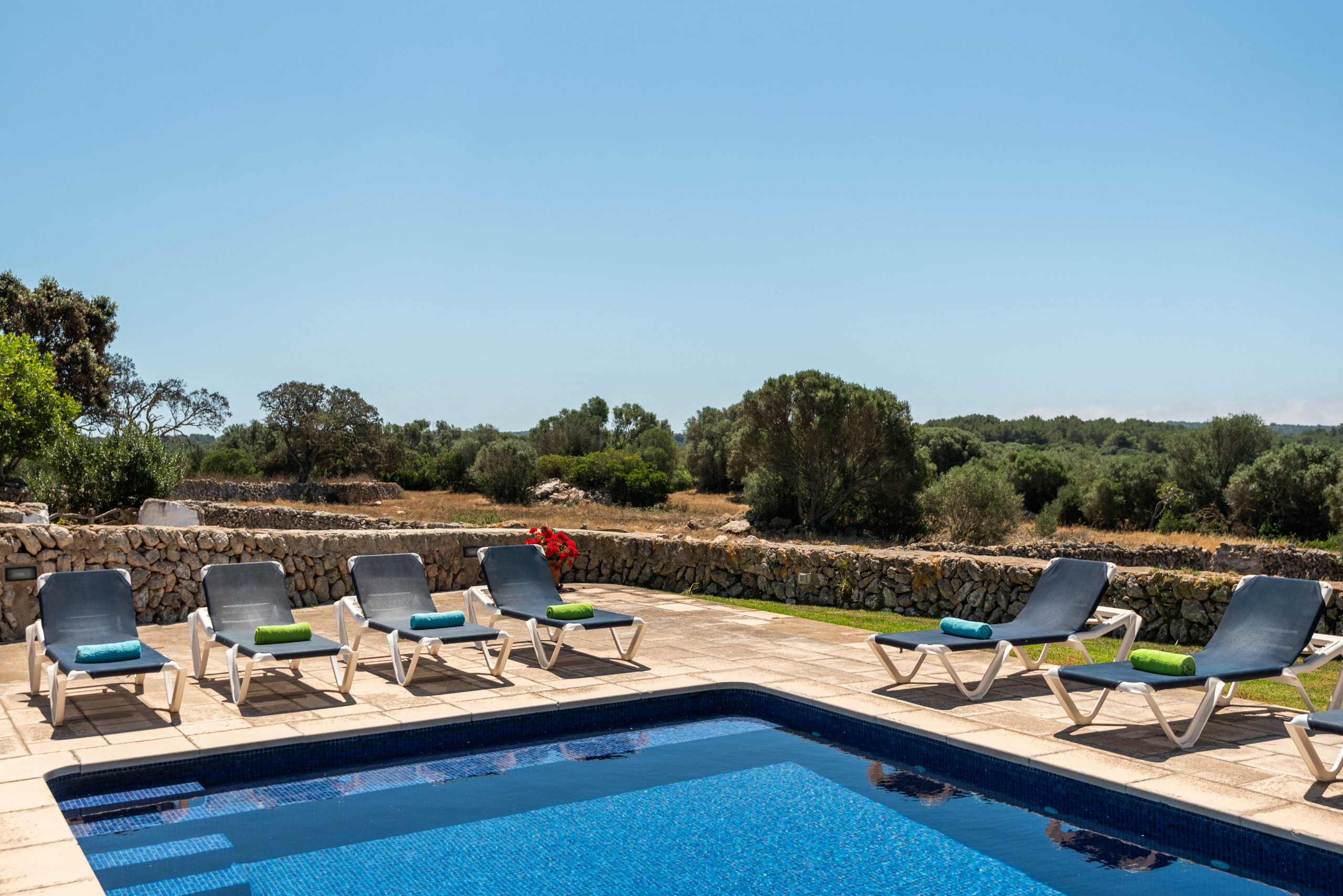 Fantástica finca menorquina de 6 dormitorios y 5 cuartos de baño. Descubre todo lo que Menorca puede ofrecerte. Además de las playas, Menorca tiene un paisaje encantador que combina las comodidades del siglo XXI y la tradición. Rogamos tengan en cuenta, como la finca está localizada en el campo, en el centro de la isla es aconsejable que accedan en coche particular, lo más cómodo sería que alquilasen un coche.