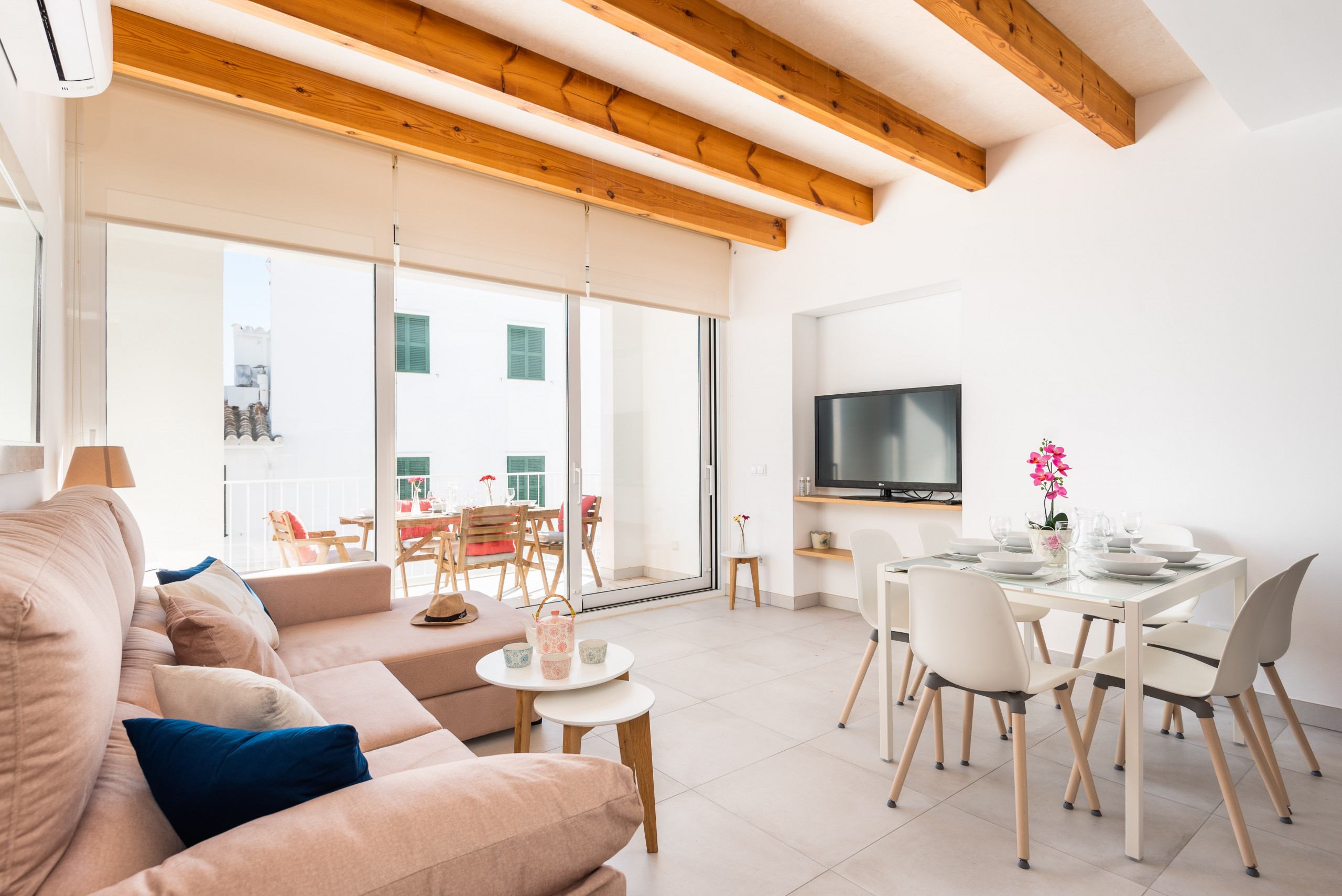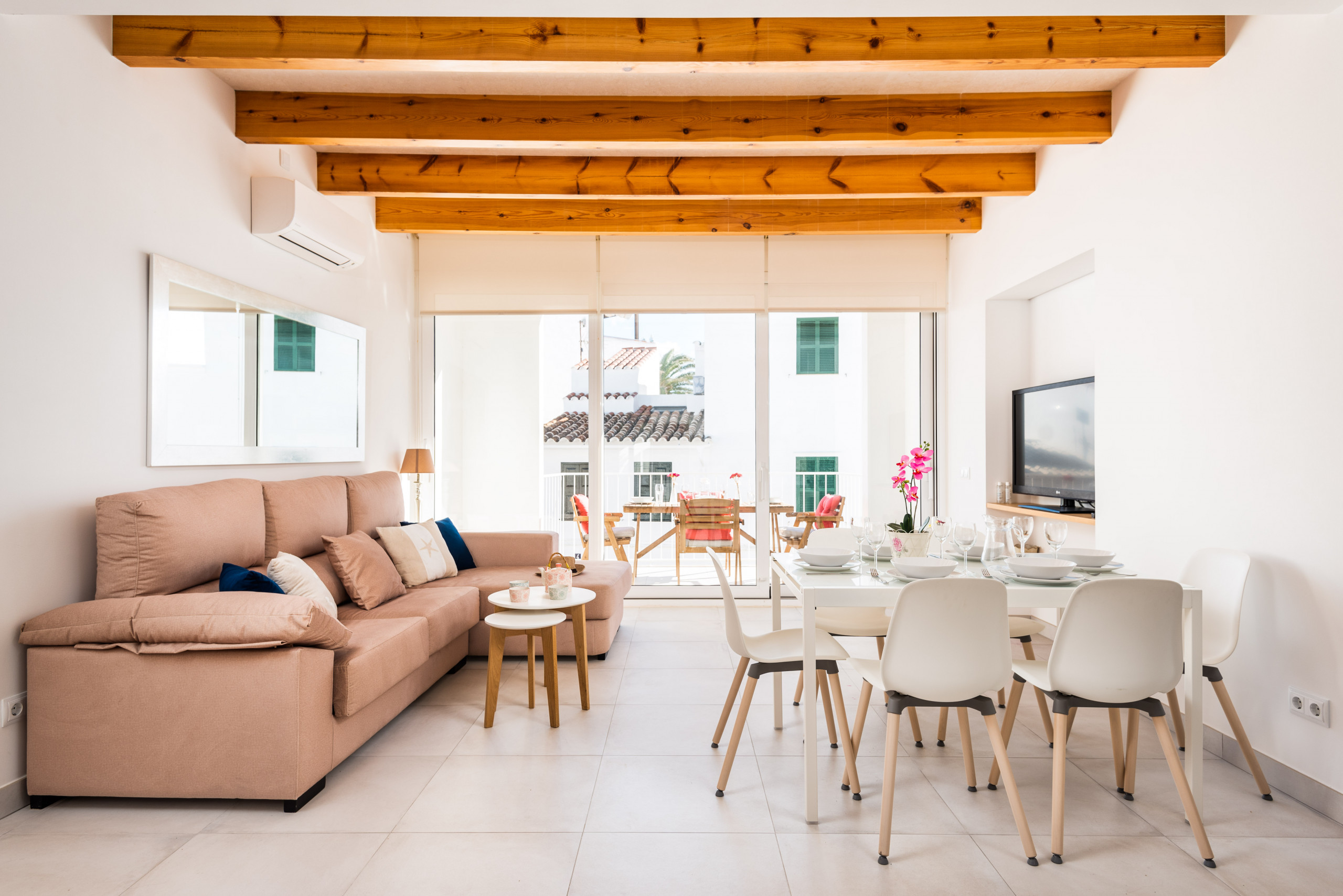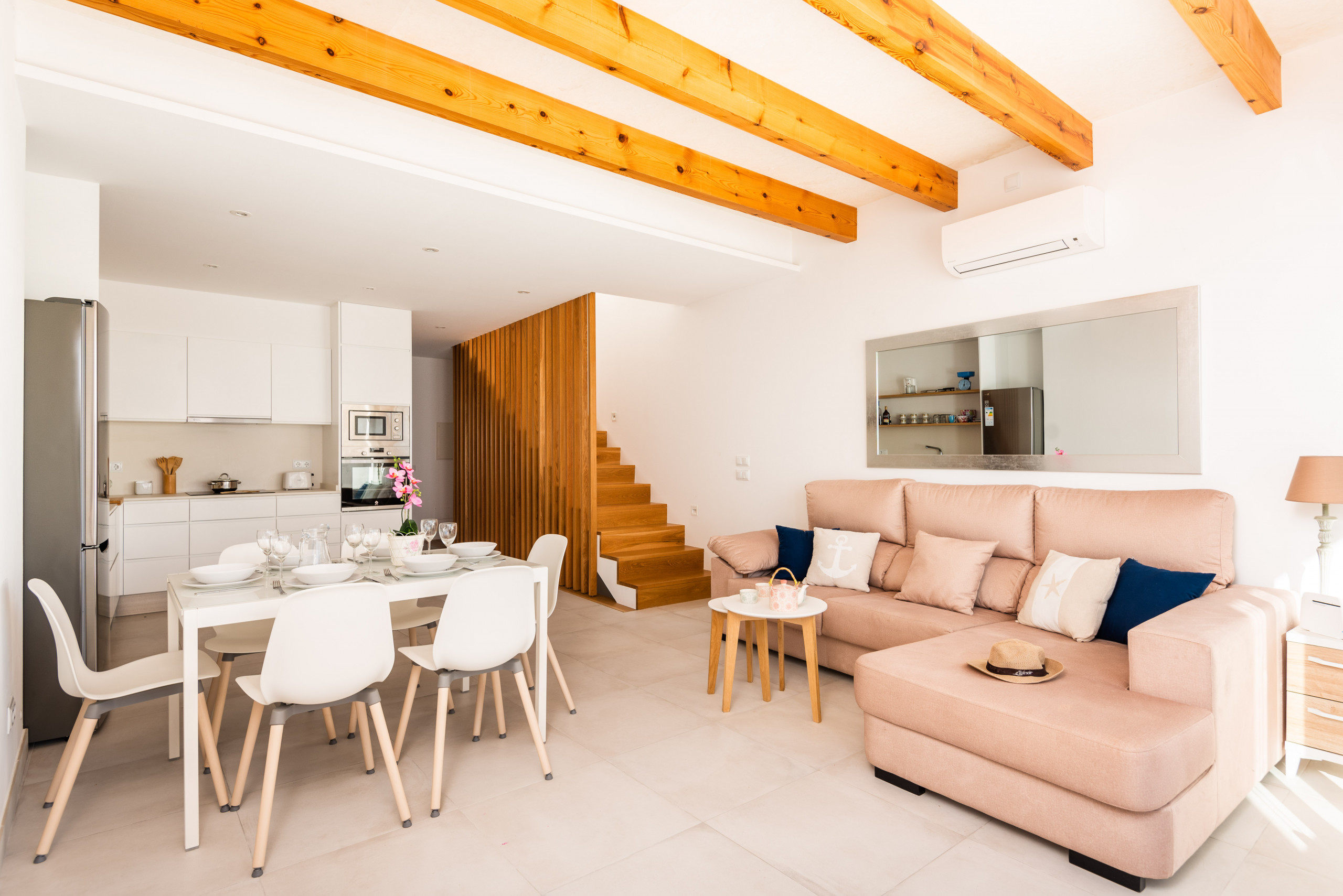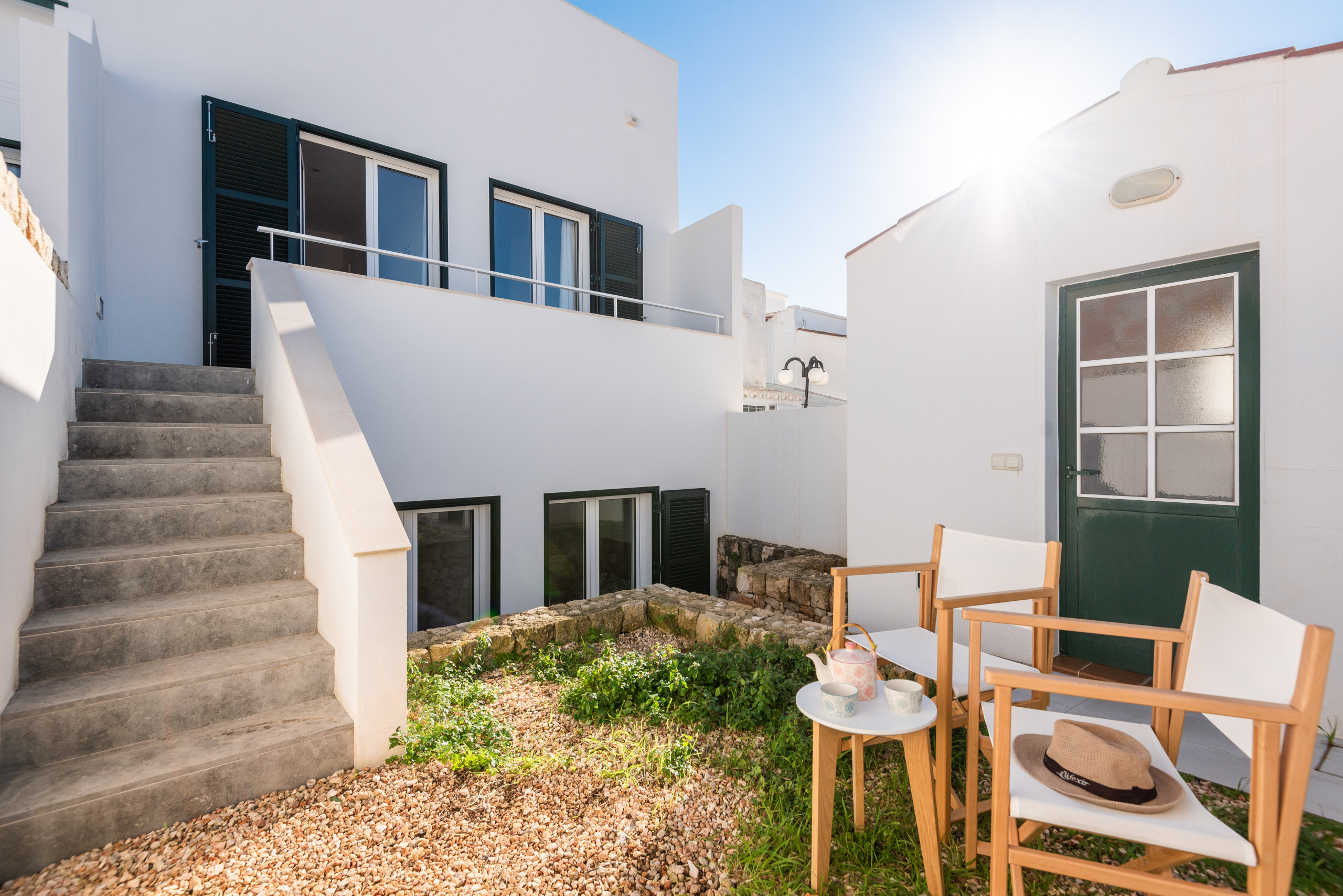 En la planta superior hay una espectacular terraza amueblada con mobiliario exterior con unas inmejorables vistas a la bahía de Fornells. La casa tiene aire acondicionado en el salón.