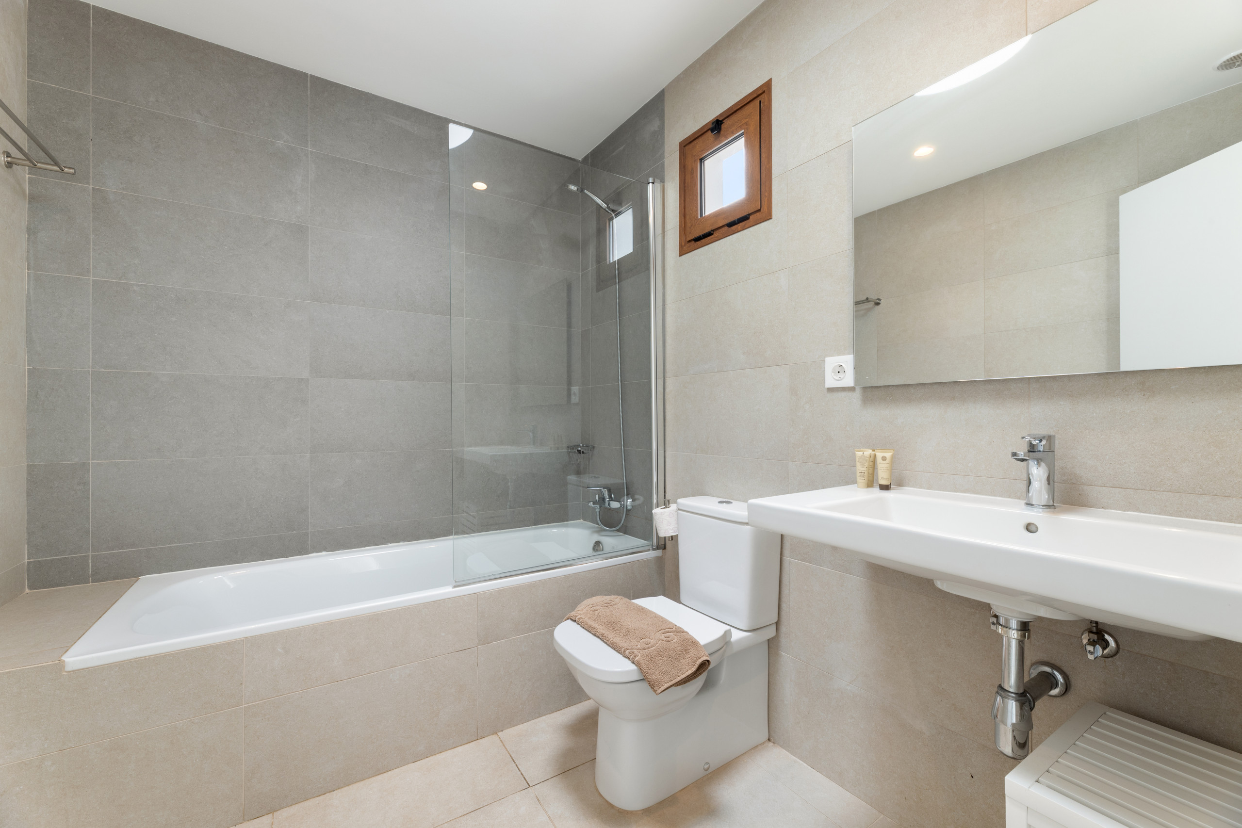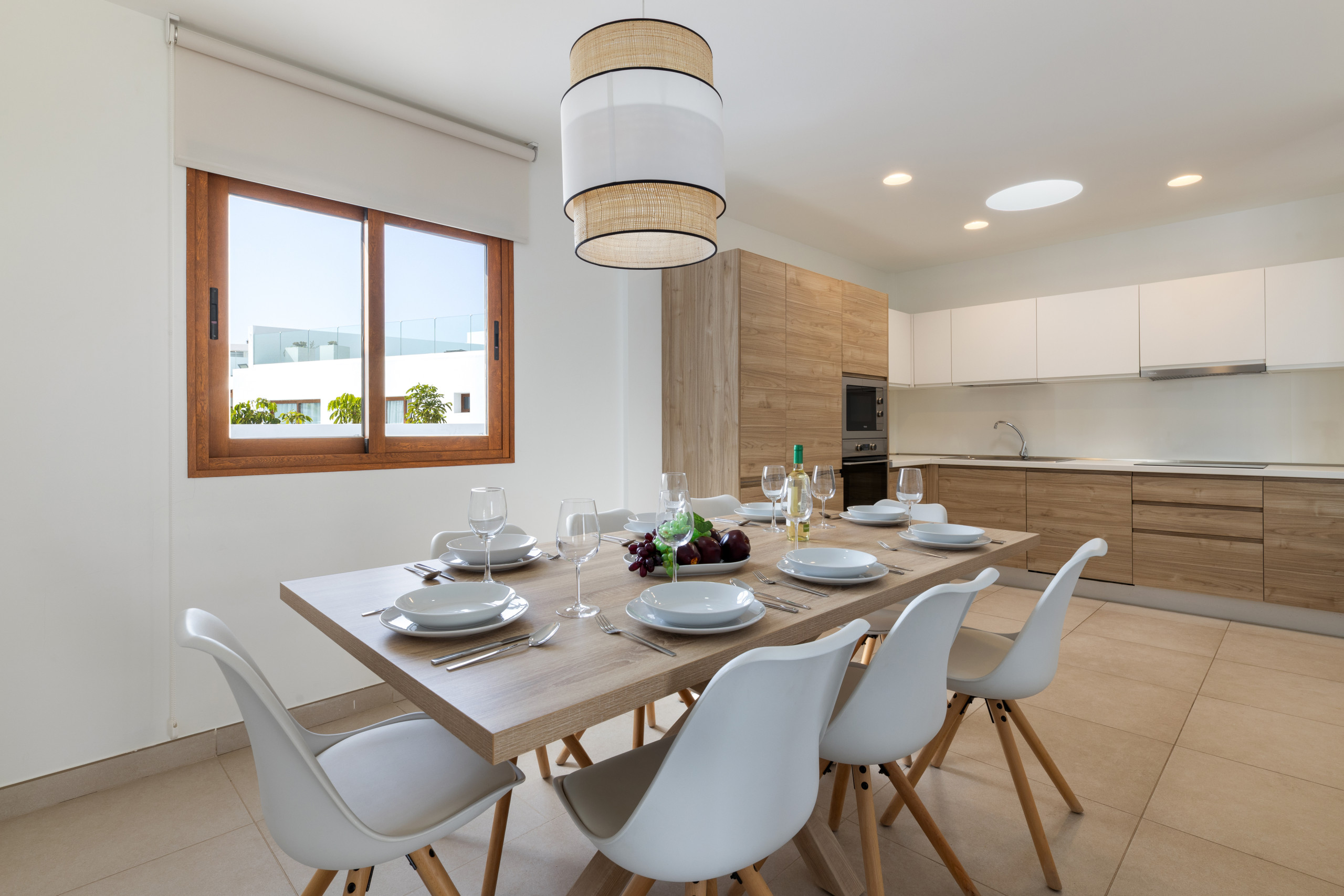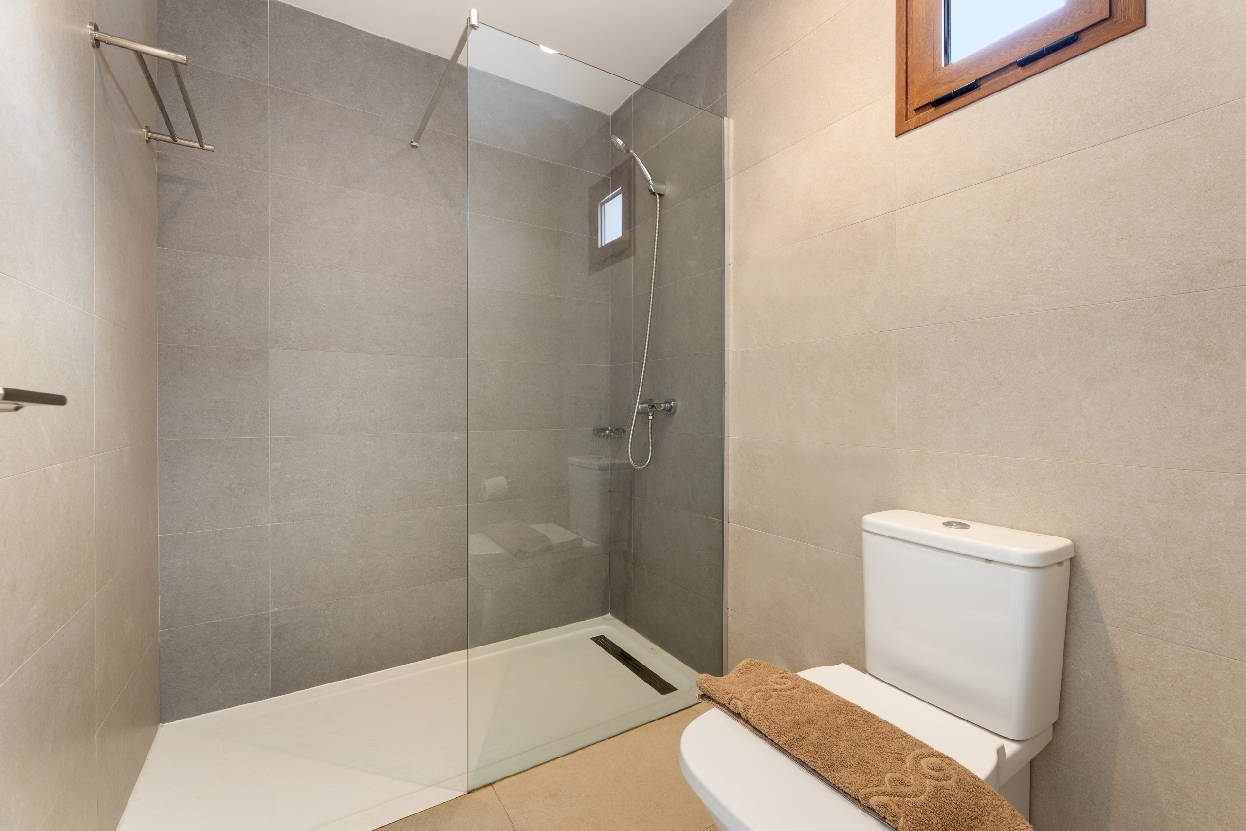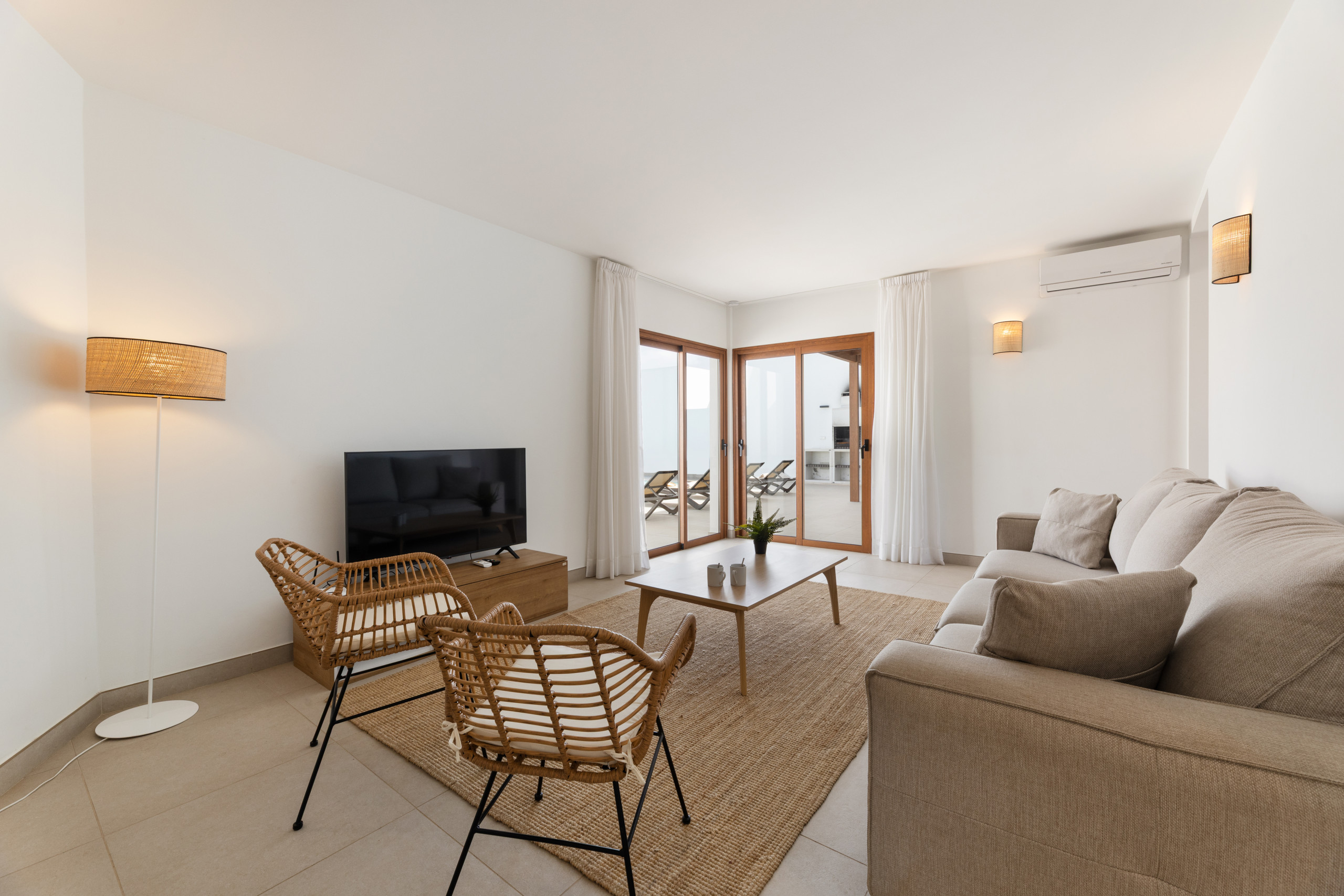 El interior de la villa destaca por su luminosidad y diseño contemporáneo. Cuenta con 3 baños completamente equipados, dos con ducha y uno con bañera, facilitando la convivencia de los huéspedes. La cocina está totalmente implementada con electrodomésticos de última generación, incluyendo lavadora, lavavajillas, horno, microondas, cafetera y una amplia variedad de utensilios que harán de la preparación de comidas una experiencia placentera.