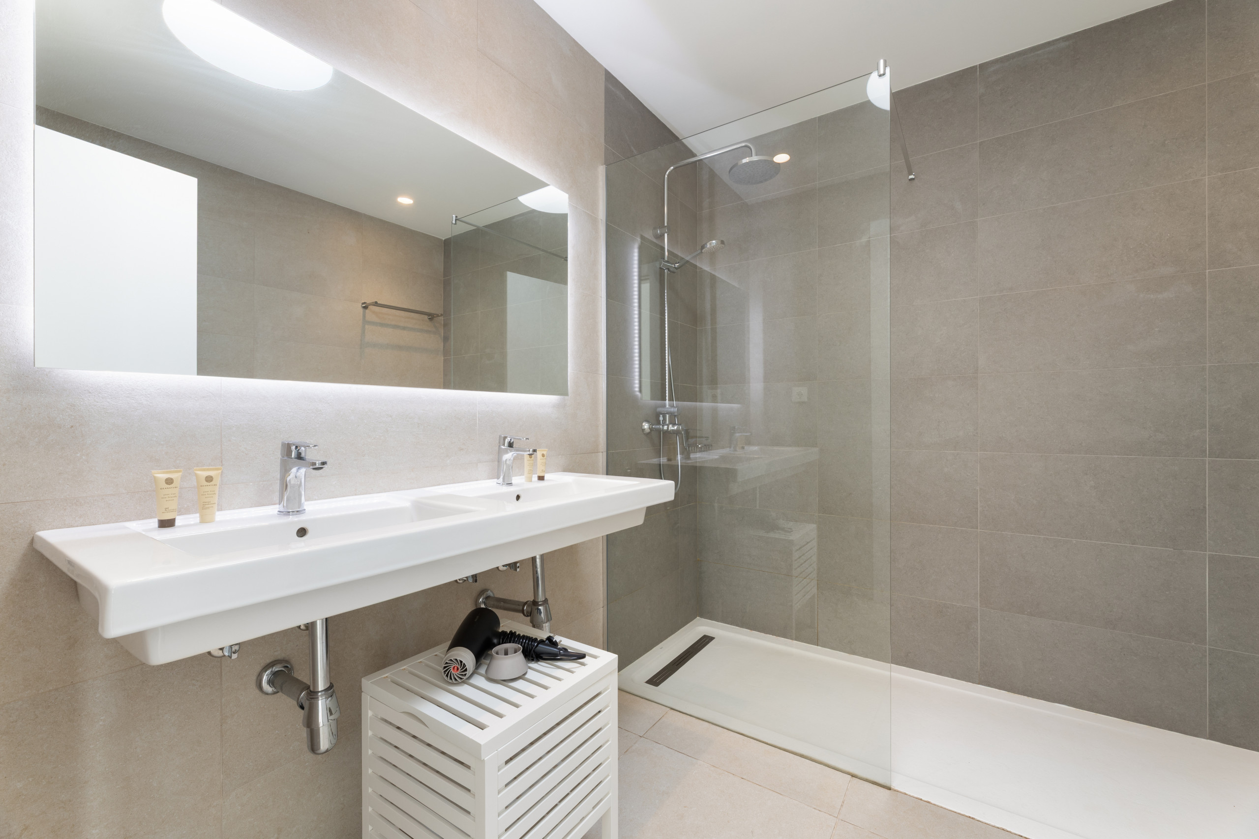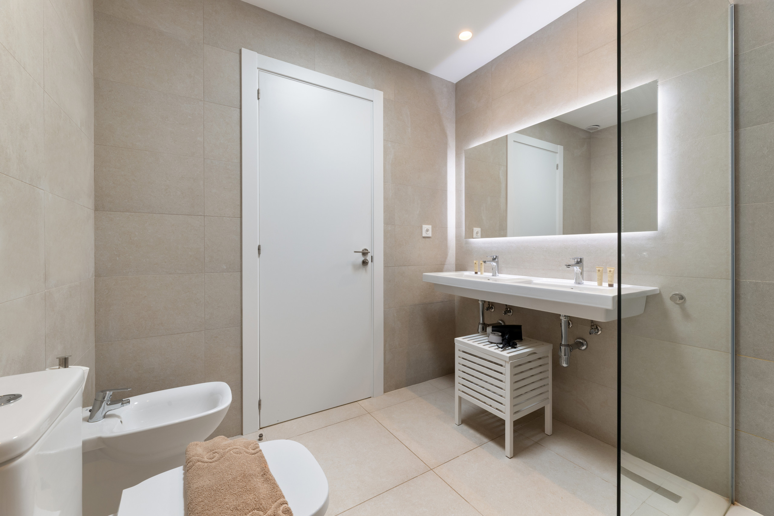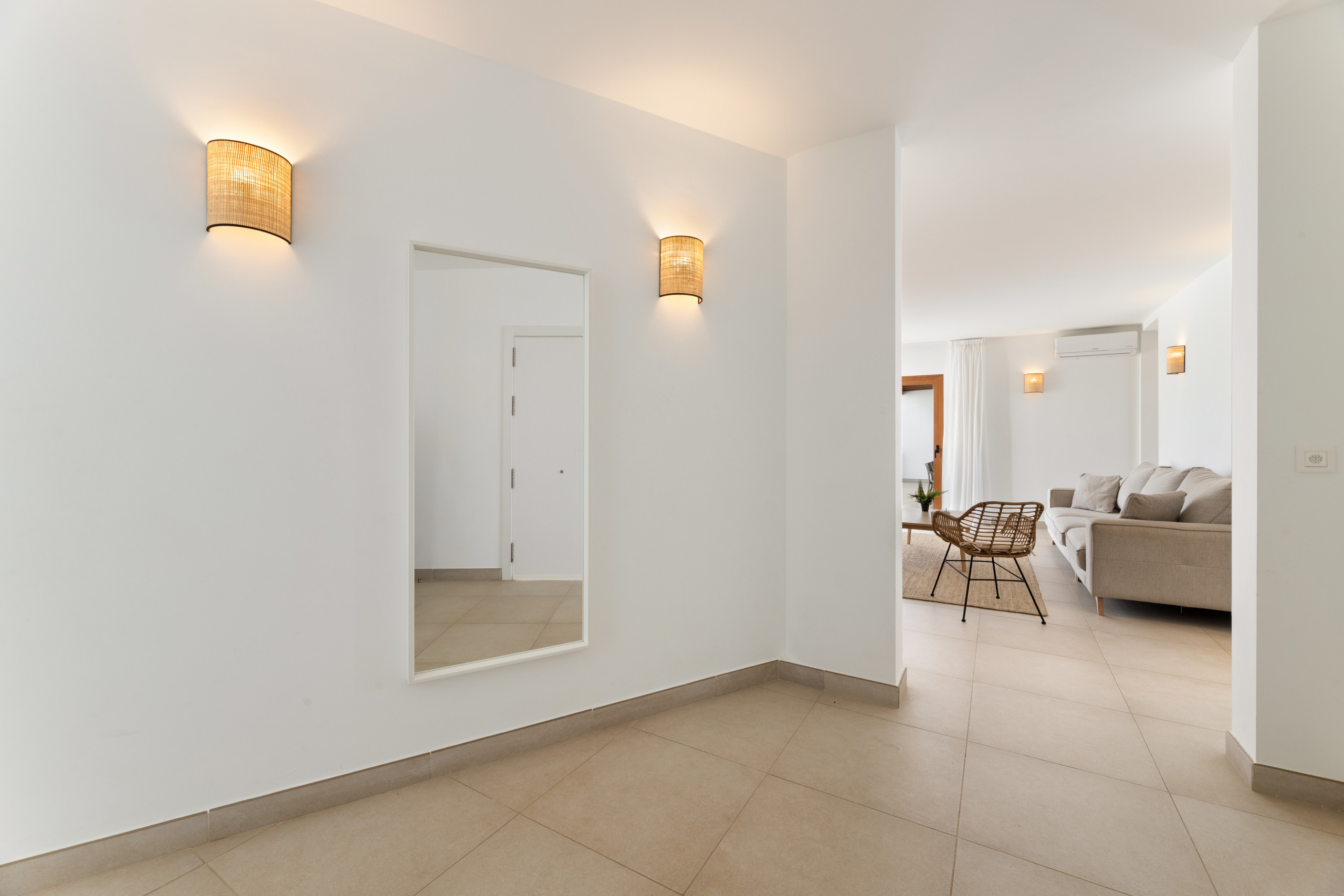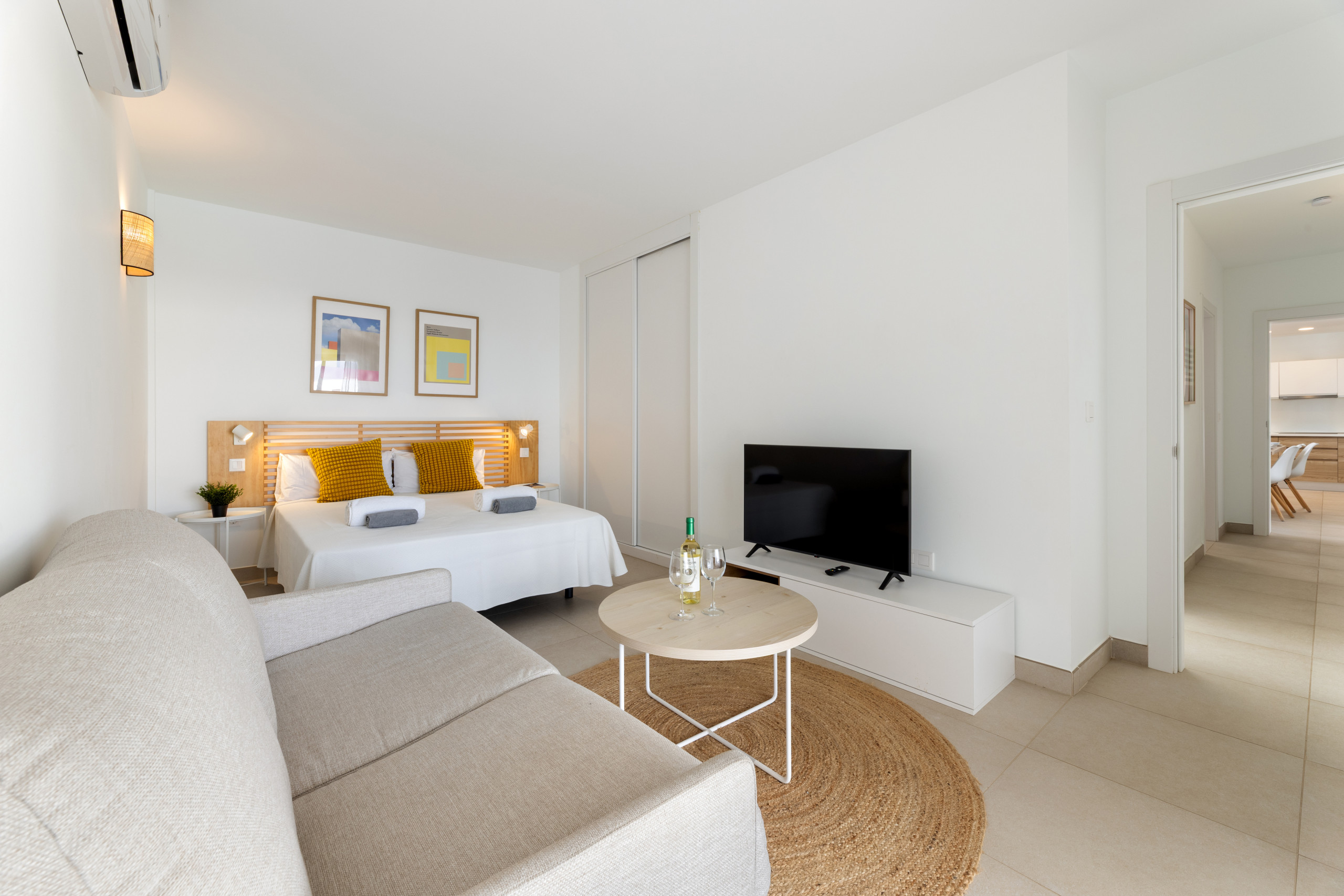 El interior de la villa destaca por su luminosidad y diseño contemporáneo. Cuenta con 3 baños completamente equipados, dos con ducha y uno con bañera, facilitando la convivencia de los huéspedes. La cocina está totalmente implementada con electrodomésticos de última generación, incluyendo lavadora, lavavajillas, horno, microondas, cafetera y una amplia variedad de utensilios que harán de la preparación de comidas una experiencia placentera.