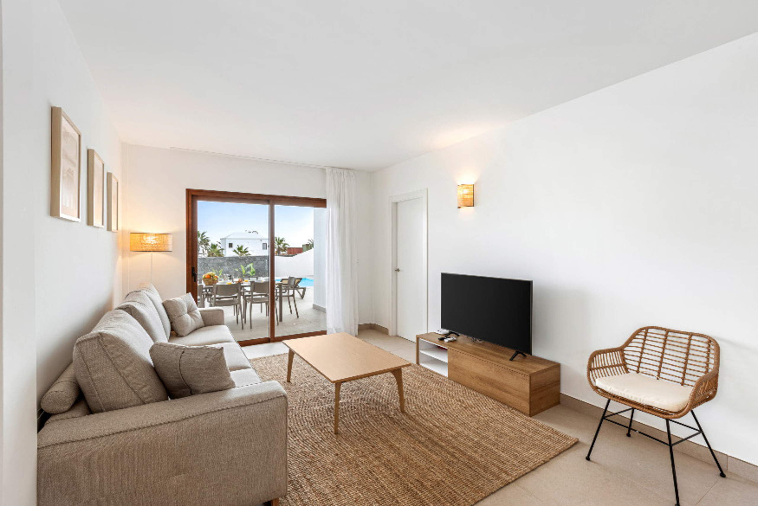 Los espacios exteriores son un verdadero punto de encuentro, con un jardín privado que invita a la relajación y momentos de convivencia. La villa dispone de muebles de jardín y una barbacoa perfecta para disfrutar de veladas únicas bajo el cielo de Lanzarote. Además, cuenta con una piscina privada climatizada en invierno, que ofrece vistas impresionantes al jardín y a los alrededores.