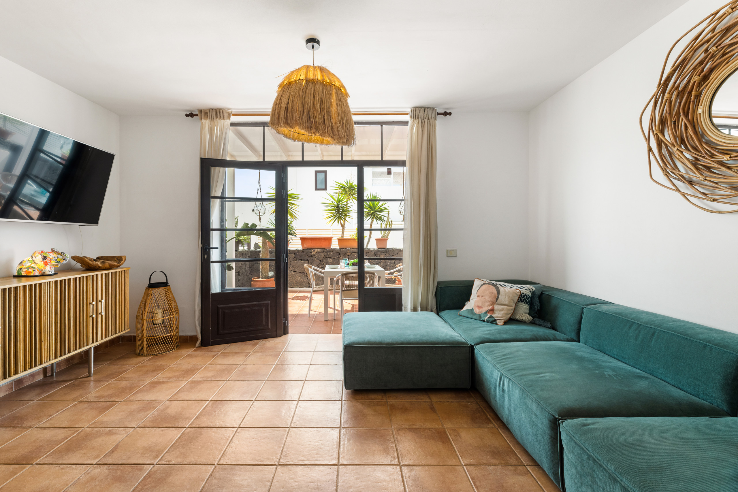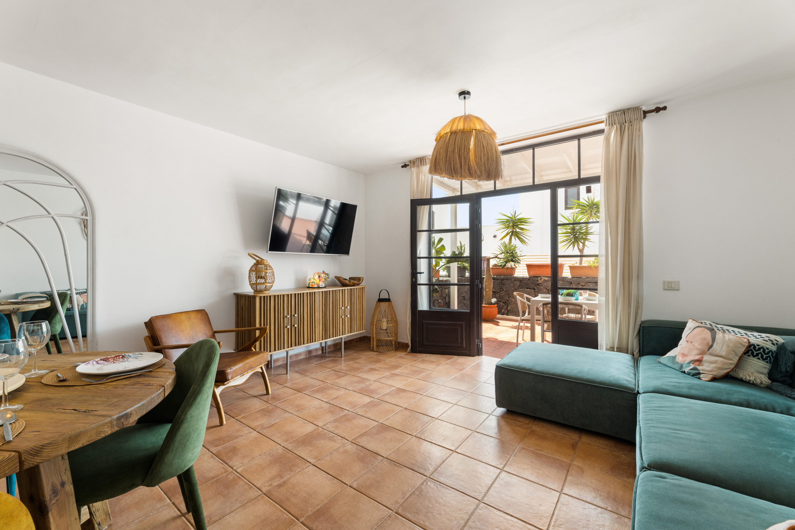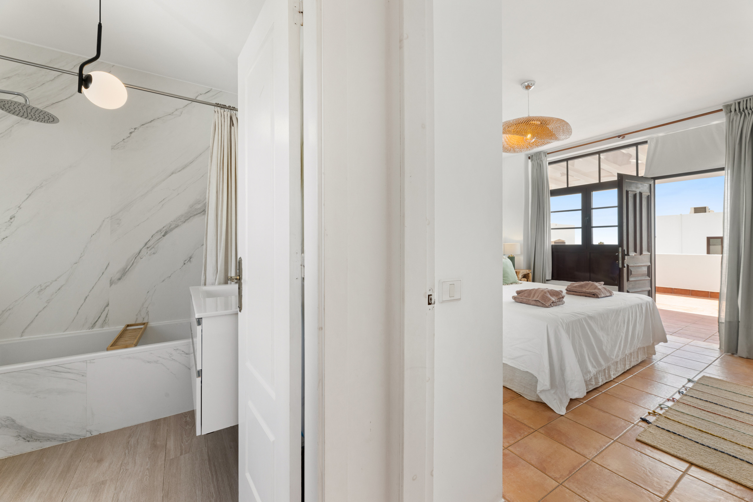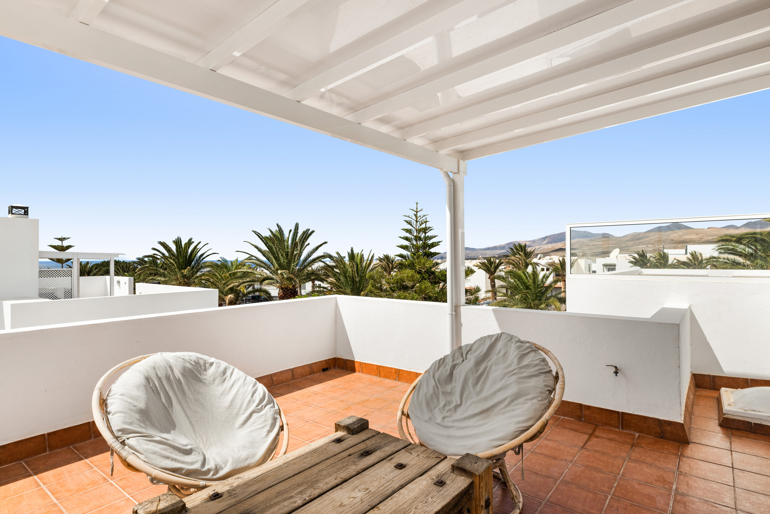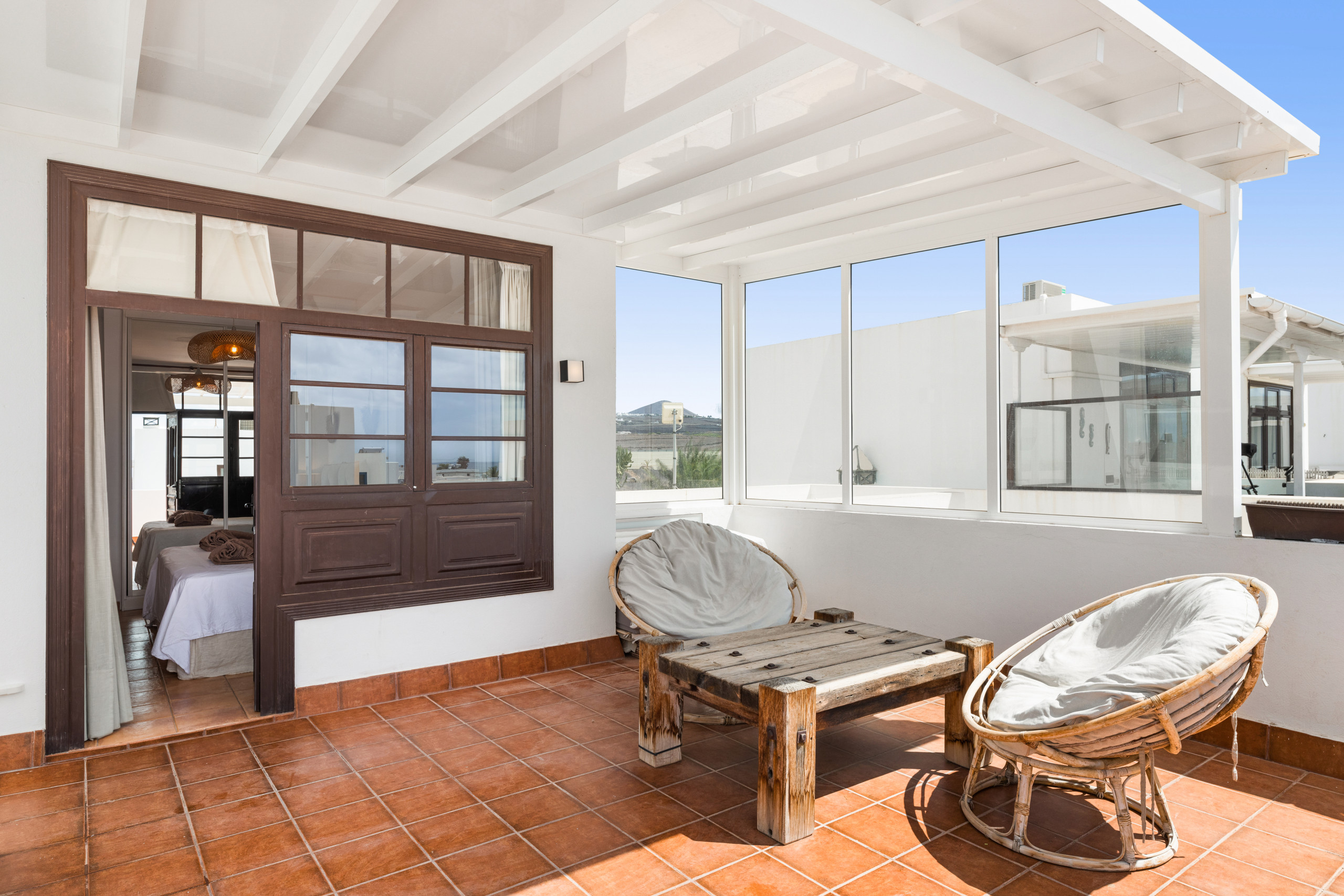 acceso a una tercera terraza con mobiliario y vistas al mar y Fuerteventura. Dispone de