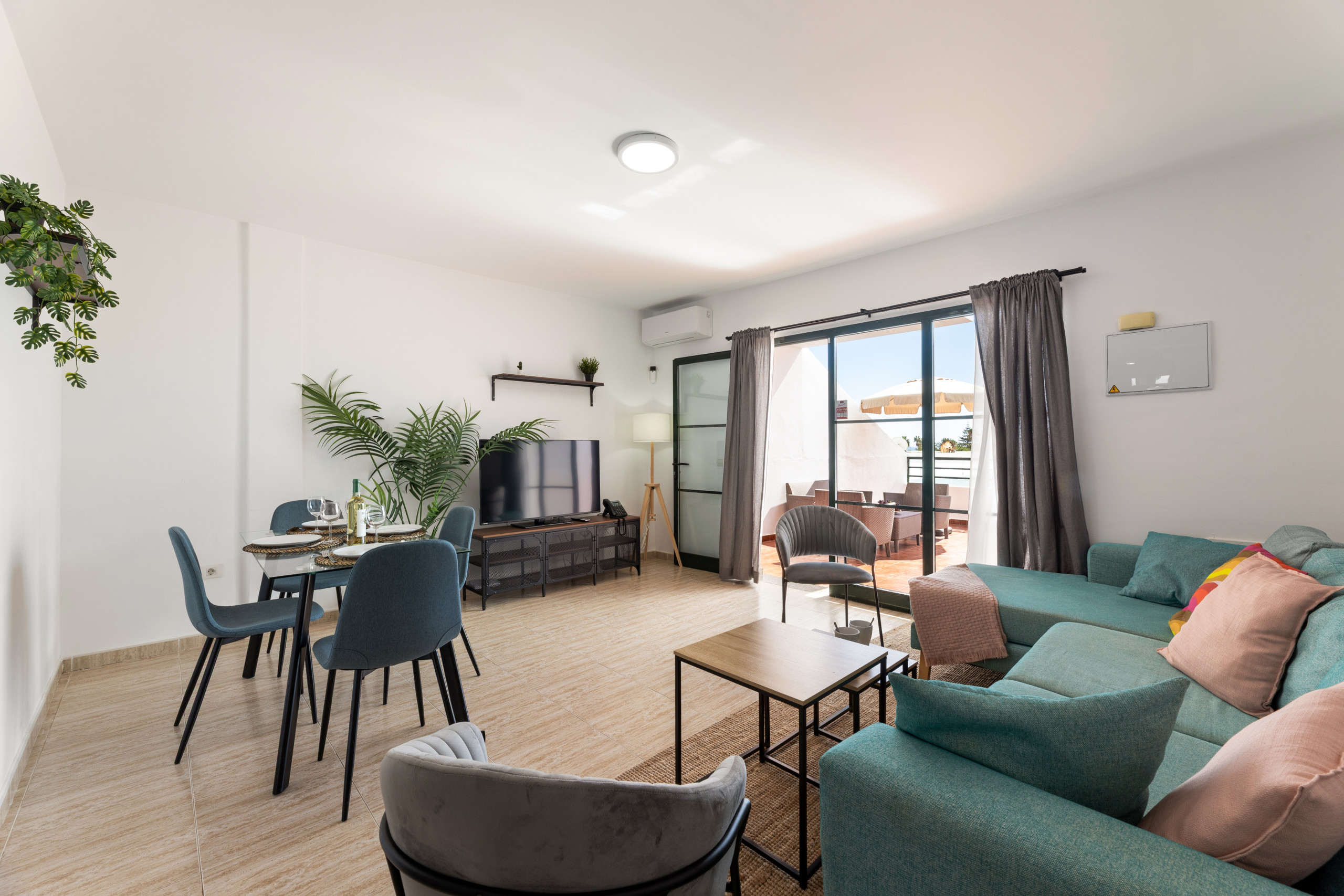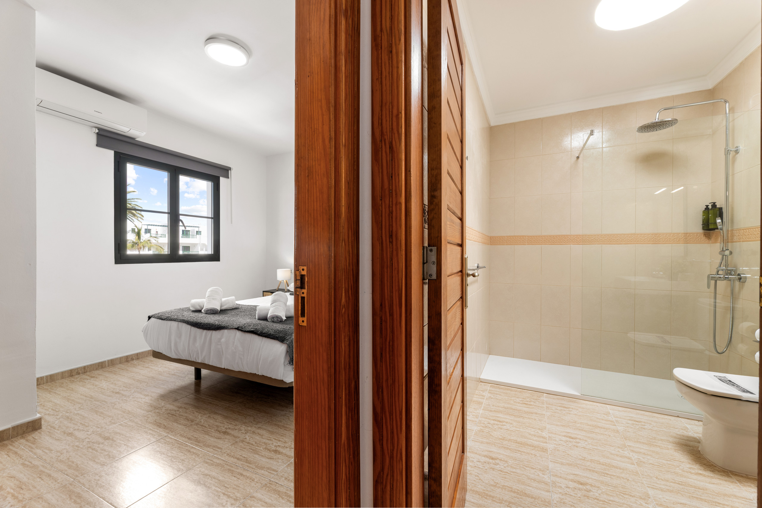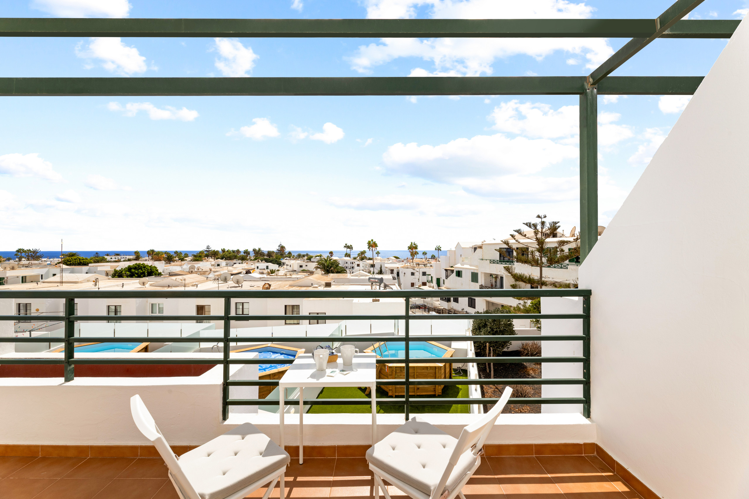 Nuestros modernos dúplex ofrecen un amplio espacio para disfrutar de tus vacaciones con total comodidad. En la planta baja, encontrará una cocina totalmente reformada, equipada con menaje y electrodomésticos propios de un hogar. El amplio salón-comedor, con acceso a una terraza amueblada, es el lugar perfecto para disfrutar de momentos de tranquilidad y compañía. Además, en este espacio exterior, podrás relajarte en una piscina privada de 3 x 3. La planta baja cuenta con un baño completo con ducha. En la planta alta, a la que se accede por escaleras internas, se encuentran tres dormitorios. Disponen de una cama de matrimonio con ropero empotrado. El segundo dormitorio cuenta con dos camas individuales de 90 cm y ropero empotrado, y el tercero tiene una cama individual de 90 cm. Además, en esta planta se encuentra un baño completo con ducha y un balcón con vistas al mar. Este dúplex tiene capacidad para hasta 5 personas más un bebé (cuna disponible bajo previa petición). No dispone de camas supletorias ni sofá cama. Entre otros servicios, el alojamiento ofrece Wi-Fi gratuito en las instalaciones, y fácil aparcamiento (no privado). Los dúplex no dispone de aire acondicionado, ventiladores ni calefactores. Ideal para familias, grupos de amigos y trabajadores en remoto.