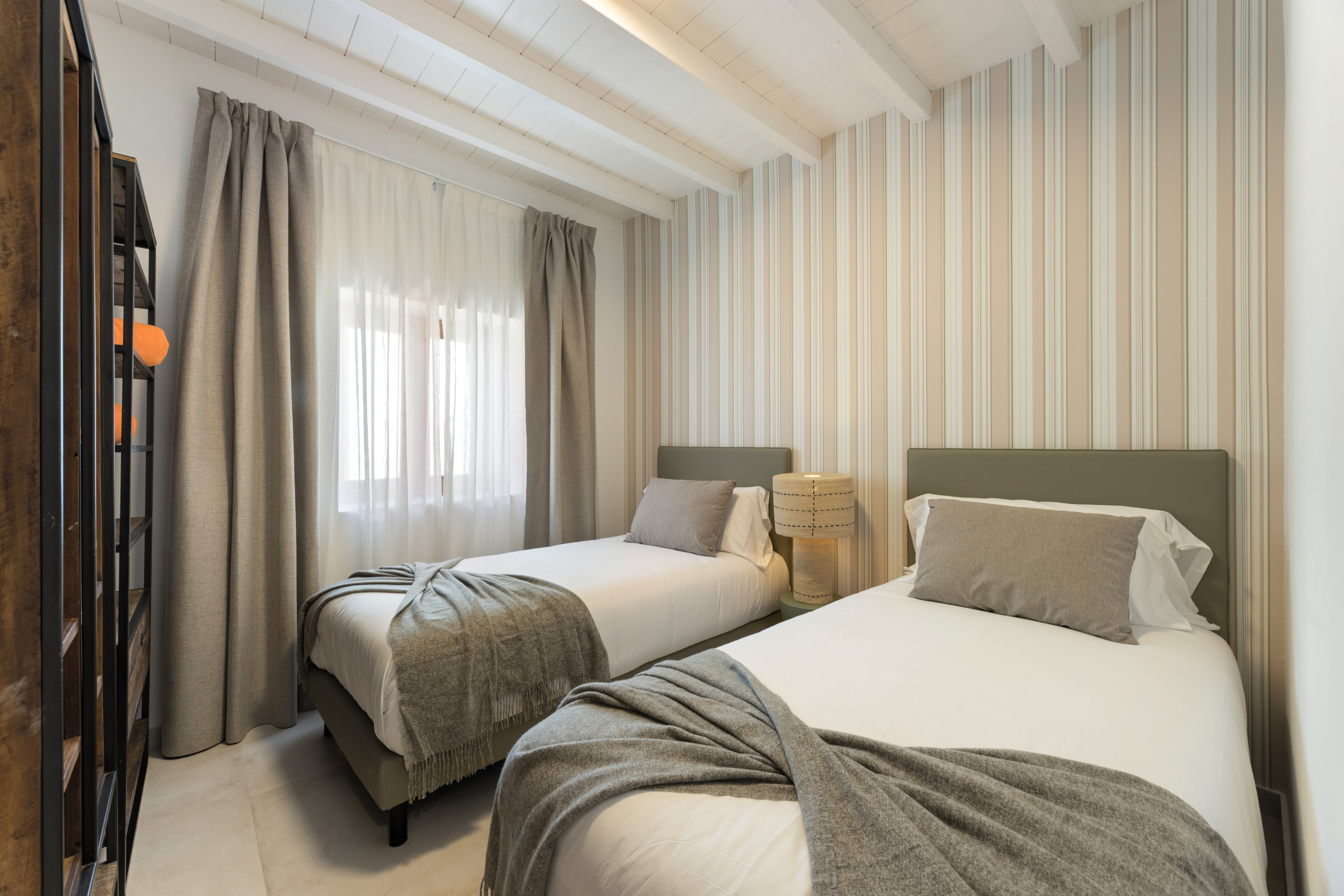 Consta de dos amplios dormitorios, uno con cama de matrimonio y otro con dos camas individuales, dos baños (uno de ellos in suite), grandes armarios empotrados, decoración serena y elegante.