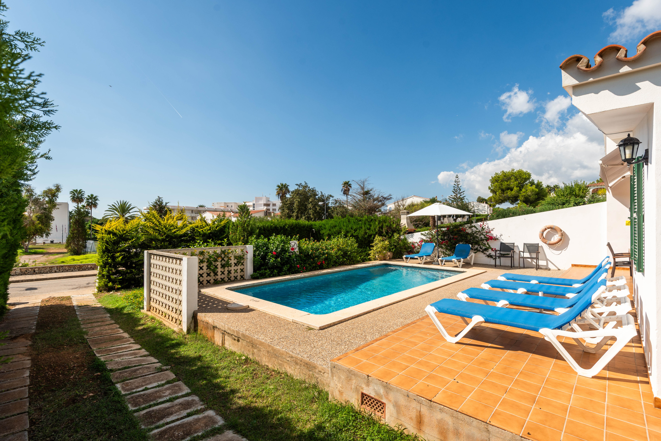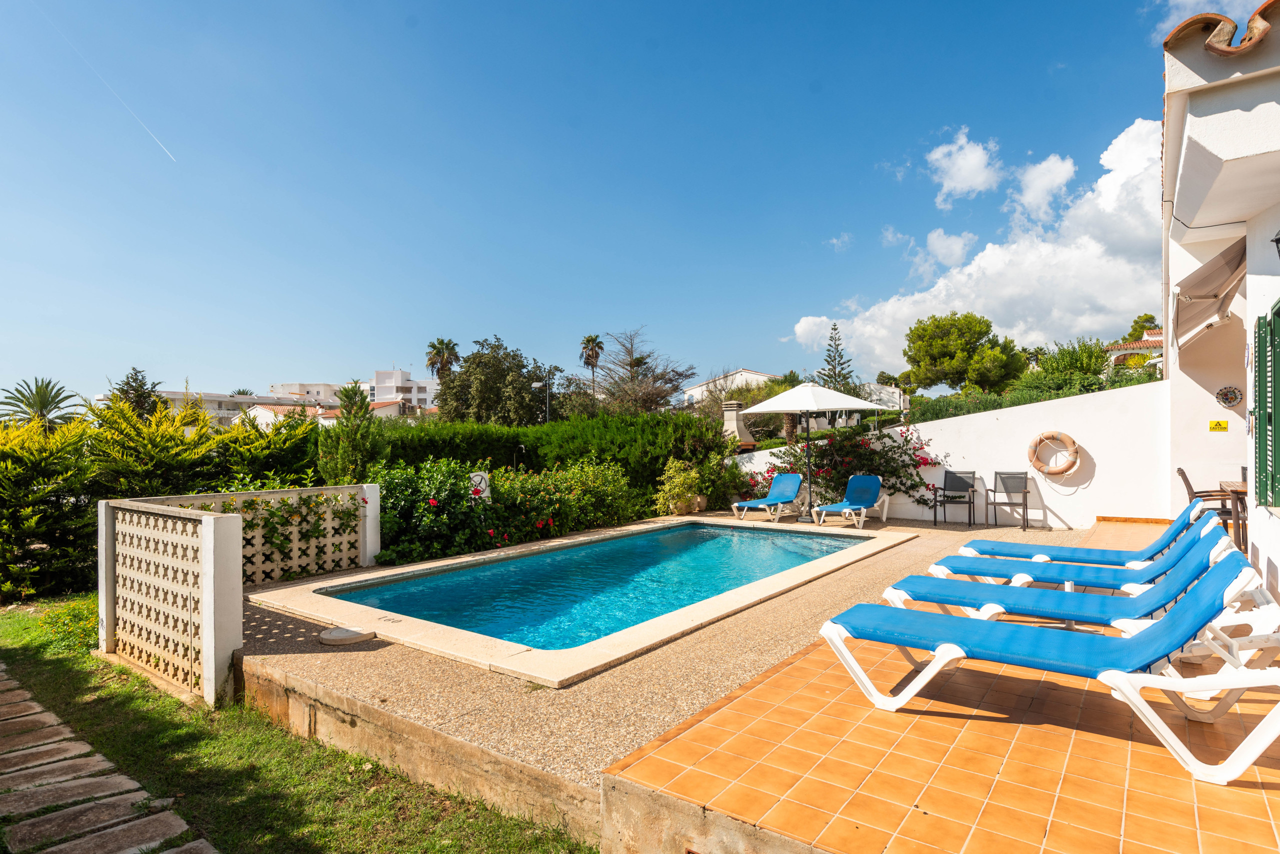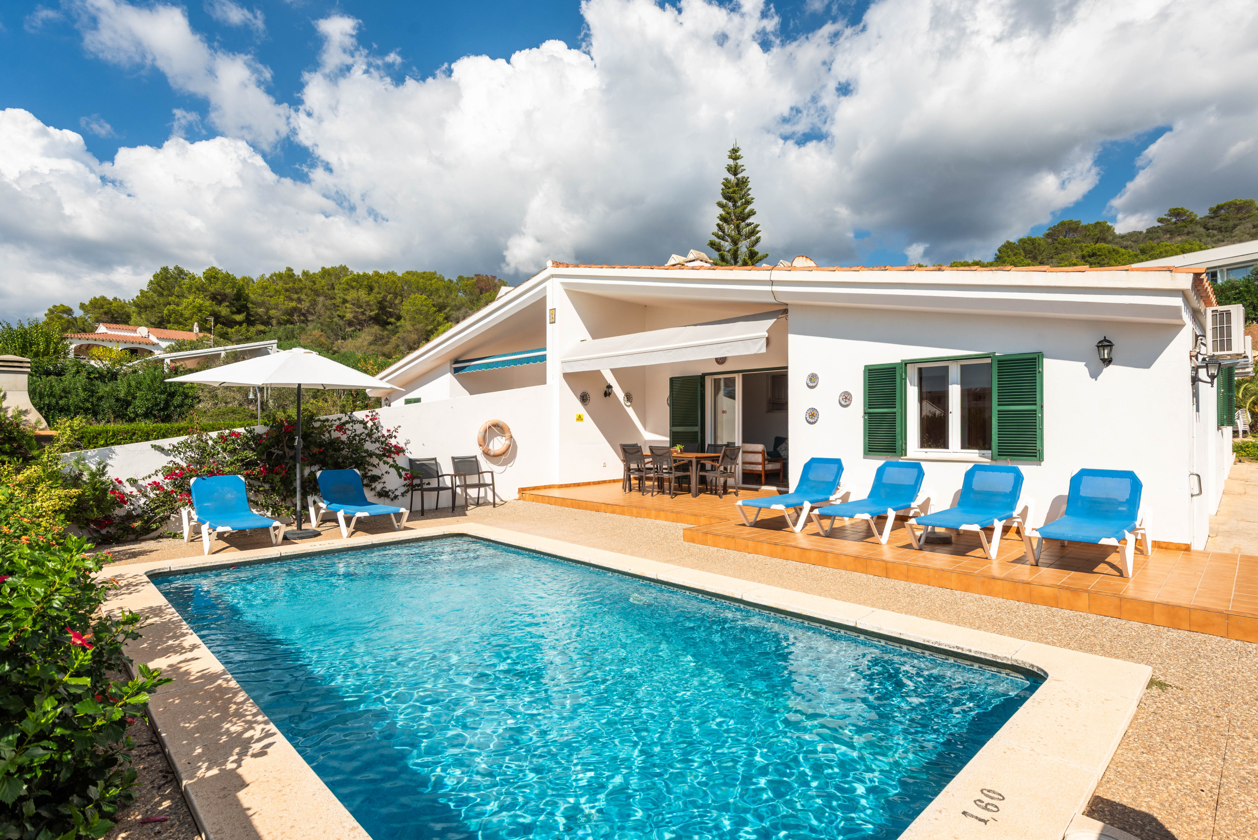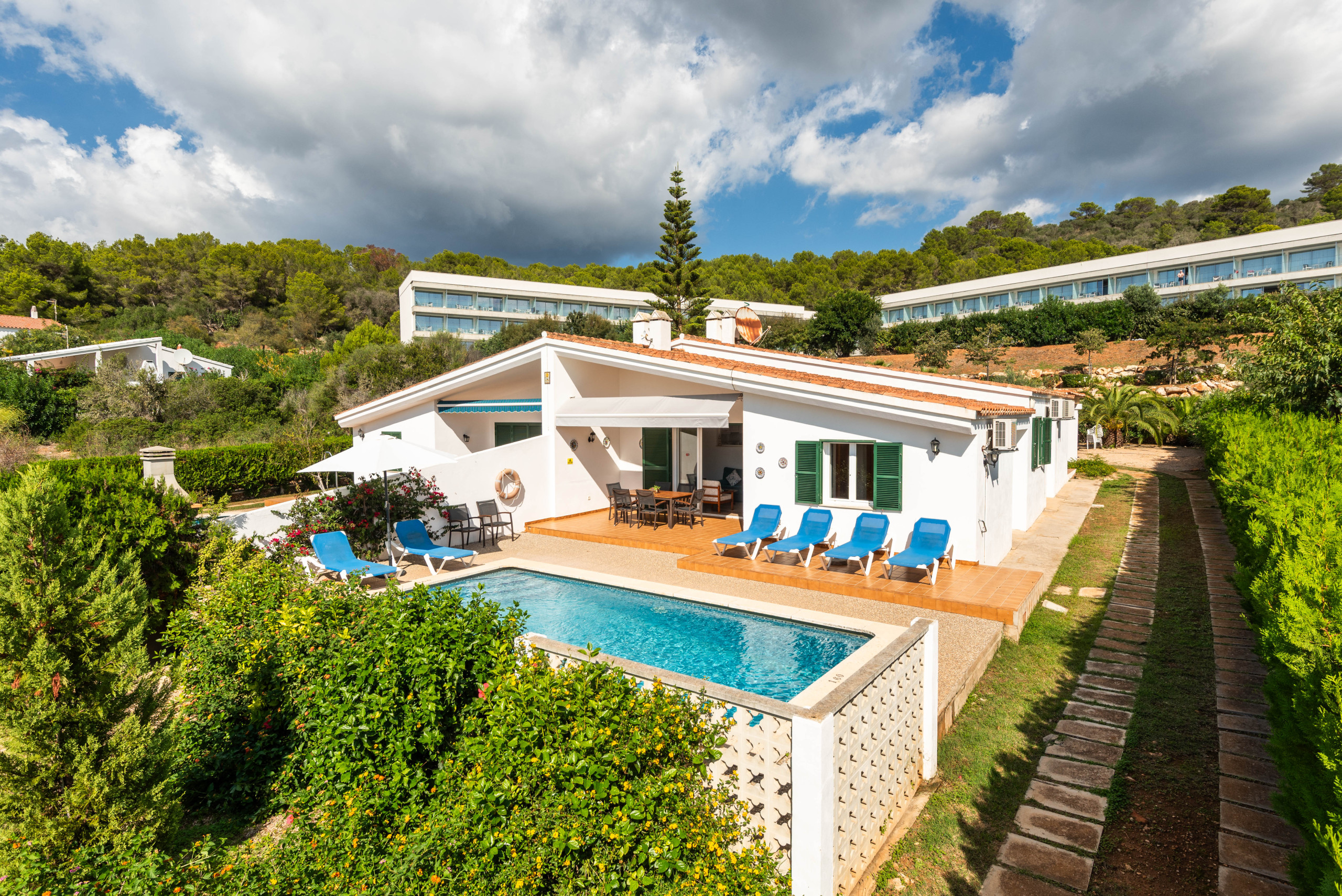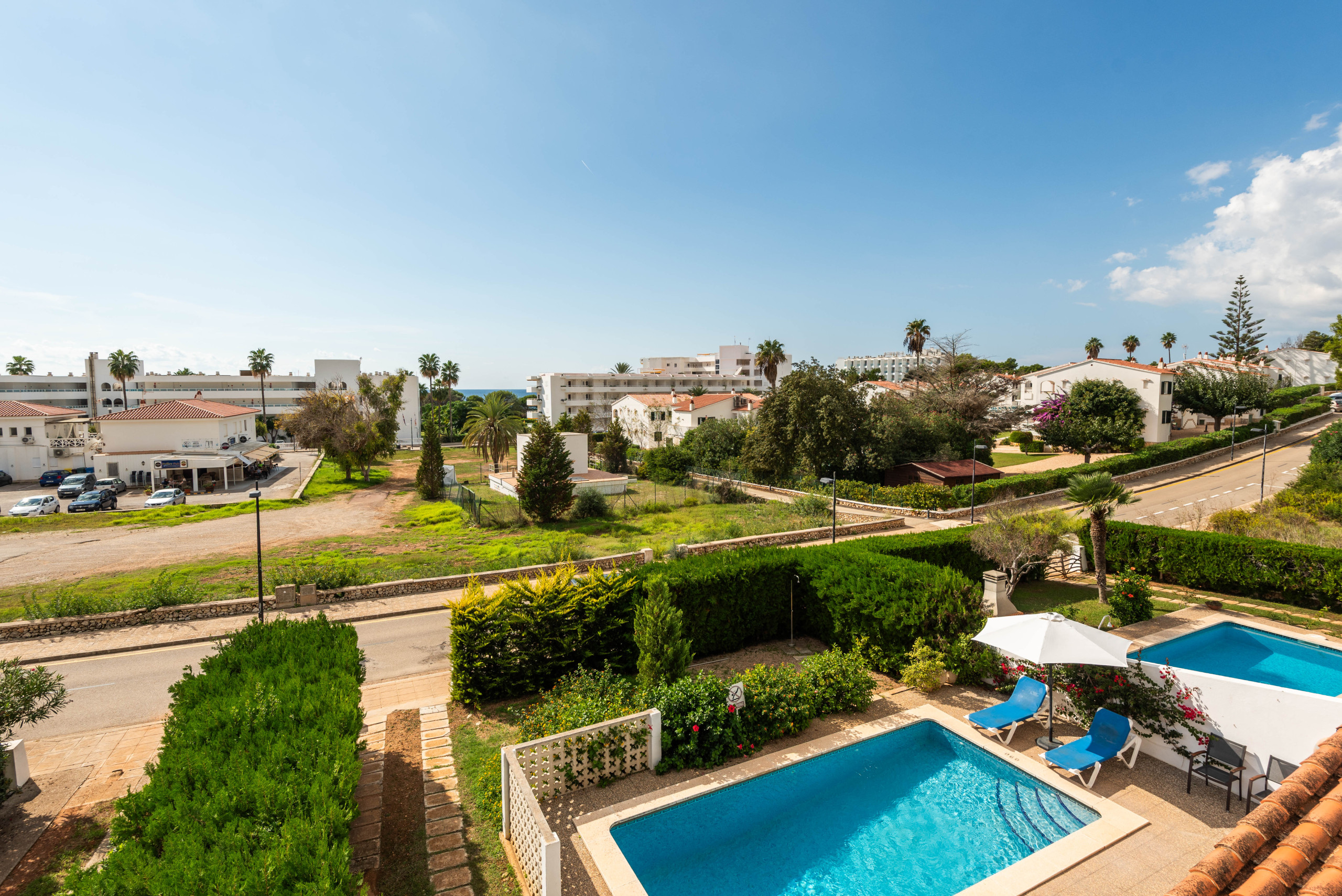 La ubicación es ideal, a solo 700 metros de la playa de arena de Santo Tomás y cerca de supermercados, restaurantes y atracciones como el campo de golf de Son Parc y el Parque Acuático Menorca Aquarock.