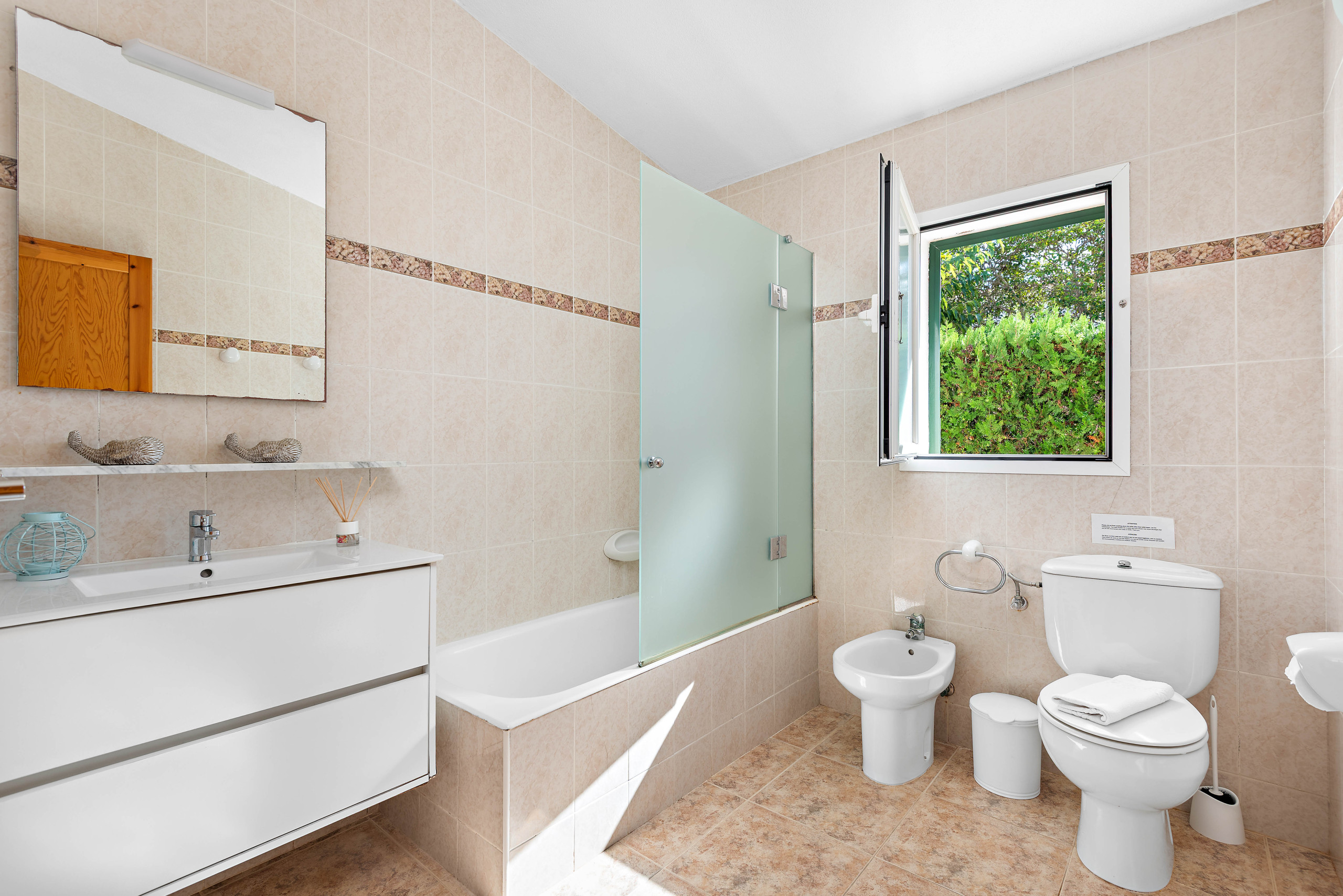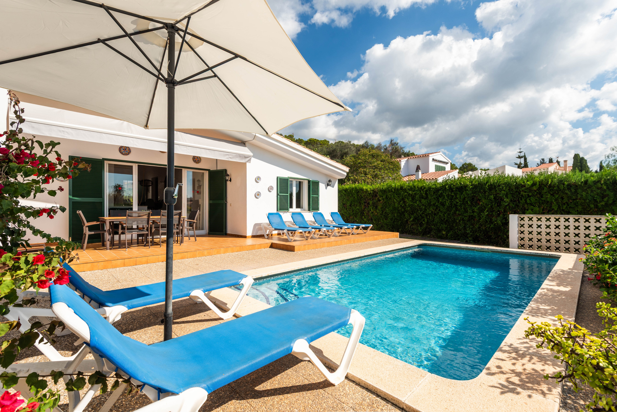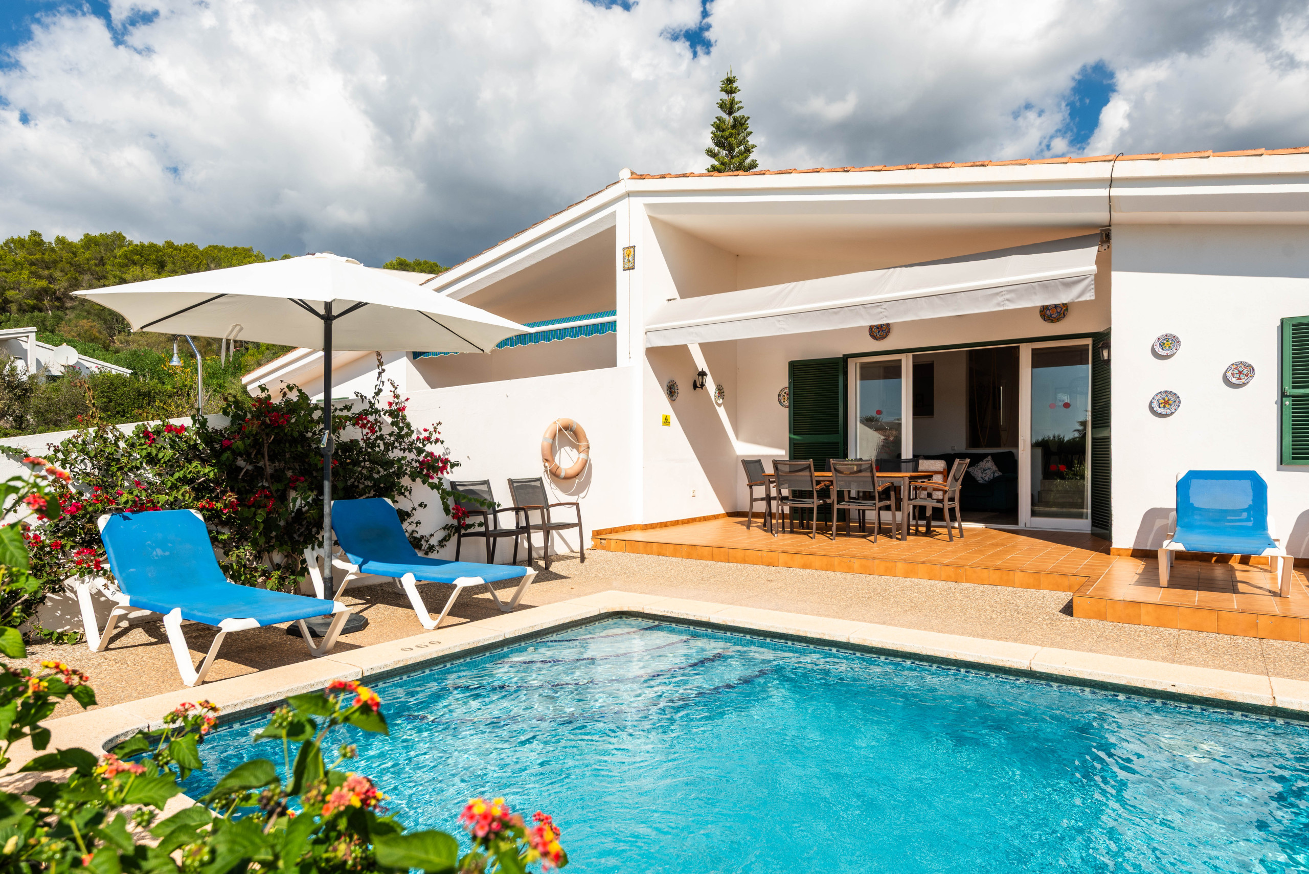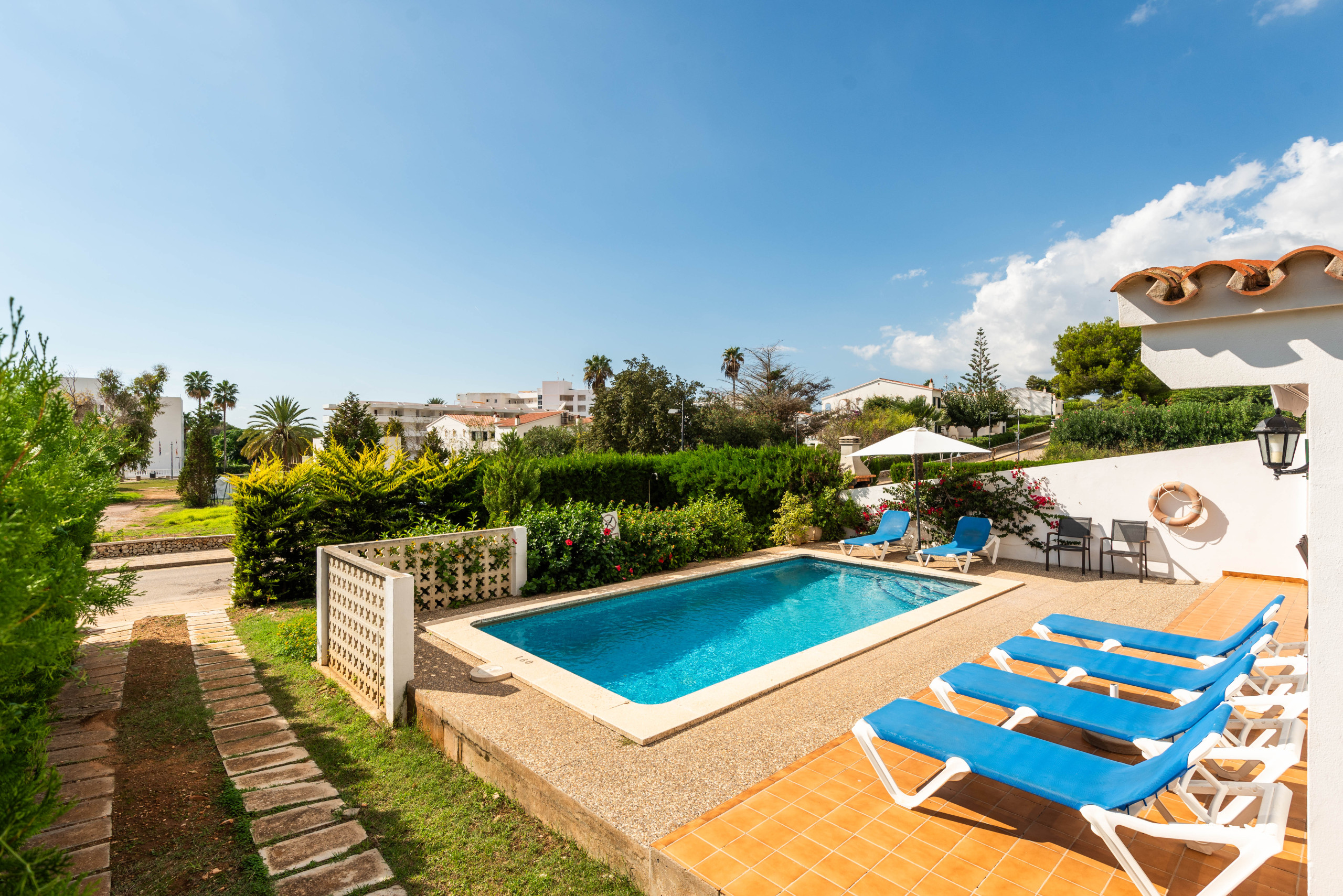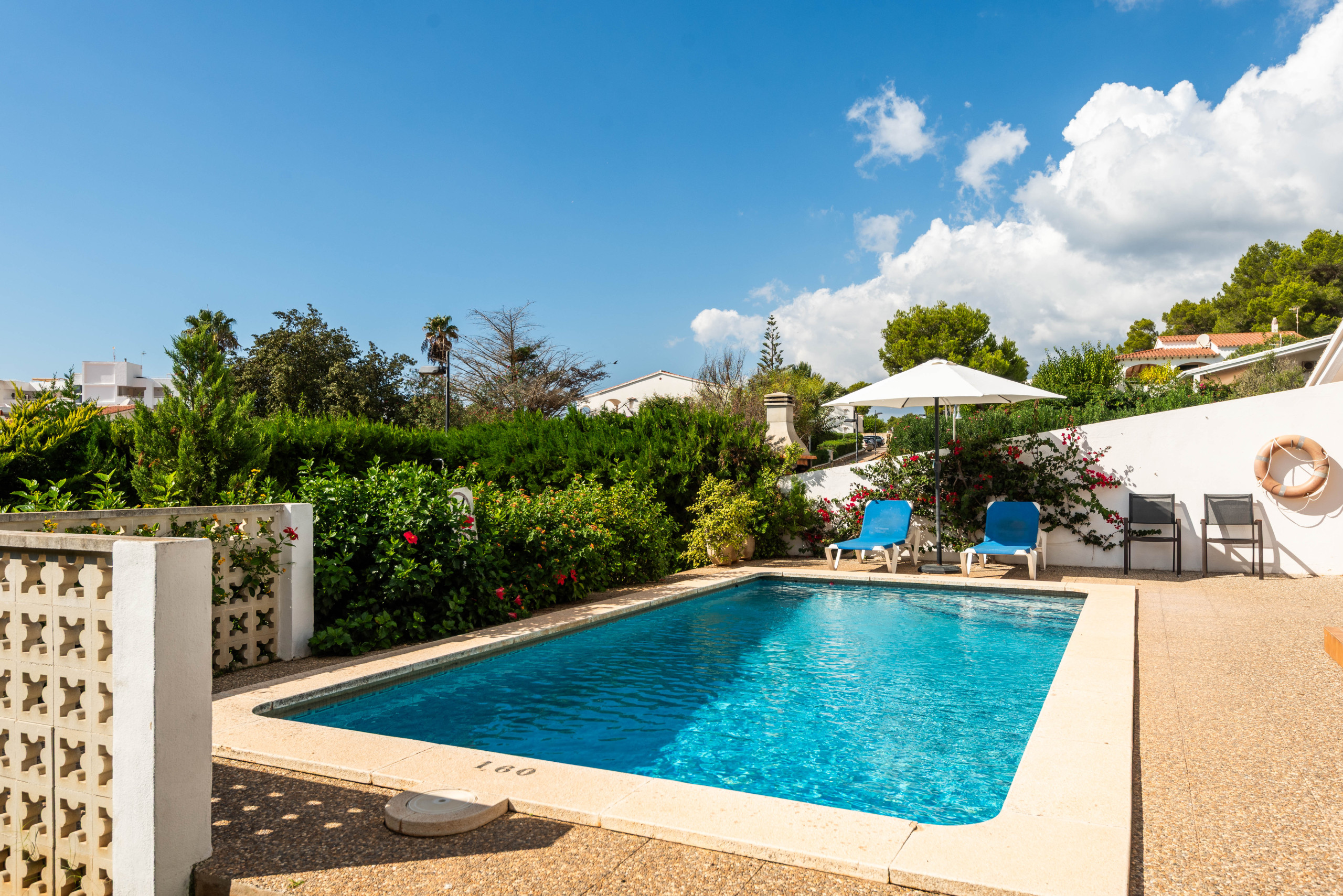 La ubicación es ideal, a solo 700 metros de la playa de arena de Santo Tomás y cerca de supermercados, restaurantes y atracciones como el campo de golf de Son Parc y el Parque Acuático Menorca Aquarock.
