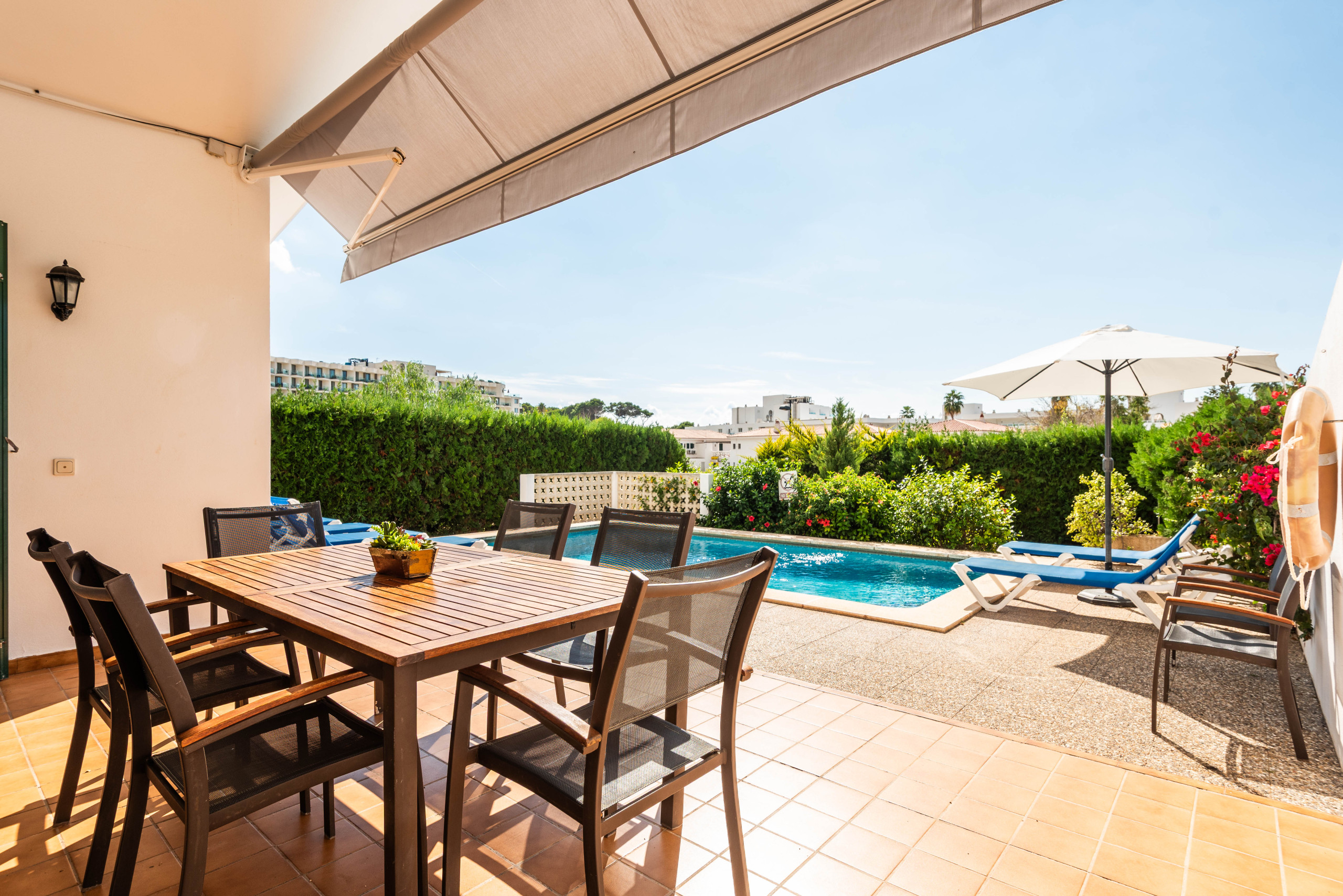 La propiedad cuenta con una piscina privada donde podrás refrescarte durante los cálidos días de verano. Además, dispone de un jardín con mobiliario de exterior y una terraza, perfectos para disfrutar de comidas al aire libre.