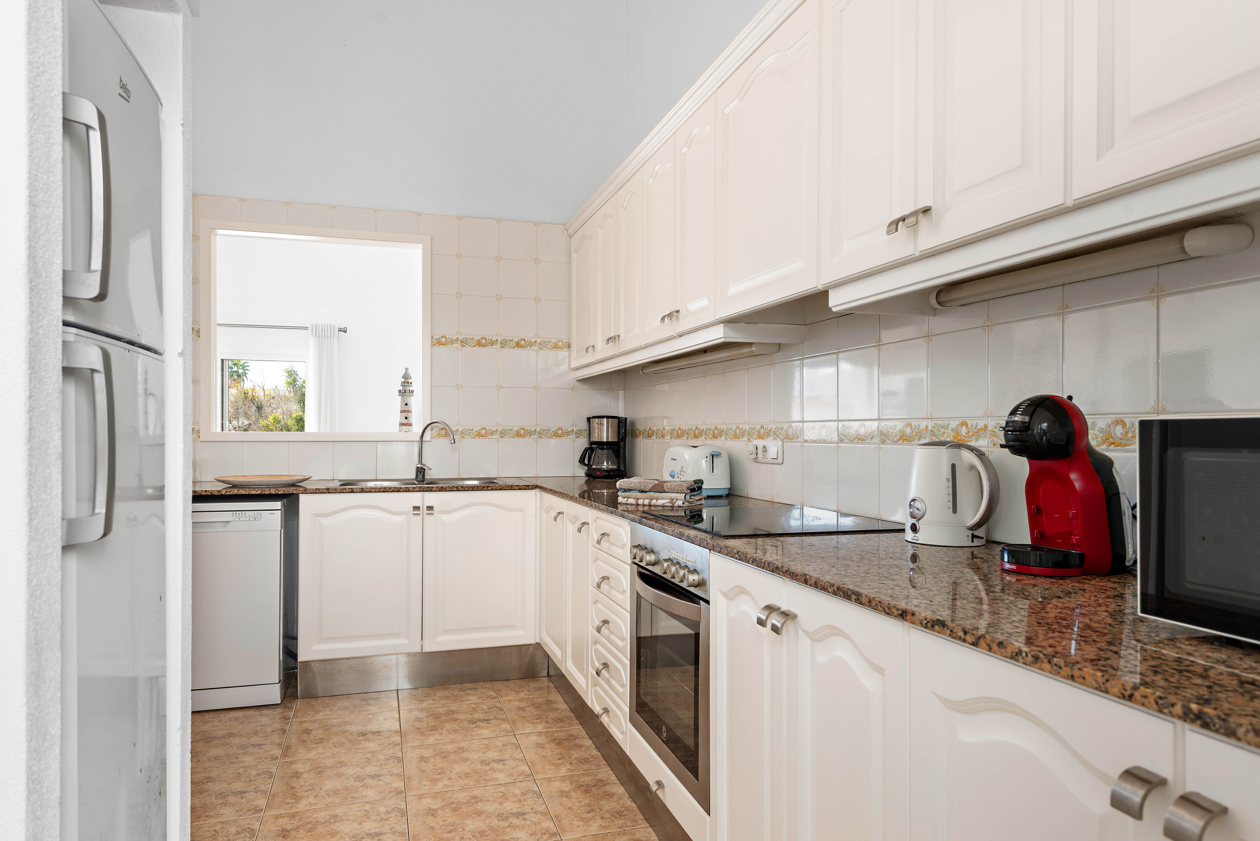 La cocina americana está completamente equipada con electrodomésticos de última generación, incluyendo lavadora, lavavajillas, horno, microondas, cafetera, tostadora y hervidor. Además, dispone de wifi y aire acondicionado en los dormitorios para garantizar el máximo confort.