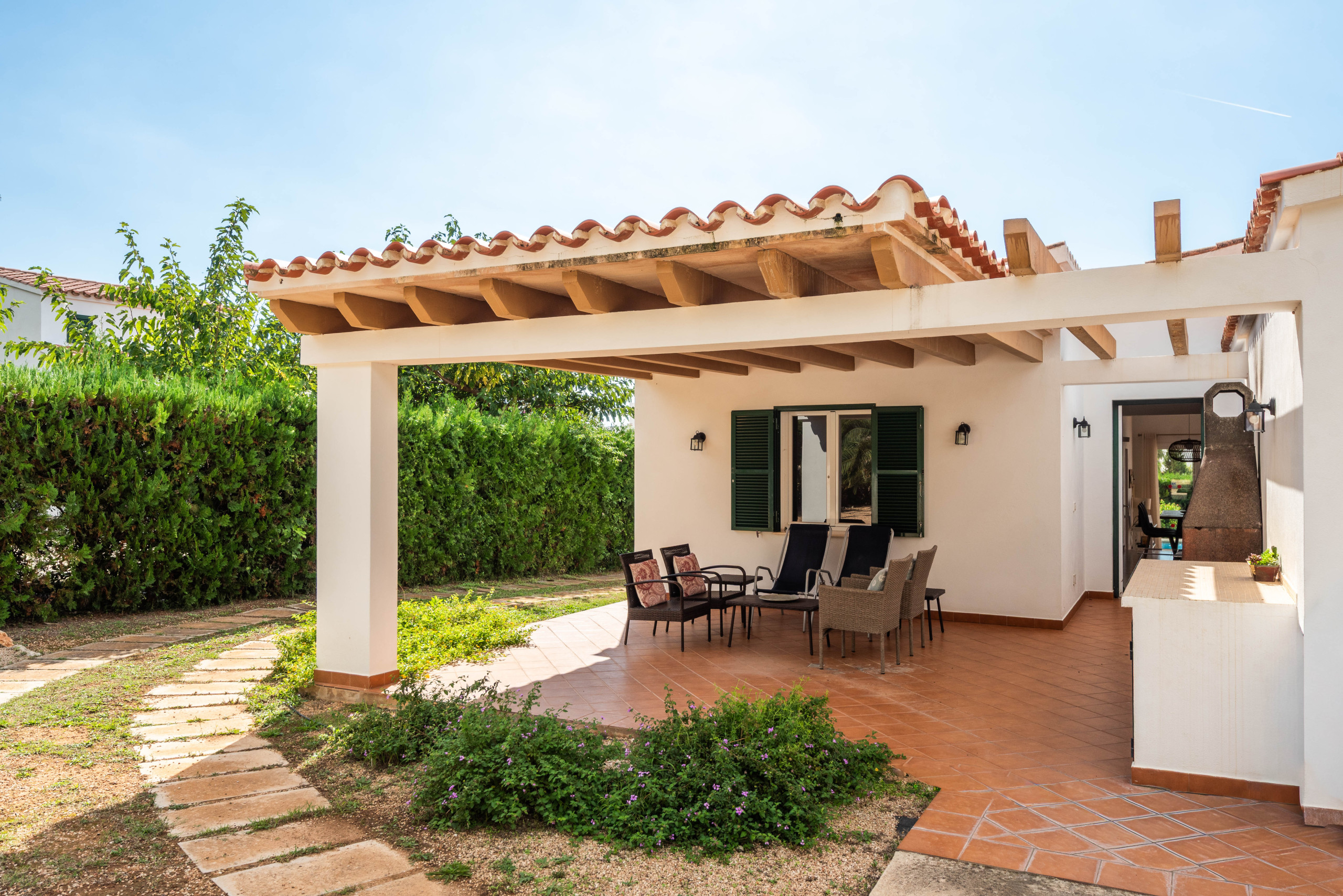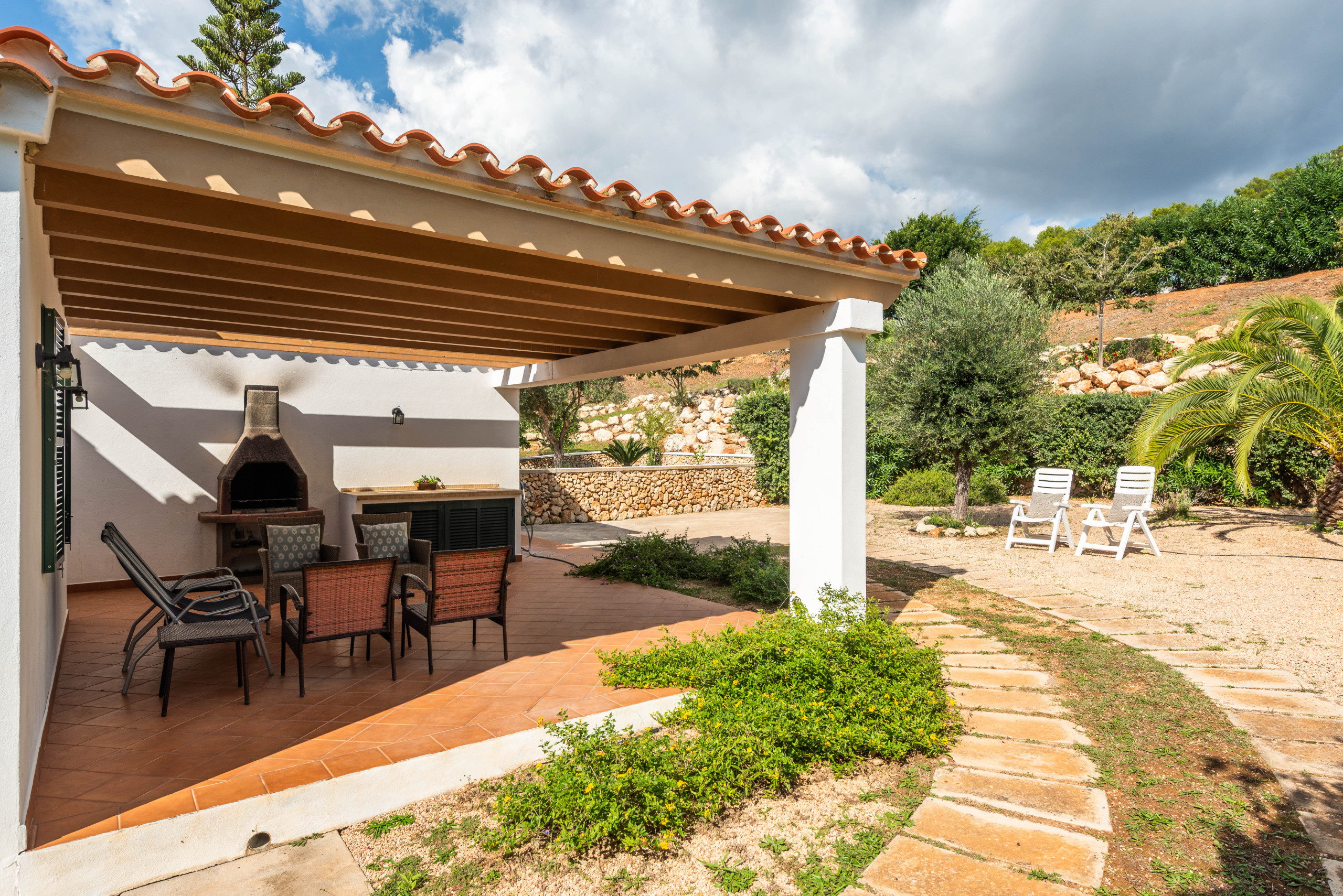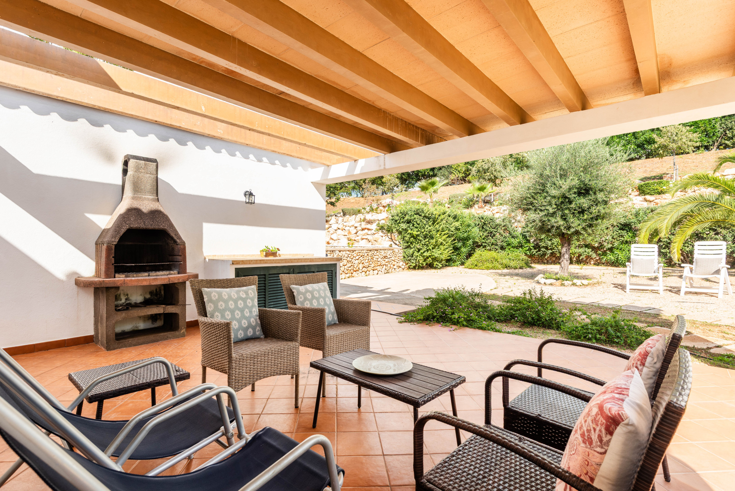 Un aspecto destacado de Villa Noelia es su jardín exterior, que ofrece un espacio perfecto para momentos de relax y convivencia familiar. La zona cuenta con muebles de jardín y una barbacoa, ideal para disfrutar de comidas al aire libre y compartir momentos especiales.