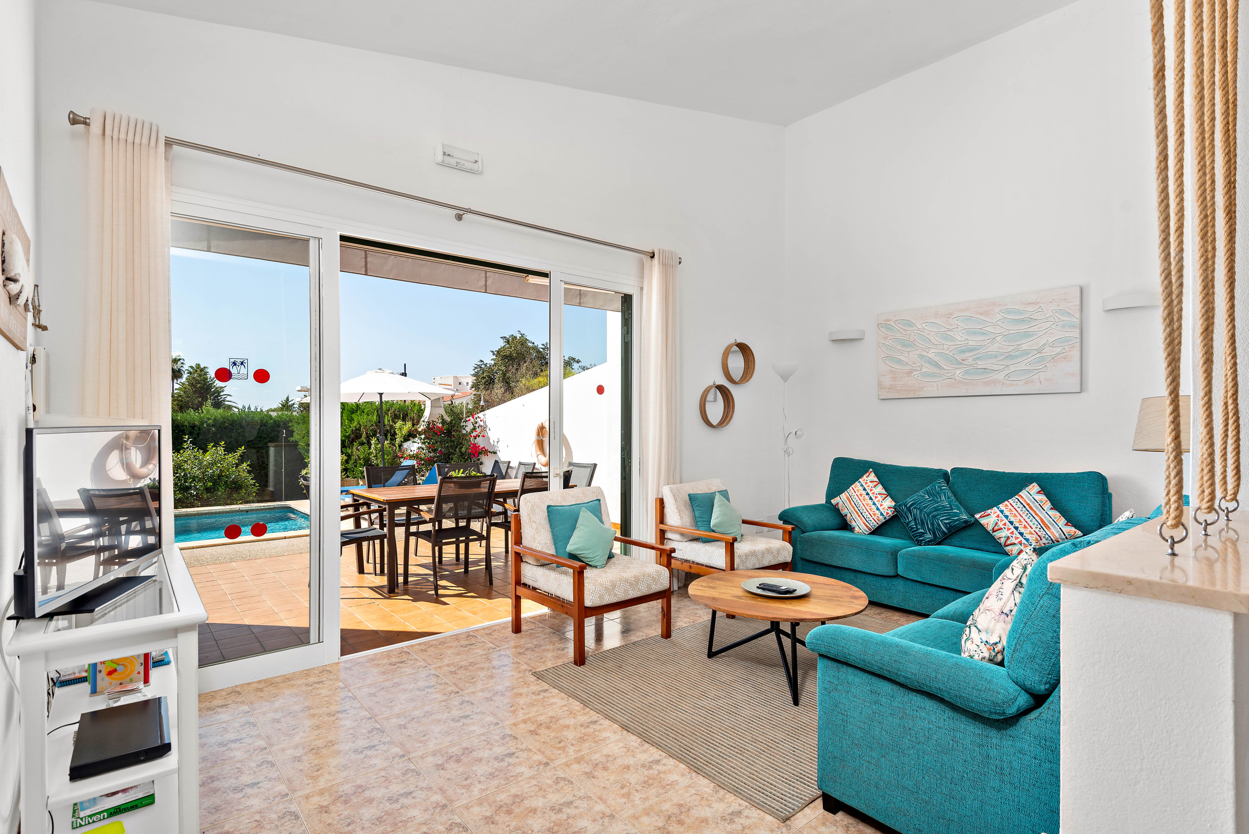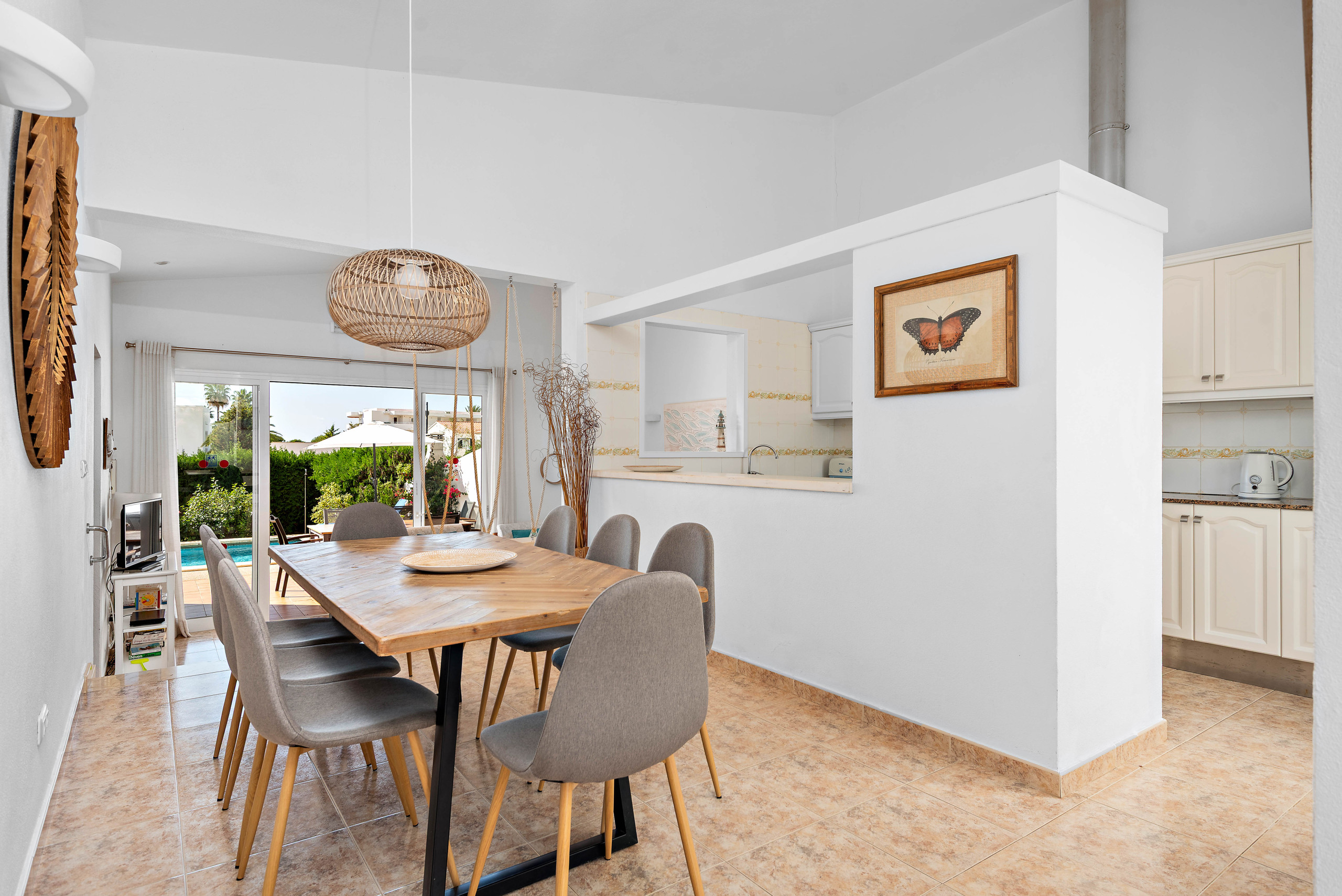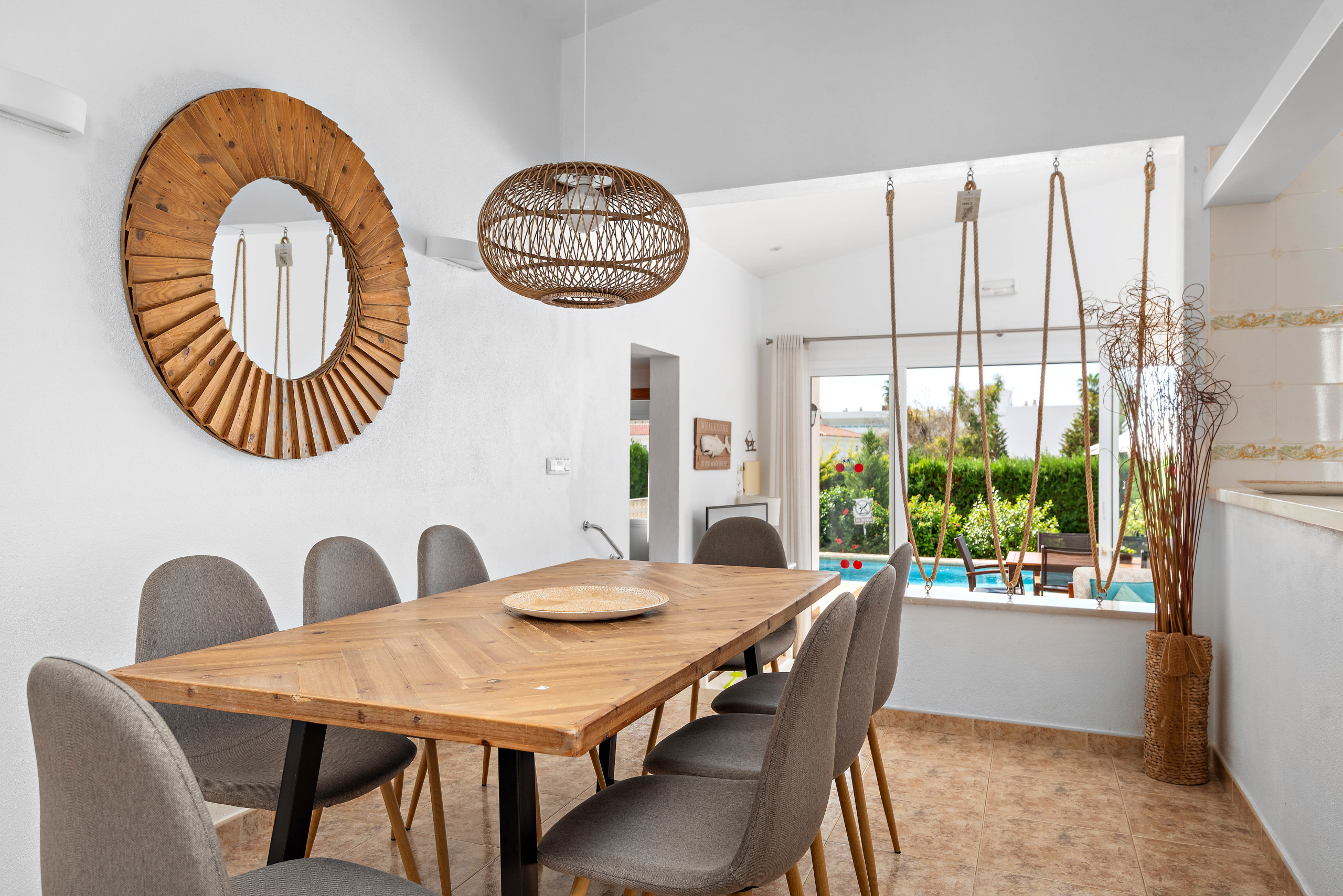 Un aspecto destacado de Villa Noelia es su jardín exterior, que ofrece un espacio perfecto para momentos de relax y convivencia familiar. La zona cuenta con muebles de jardín y una barbacoa, ideal para disfrutar de comidas al aire libre y compartir momentos especiales.