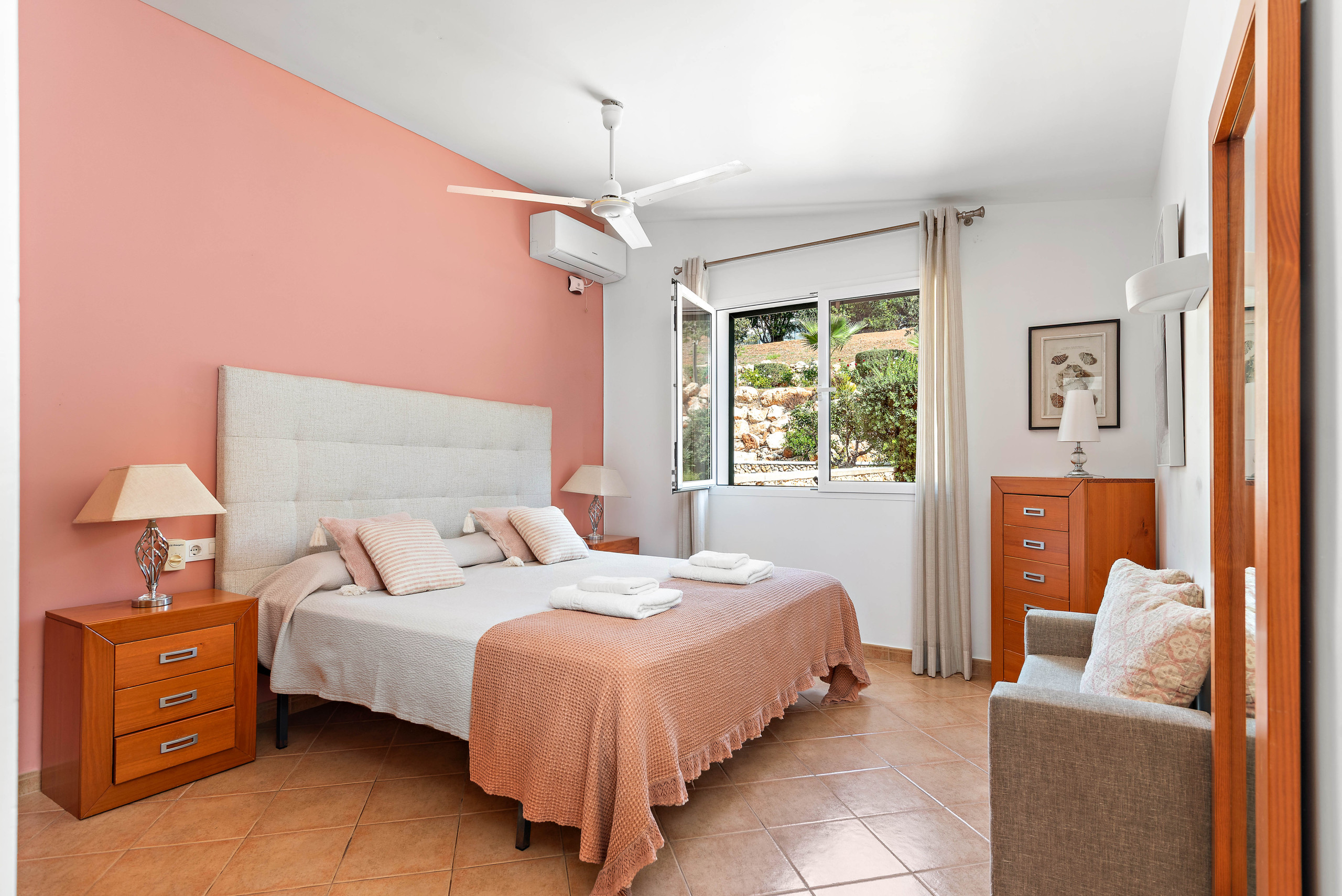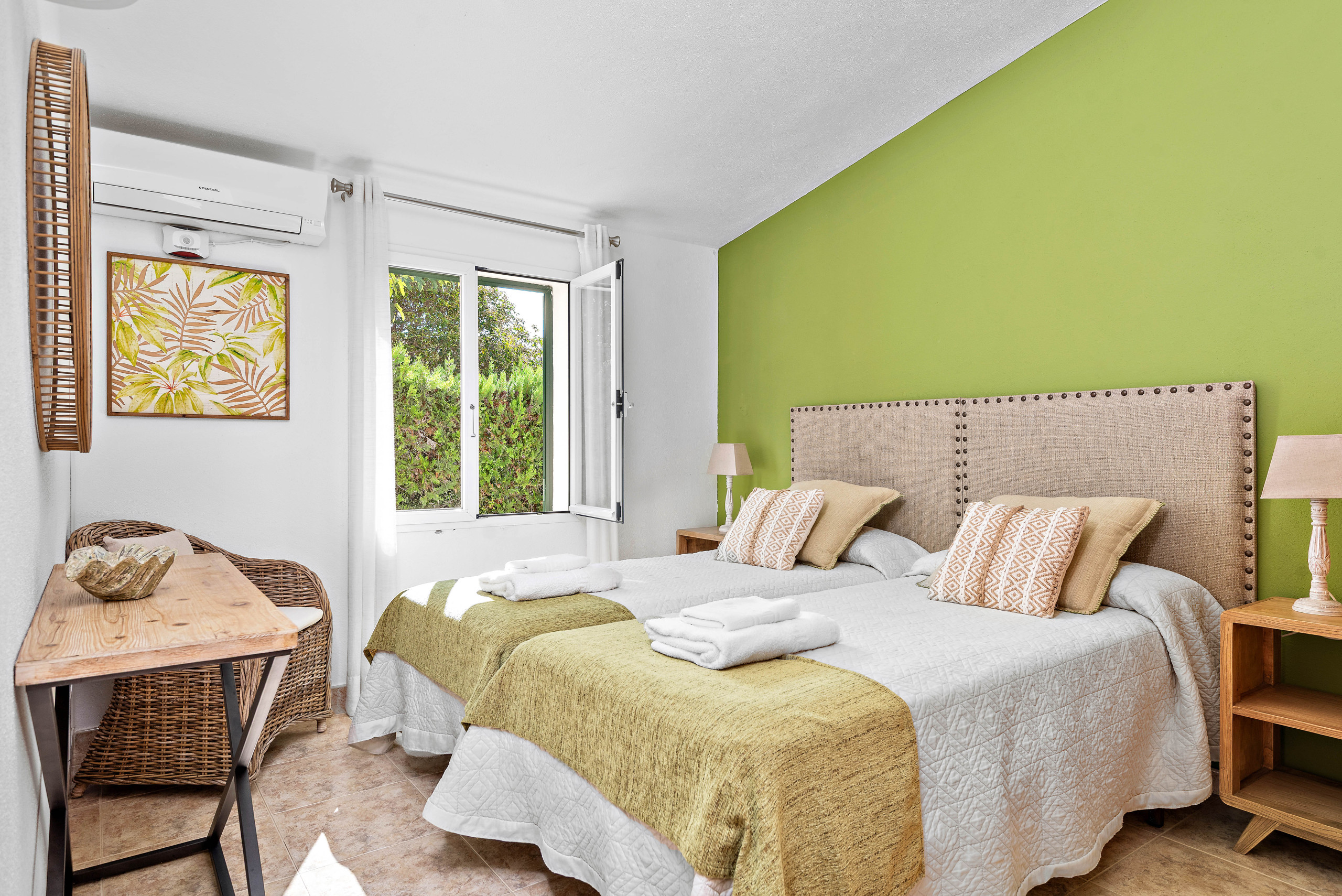Otras comodidades incluyen aire acondicionado en los dormitorios, caja fuerte, plancha y wifi, para que puedas disfrutar de una estancia cómoda y sin preocupaciones.