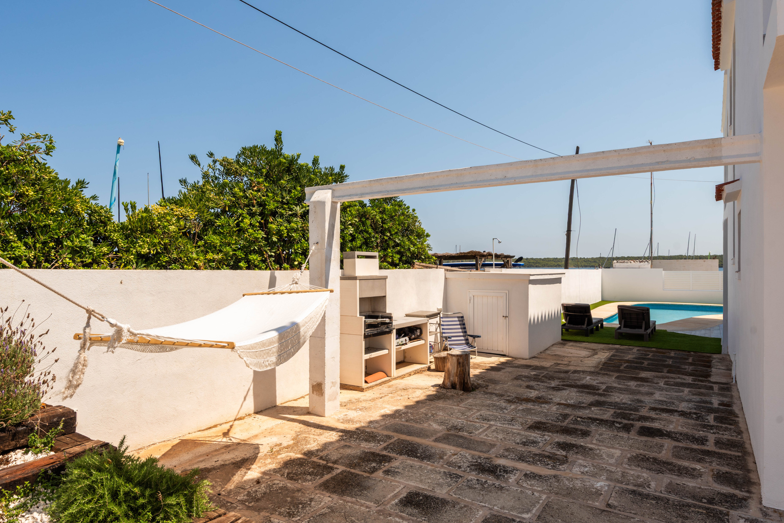 Su ubicación es privilegiada. Se encuentra a solo 600 metros del restaurante Ca Na Marga, a 1.500 metros de Fornells, y a corta distancia de la playa de arena de Ses Salines. A pesar de su tranquilidad, está bien comunicada, con parada de autobús a 2 kilómetros y cerca de servicios como supermercados.