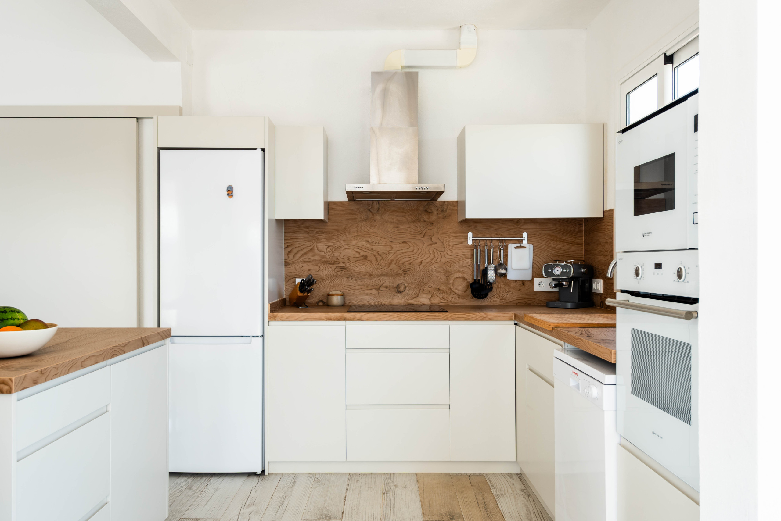 El interior de la vivienda destaca por su confort y funcionalidad. Cuenta con aire acondicionado en toda la casa, conexión WiFi, y una cocina americana totalmente equipada con electrodomésticos como frigorífico, lavadora, horno, microondas, lavavajillas y máquina de café. La villa dispone de 2 baños con ducha, televisión, caja fuerte, plancha y otros detalles que garantizan una estancia cómoda.