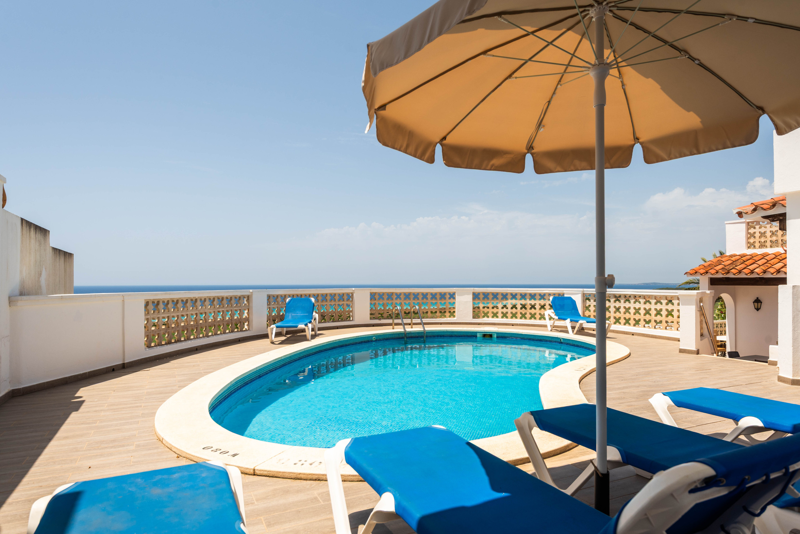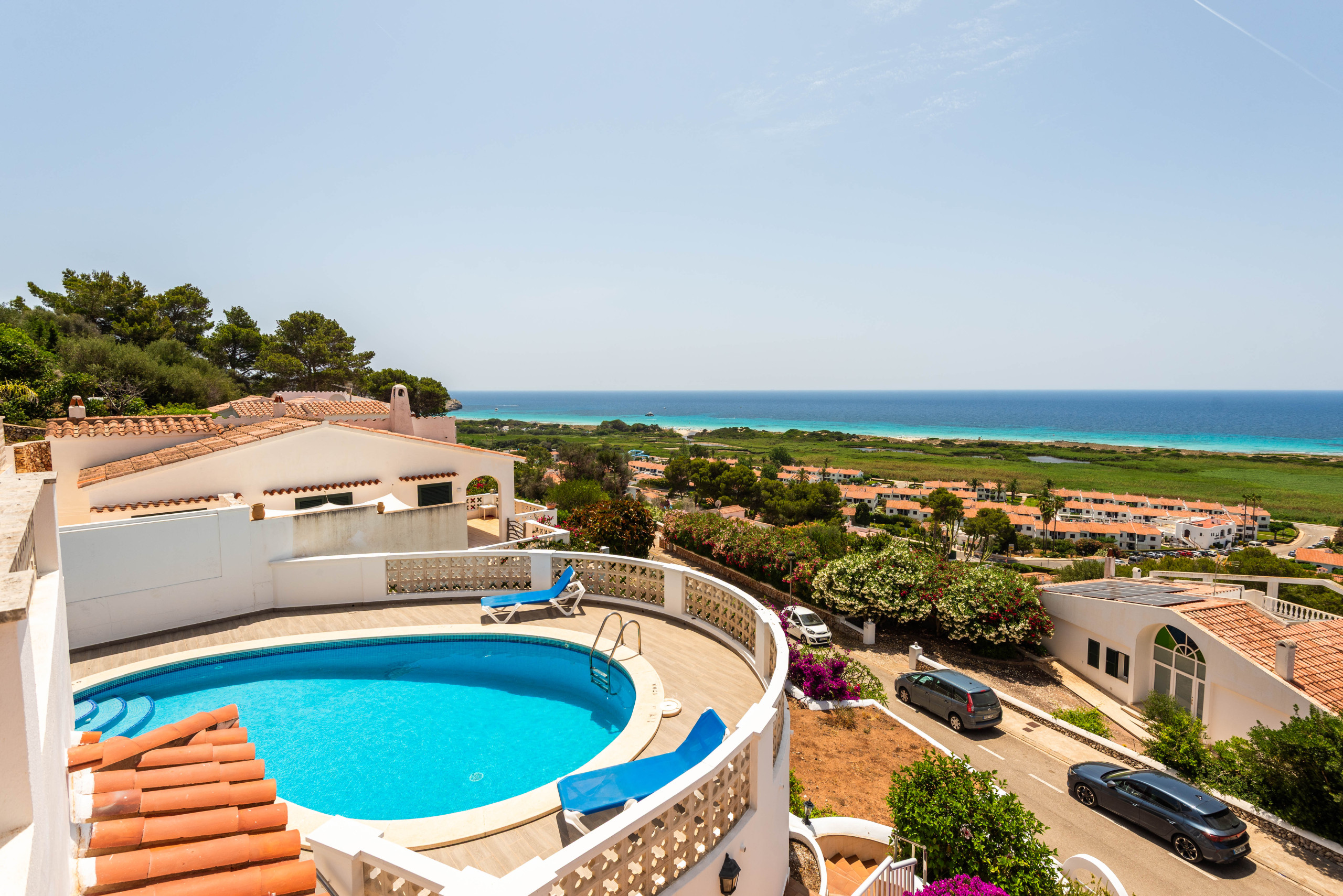 Precioso chalet de 180m2 de construcción , de tres dormitorios, situado en la ladera de Torre Solí, con magníficas vistas a la playa de Son Bou.