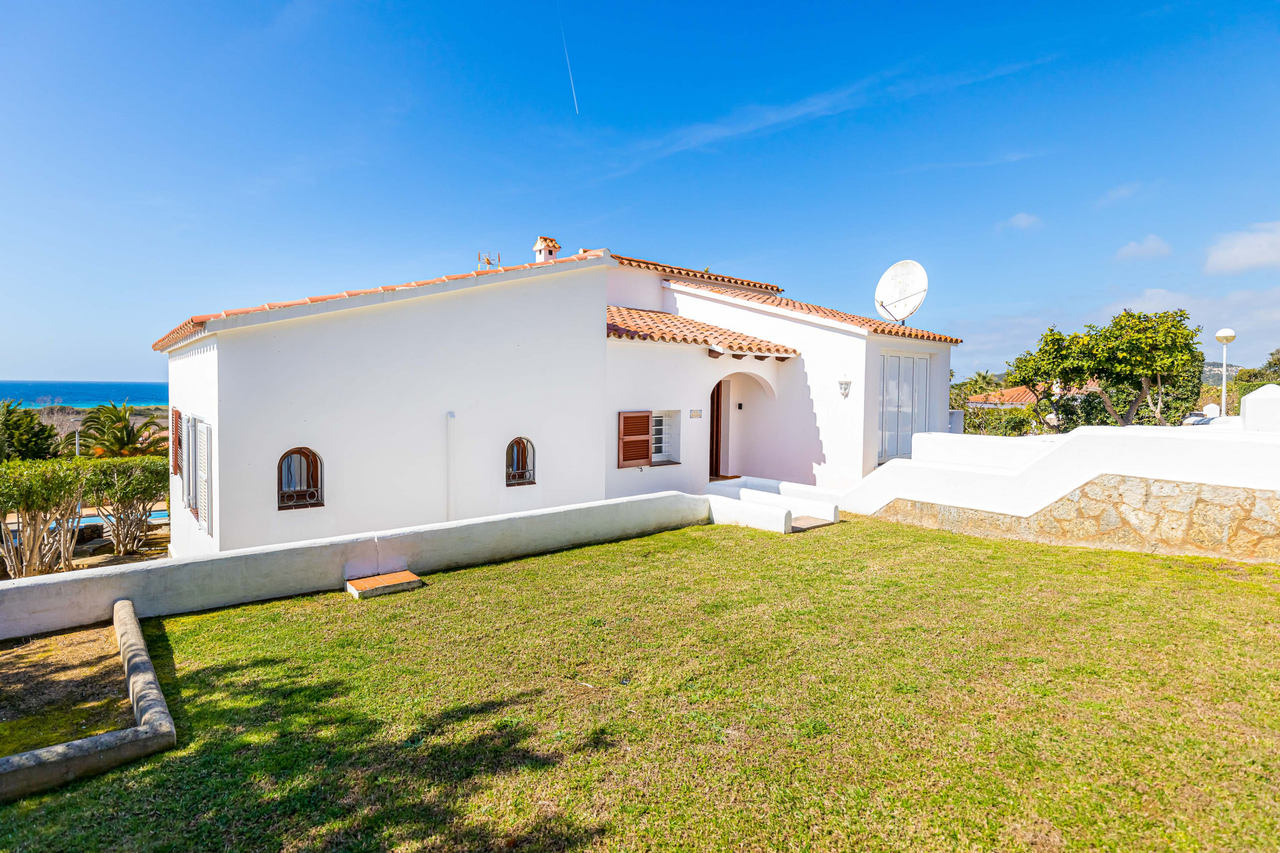 Preciosa villa de tres dormitorios de estilo mediterráneo, la villa está situada muy cerca del centro comercial y de la playa de Son Bou.