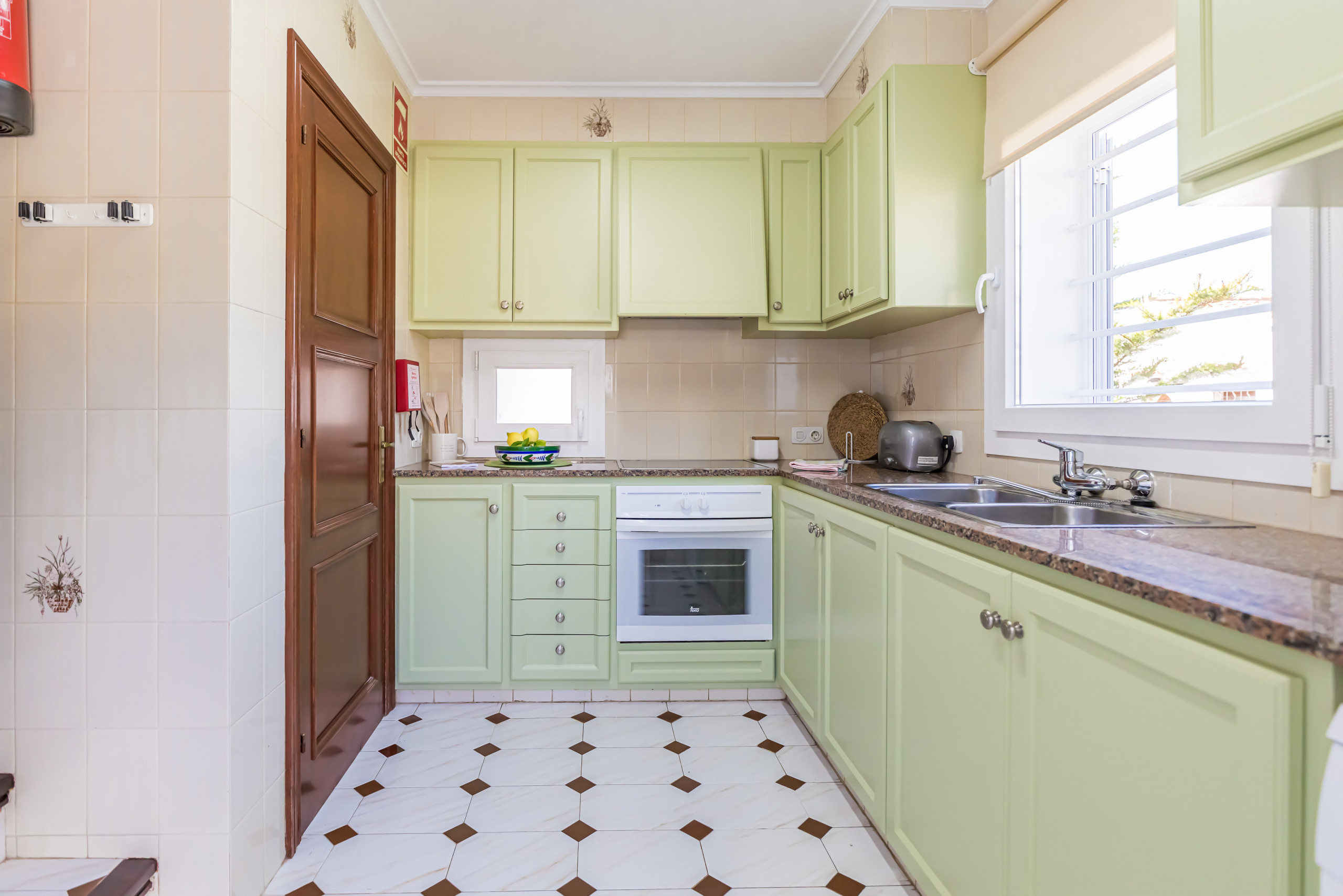 La cocina está totalmente equipada, con horno eléctrico, vitrocerámica, lavaplatos, microondas, tostadora, kettle, cafetera de capsulas y cafetera de italiana o de filtro y nevera con congelador. incluyendo lavavajillas.