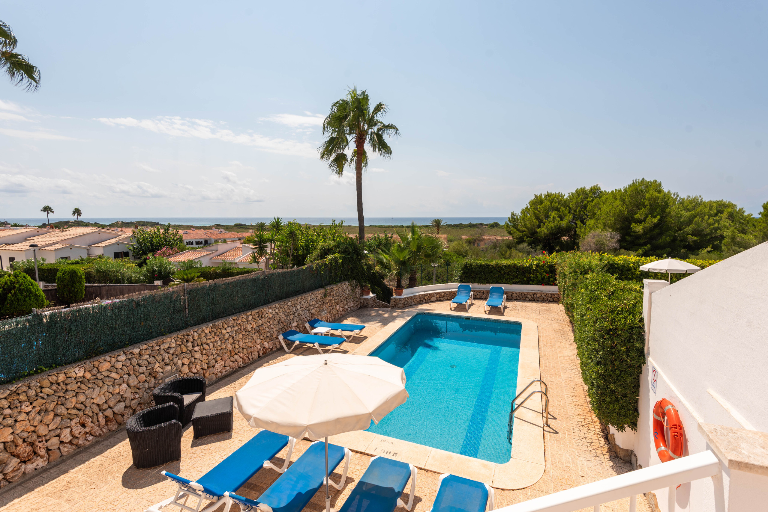 Las Villas Zodiaco son 2 villas juntas adosadas. La villa Zodiaco Acuario se encuentra en la urb. de Son bou a unos 600mts de la playa del mismo nombre. Consta de 3 dormitorios dobles con capacidad máxima hasta2 personas. Tiene espacioso salón-comedor con ventanal que da acceso a la terraza con unas magníficas vistas al mar y a la puesta de sol de Menorca. La planta noble consta de salón con ventiladores de techo, WIFI gratuito para los clientes, Smart TV, bluetooth. Hermosa cocina, bien equipada, con horno eléctrico, vitrocerámica, lavaplatos, cafetera eléctrica y de capsulas, kettle, tostador y microondas, nevera con congelador. Al lado del salón hay un baño con bañera y secador de pelo. En la planta inferior están distribuidos los 3 dormitorios dobles, uno de ellos con cama de matrimonio y dos de ellos con 2 camas individuales cada uno. Todos los dormitorios disponen de aire acondicionado. Hay un baño con ducha con secador de pelo.