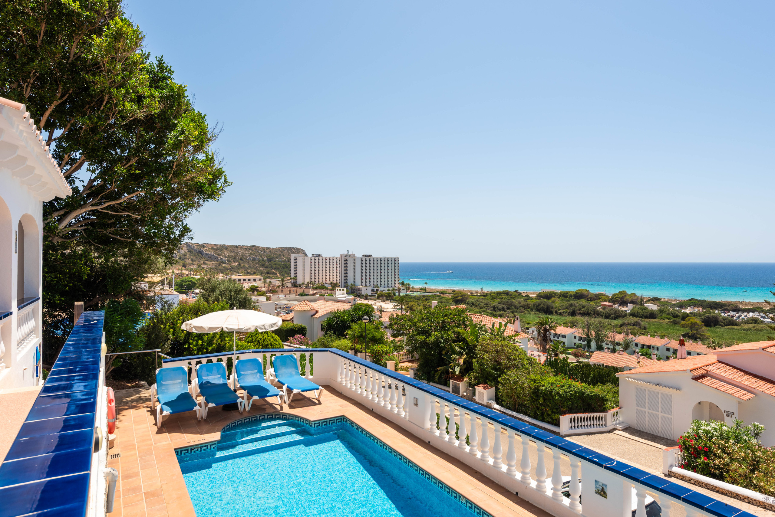 Precioso chalet de 180m2 de construcción , de tres dormitorios, situado en la ladera de Torre Solí, con magníficas vistas a la playa de Son Bou.