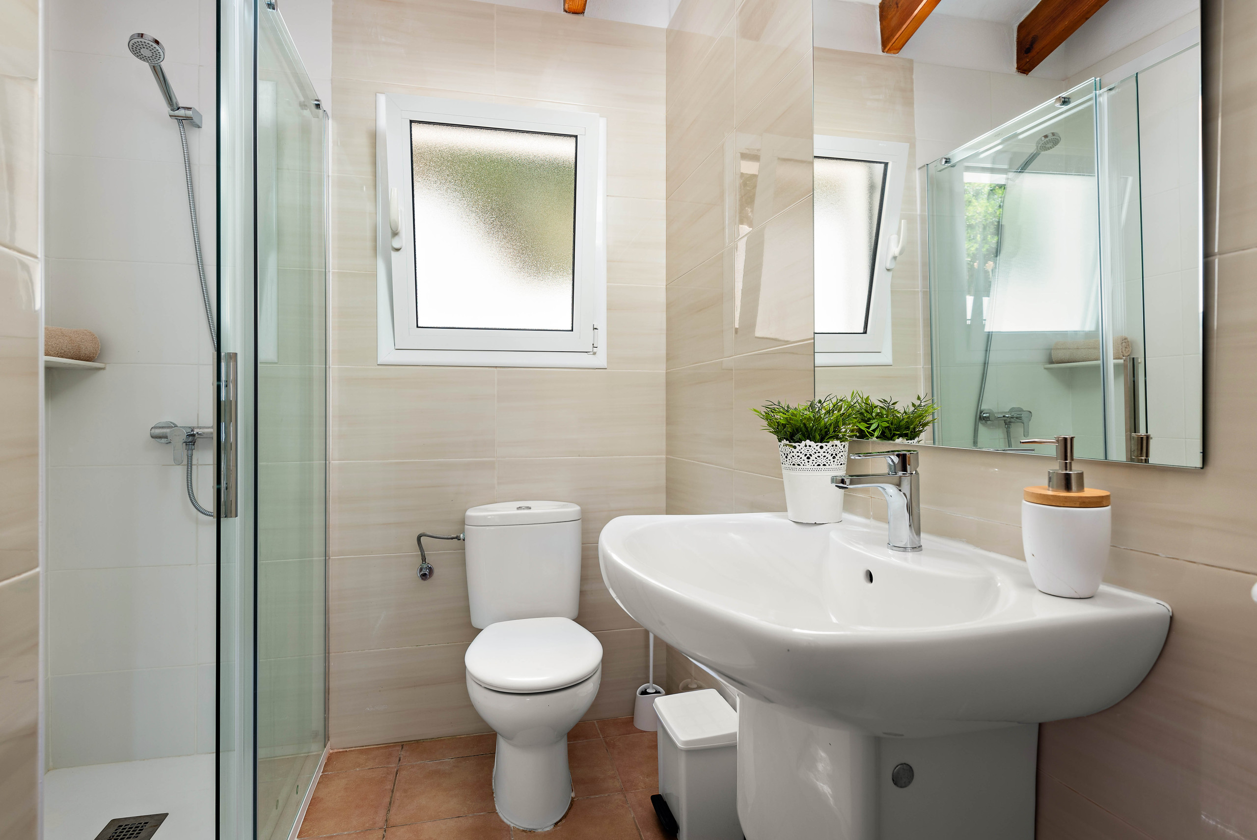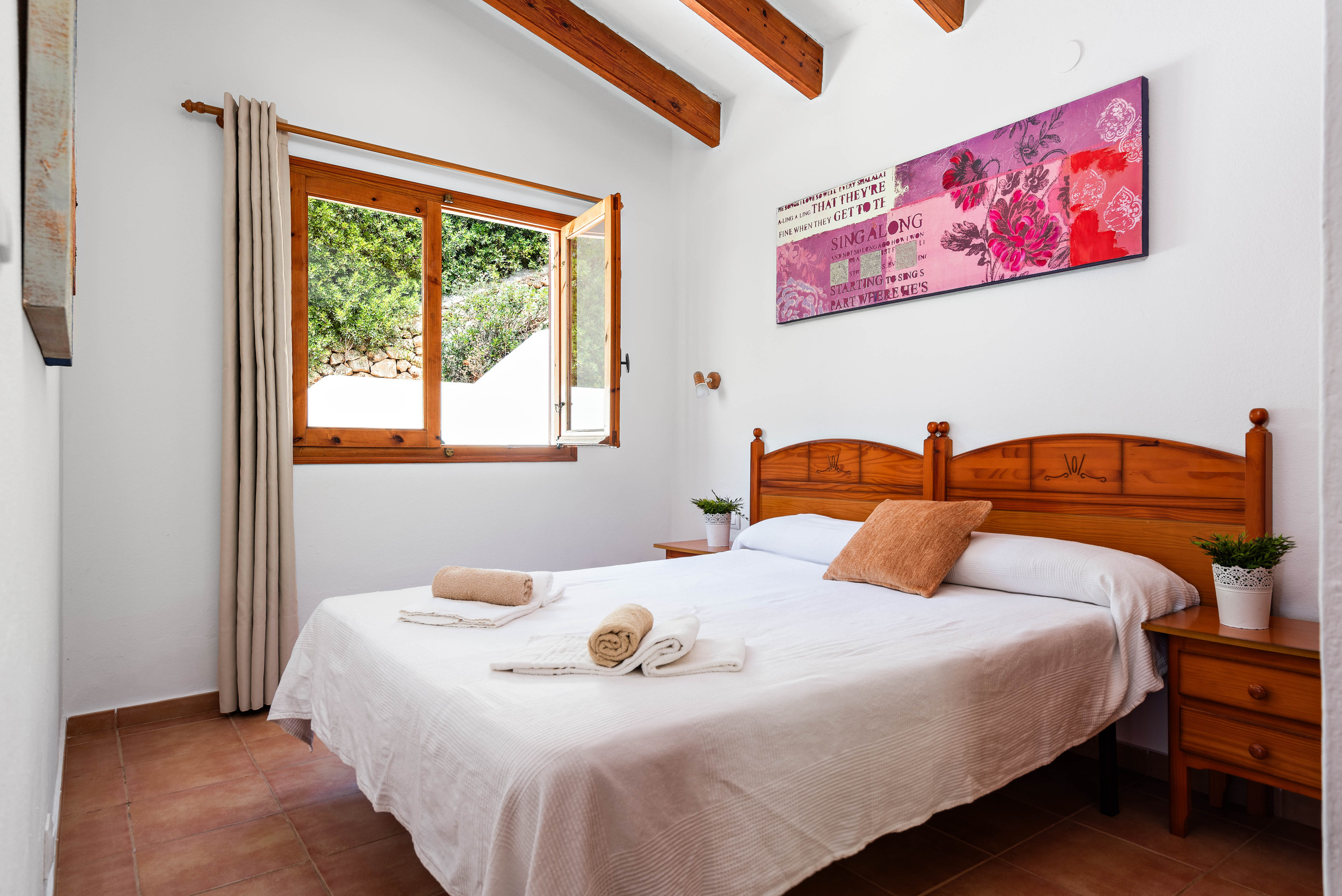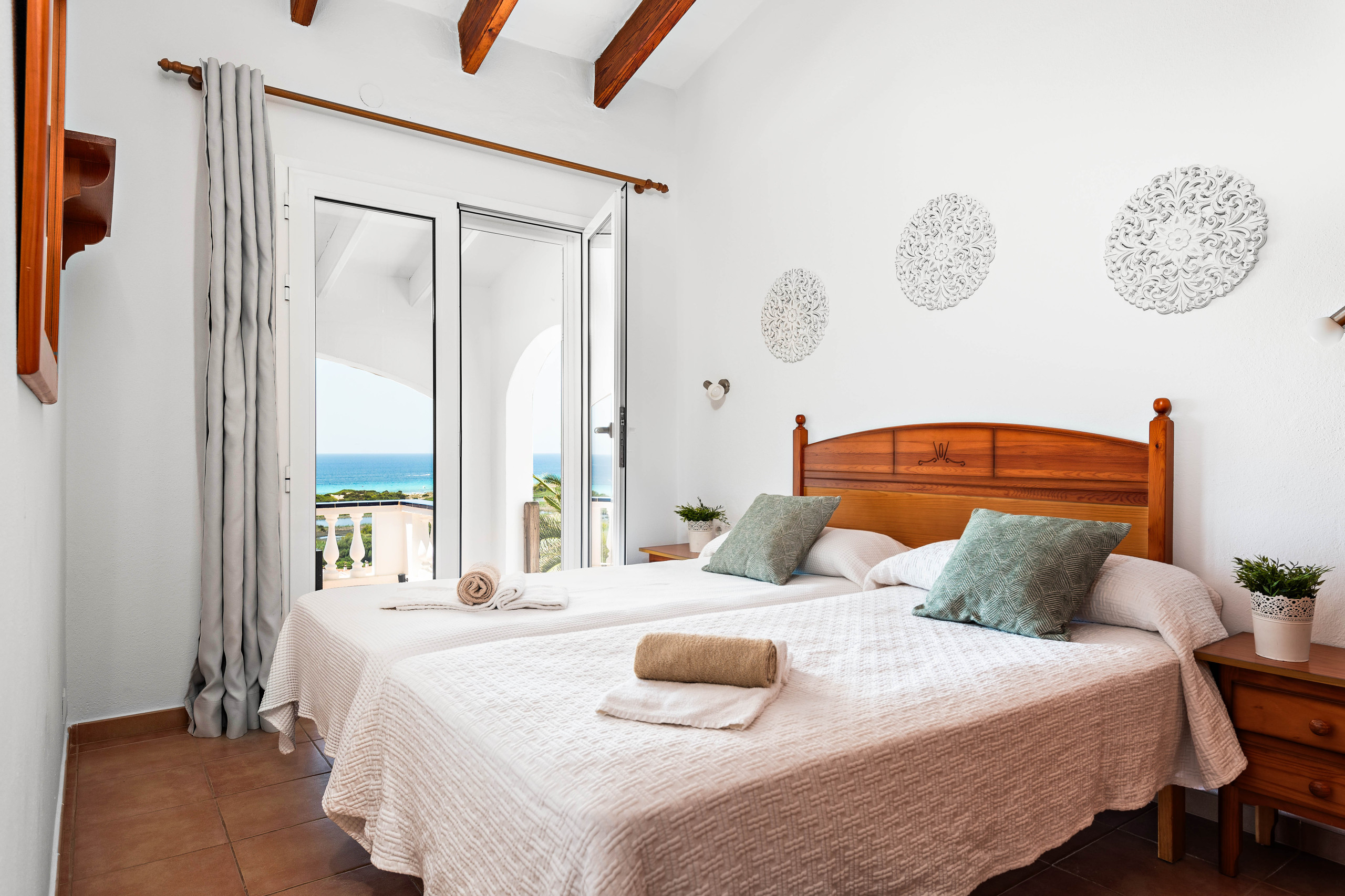 Las habitaciones están ubicadas en la planta alta de la villa, donde encontramos 1 habitación de matrimonio y 2 habitaciones dobles. Todas las habitaciones con terraza y dos de ellas con excelentes vistas al mar. Y 2 baños unos con ducha y el otro con bañera. La villa dispone de ventiladores en los dormitorios.