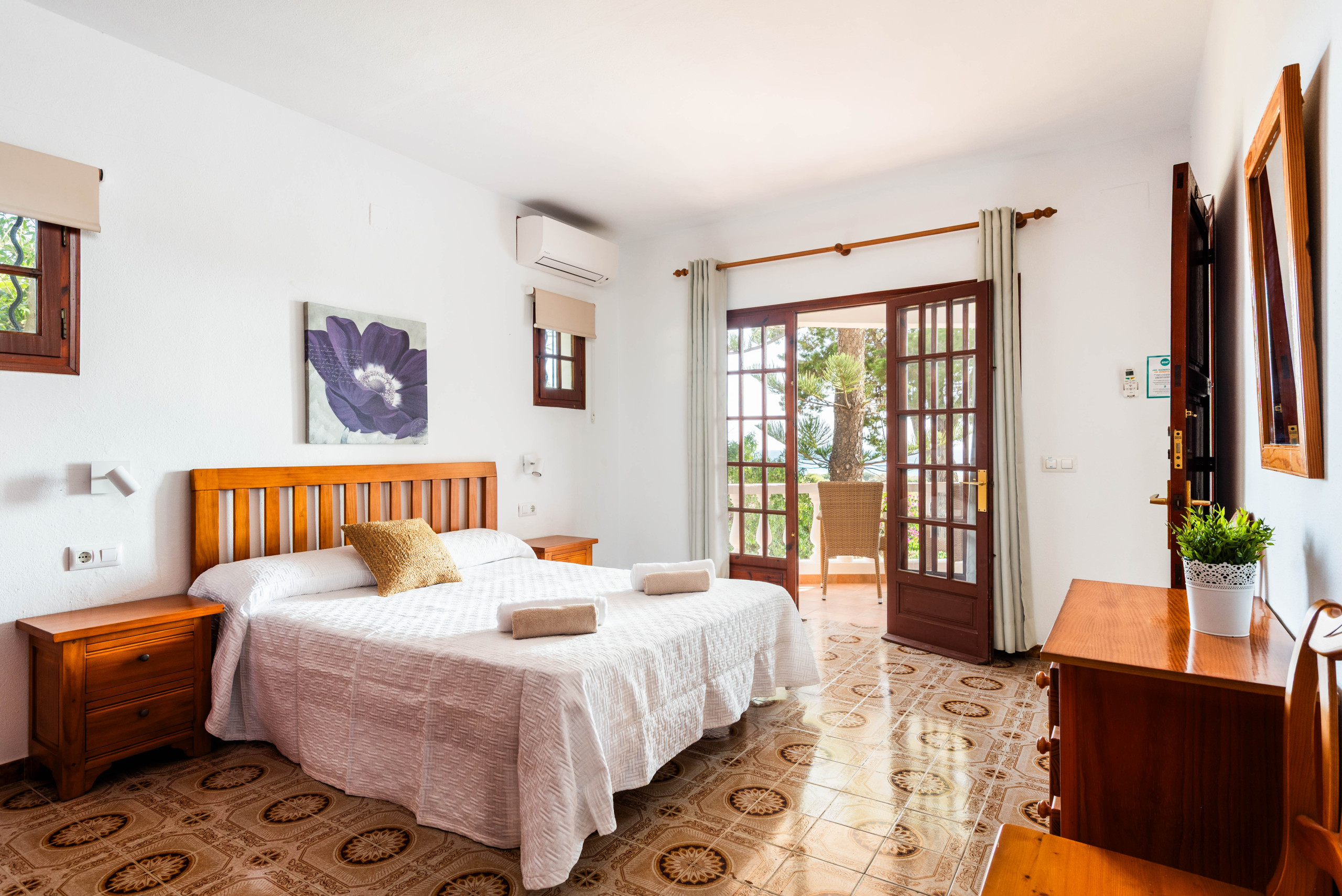 La villa consta de tres dormitorios, la habitación principal, un poco más grande y con acceso a la terraza con vistas al mar, dispone de cama de matrimonio, aire acondicionado y baño en suite con bañera, y los otros 2 dormitorios ( disponen de ventiladores de techo) con 2 camas individuales cada uno . Por último un baño independiente con bañera.