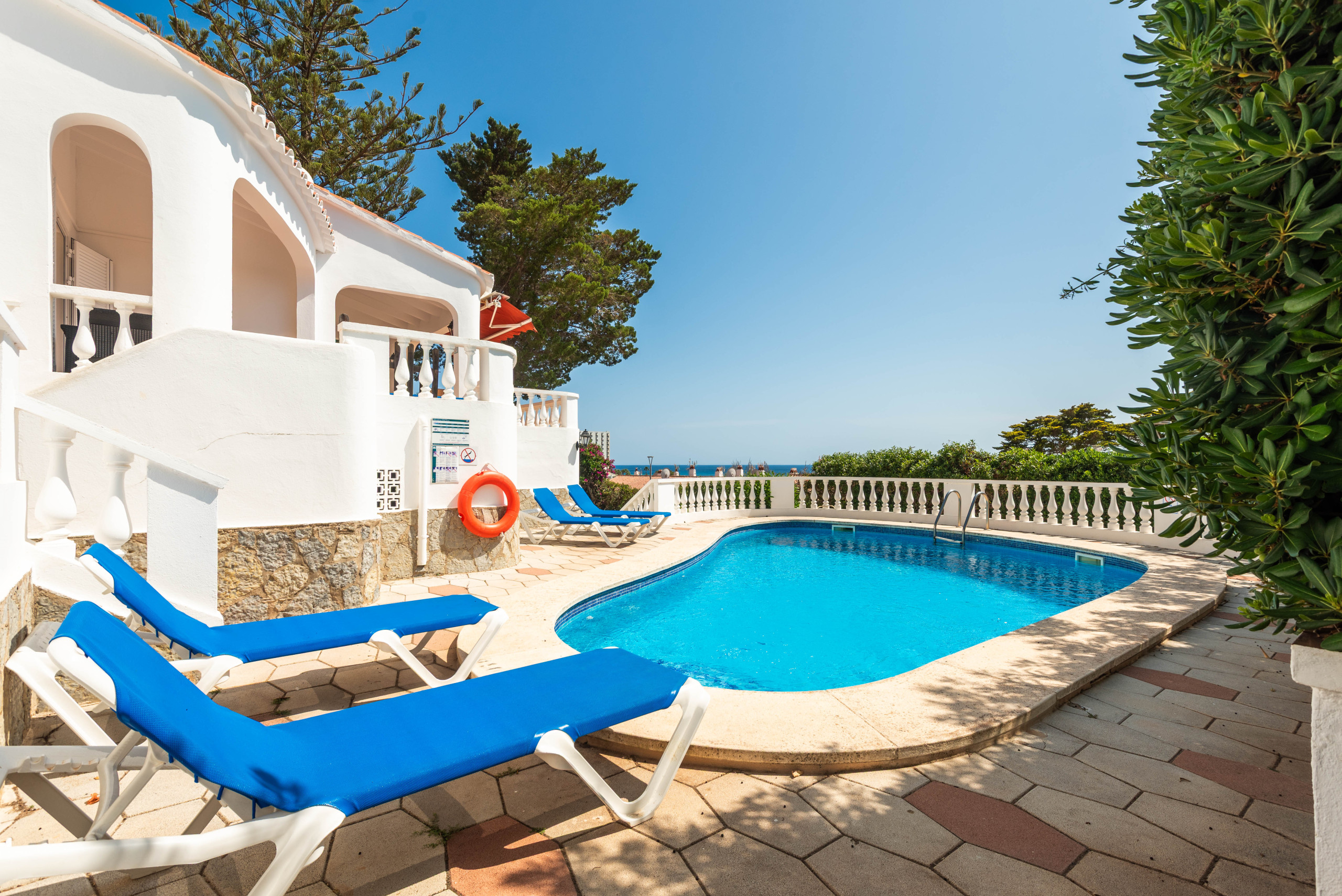 Preciosa villa de 242 metros construidos de tres dormitorios de estilo mediterráneo, ubicada muy cerca de la playa de Son Bou y del centro comercial. Dispone de un acceso privado para el coche y toda la casa esta construida al mismo nivel, por lo que resulta muy cómoda.