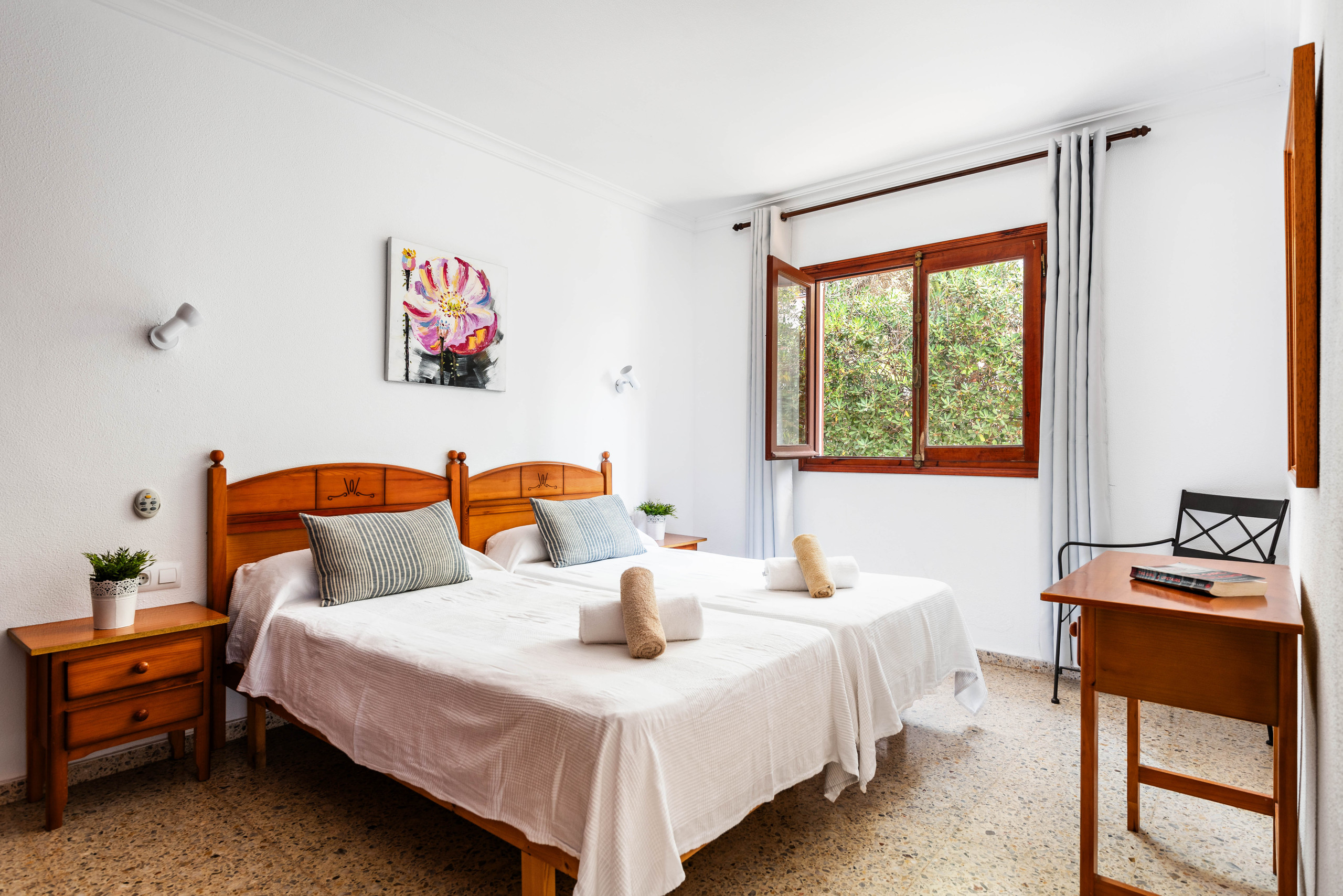 La villa consta de tres dormitorios, uno de ellos con cama de matrimonio, aire acondicionado y con acceso a la terraza con vistas y las otras dos habitaciones con camas individuales y ventiladores de techo. 2 Baños compartidos uno con bañera y el otro con ducha. Amplia terraza cubierta con mobiliario exterior para disfrutar las puestas de sol. Gran piscina y una cómoda área para disfrutar de una barbacoa.