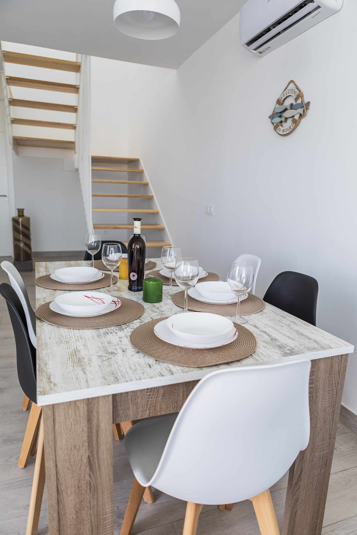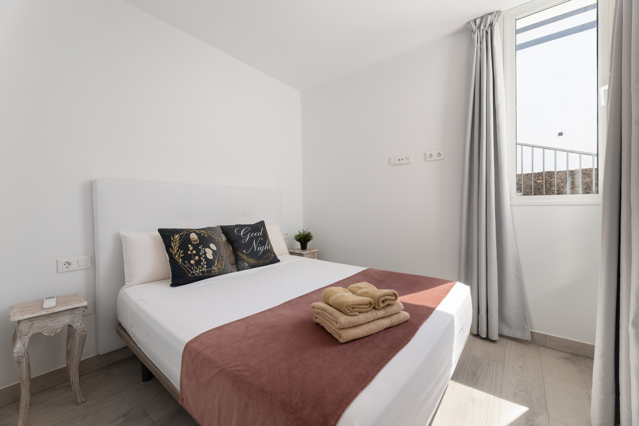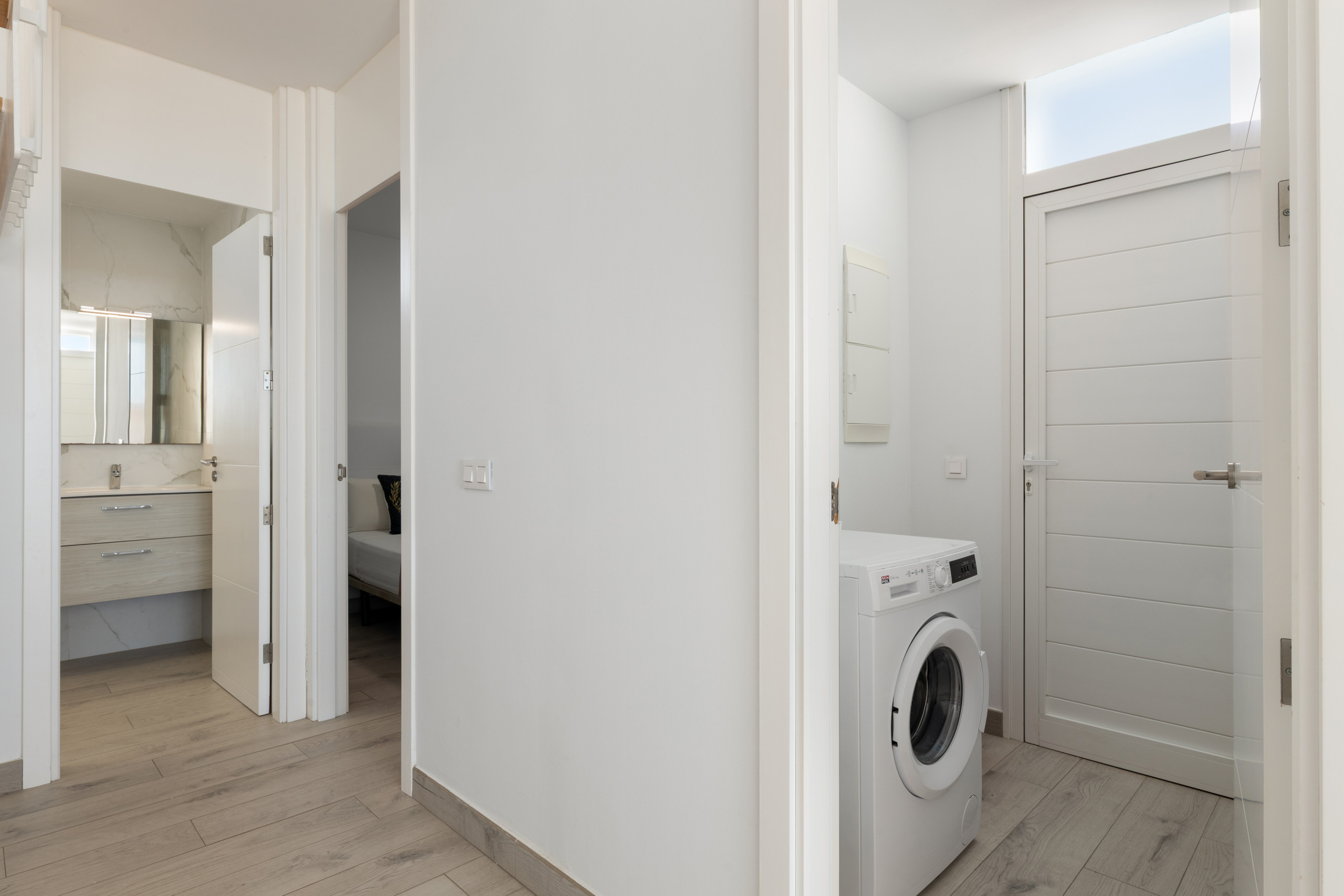 La propiedad dispone de tres amplios dormitorios y dos baños de estilo contemporáneo, ofreciendo un espacio cómodo y versátil para familias, grupos de amigos y trabajadores en remoto que buscan un ambiente inspirador y tranquilo. Su cocina totalmente equipada, elegante y funcional, permite disfrutar de momentos culinarios con todas las comodidades.