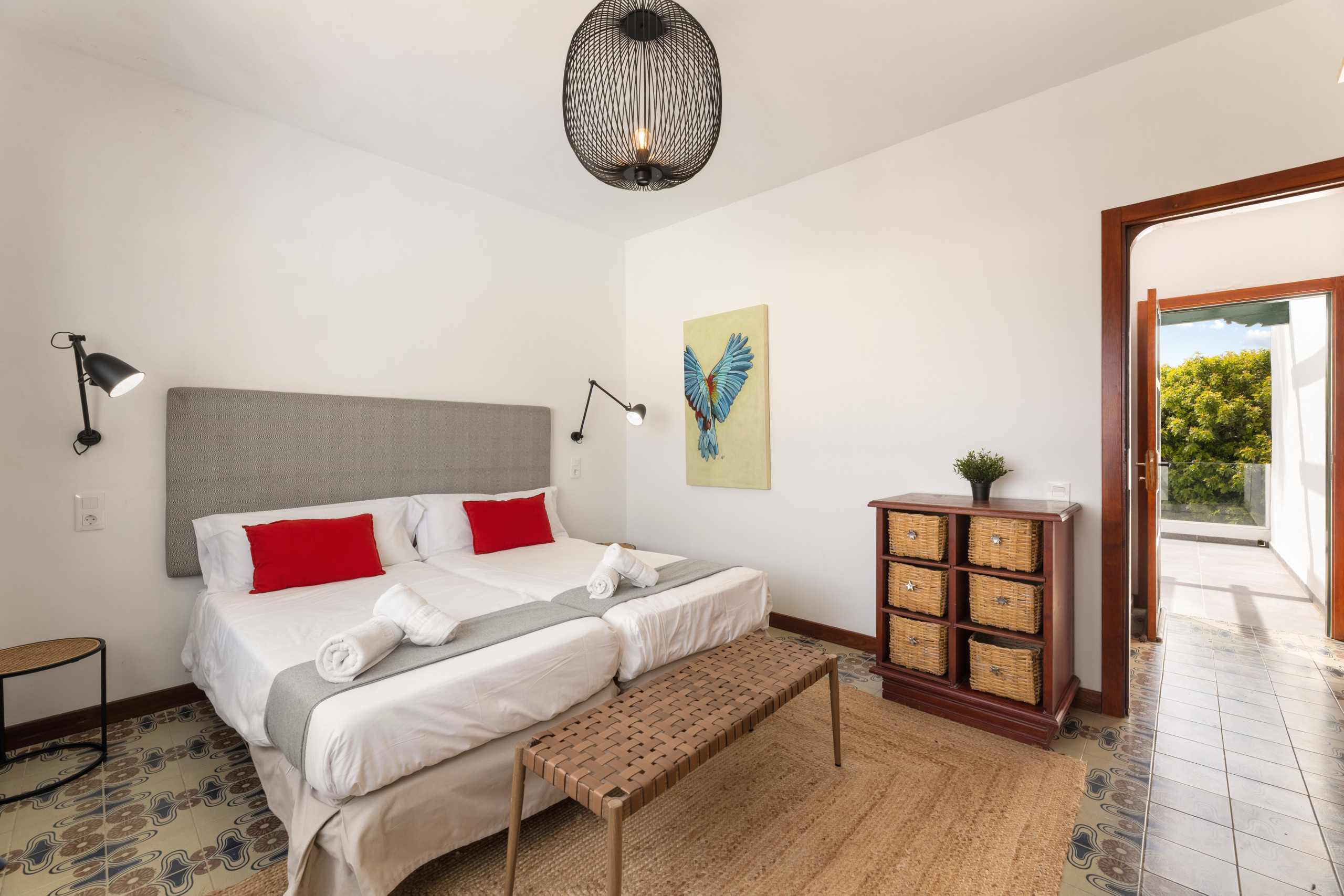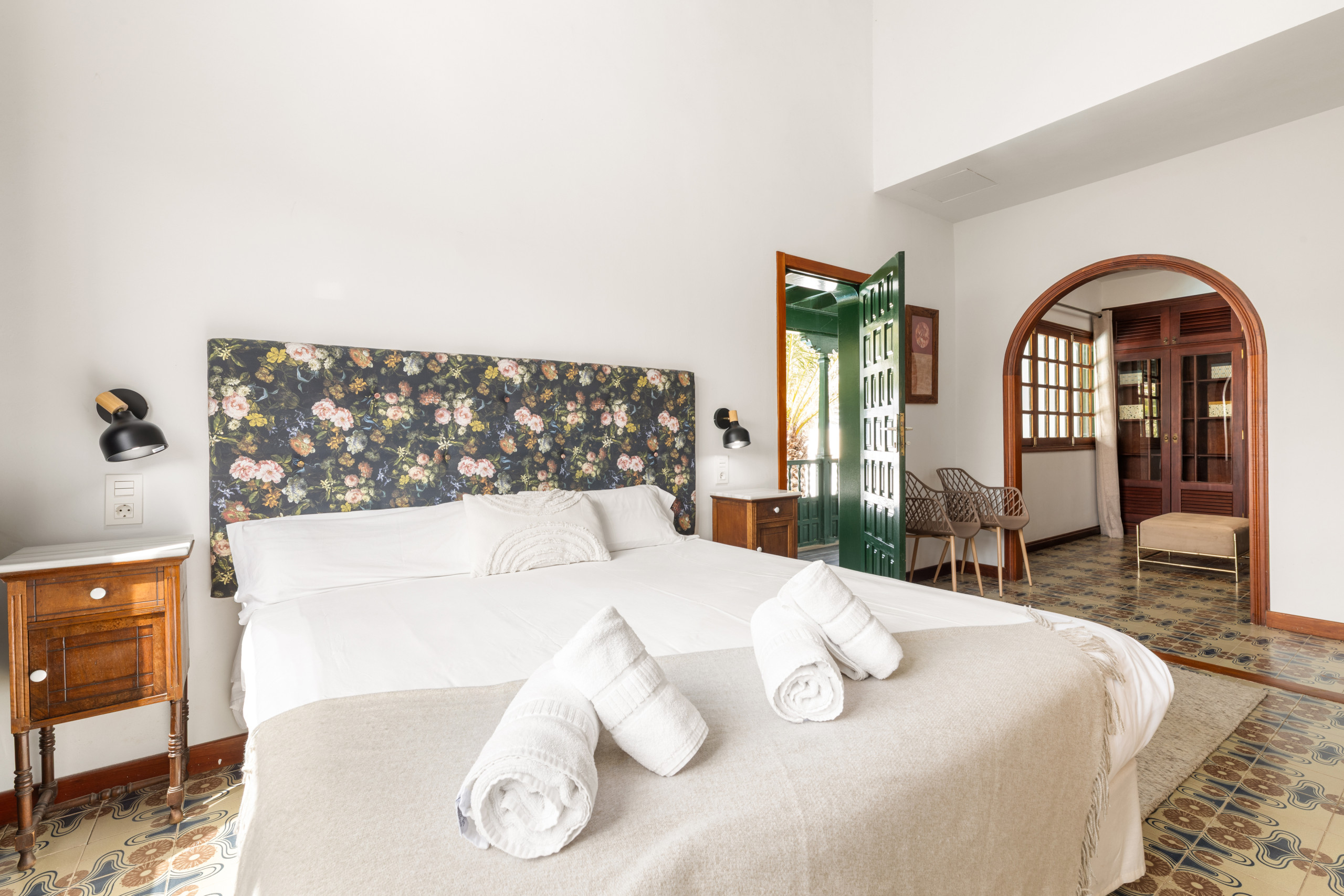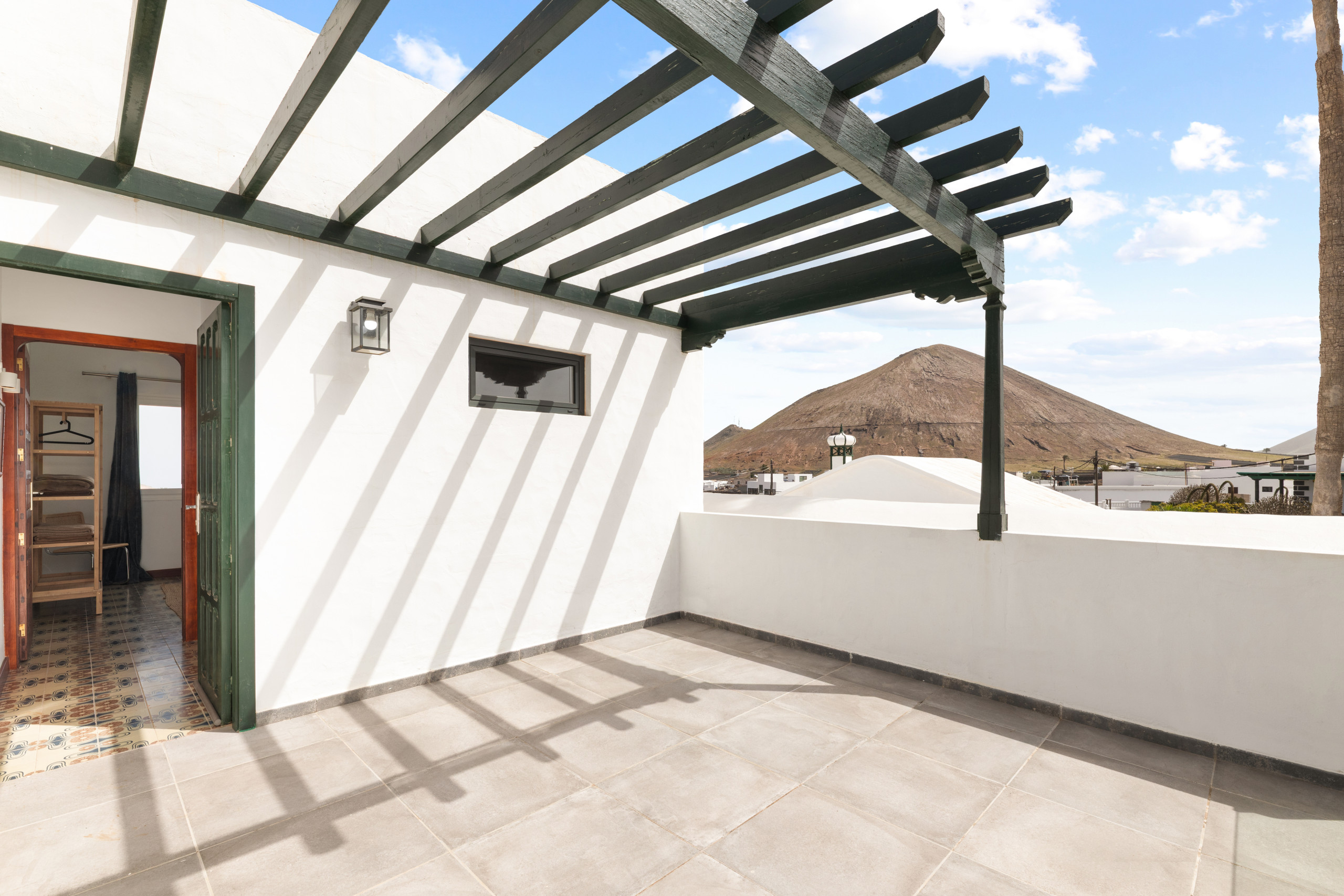 El piso superior alberga la suite principal, equipada con cama de matrimonio, un baño con ducha, un gran vestidor y acceso al encantador balcón canario, perfecto para disfrutar de los atardeceres.