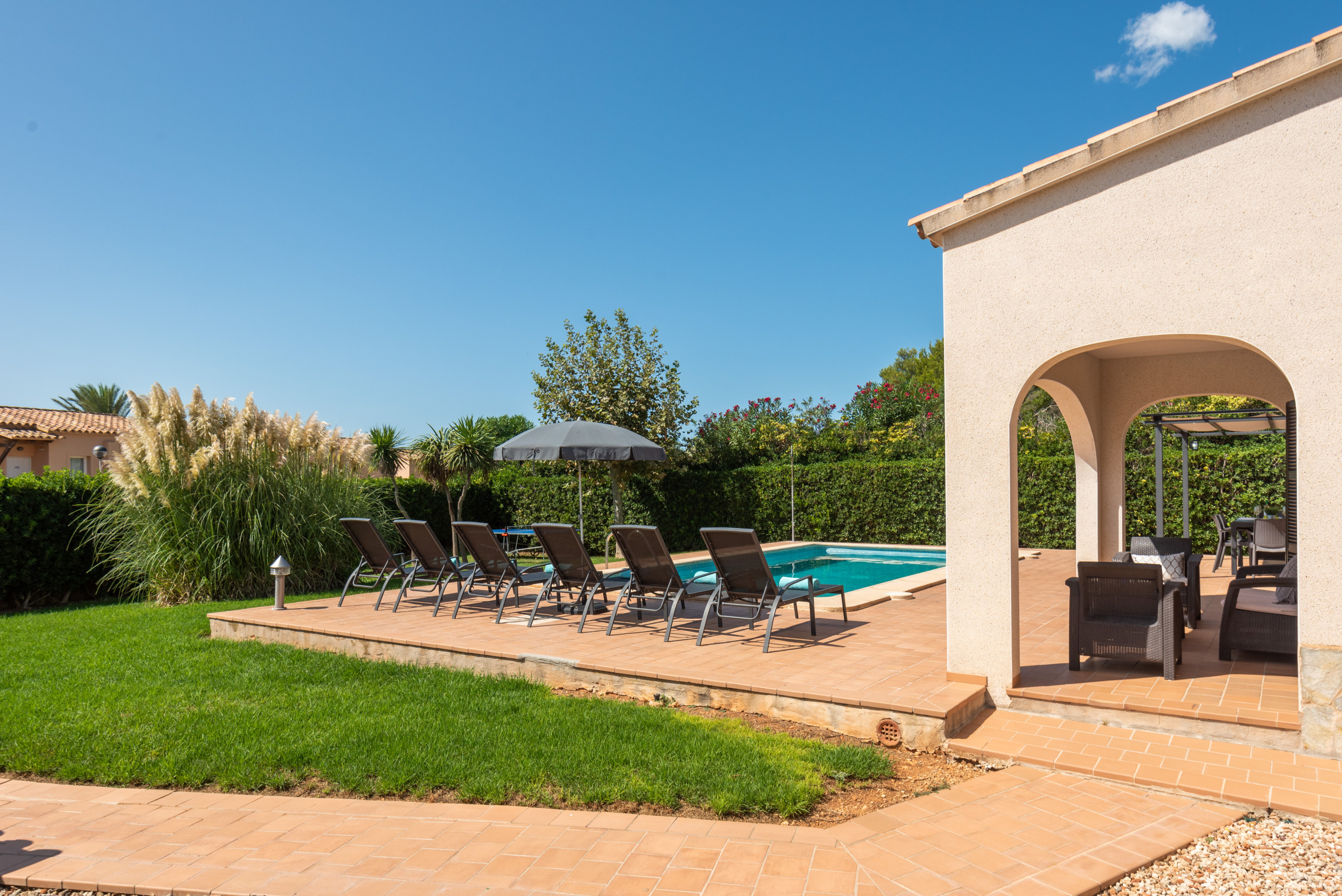 Villa Conchita, construida en una sola planta, ofrece tres amplios y luminosos dormitorios,