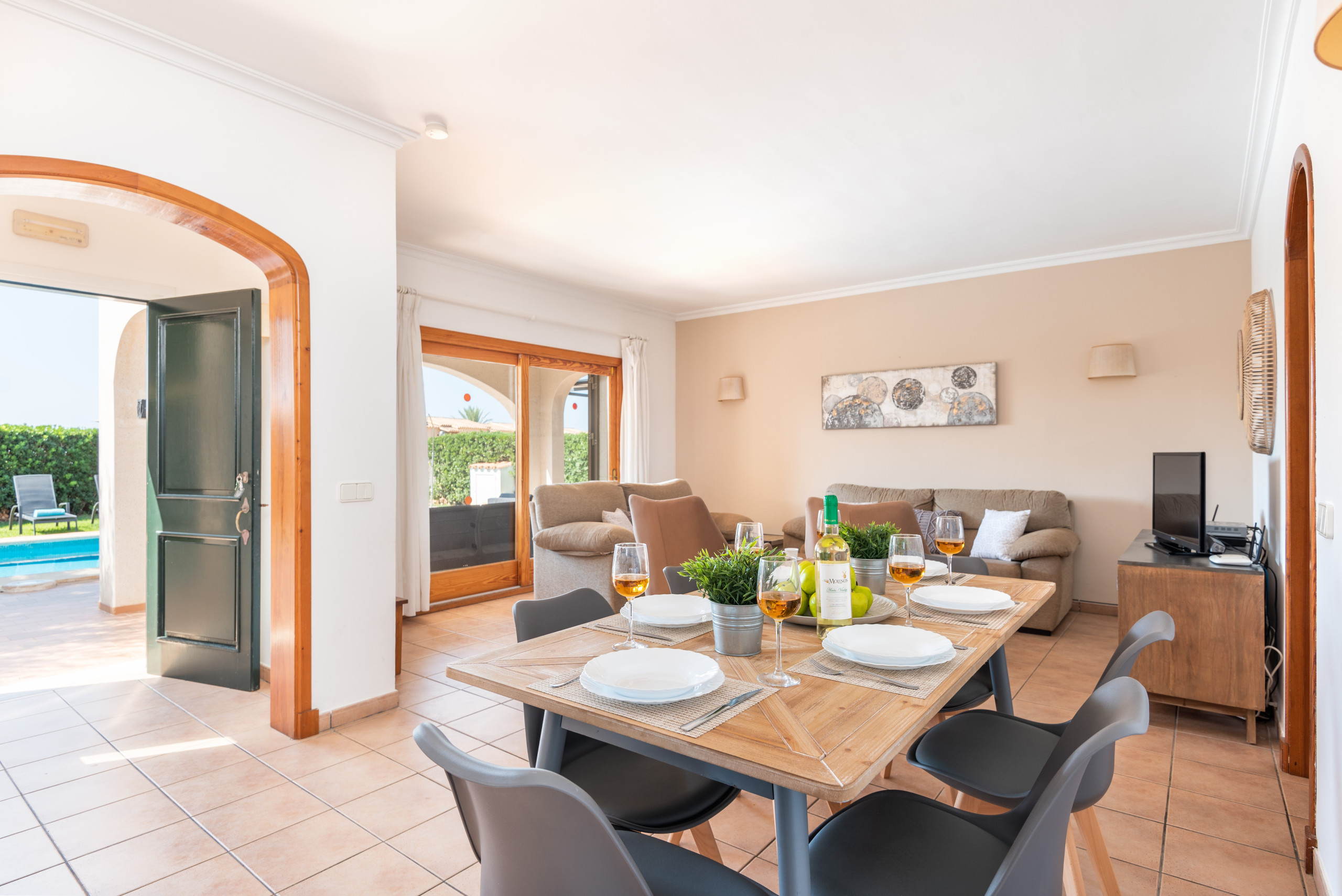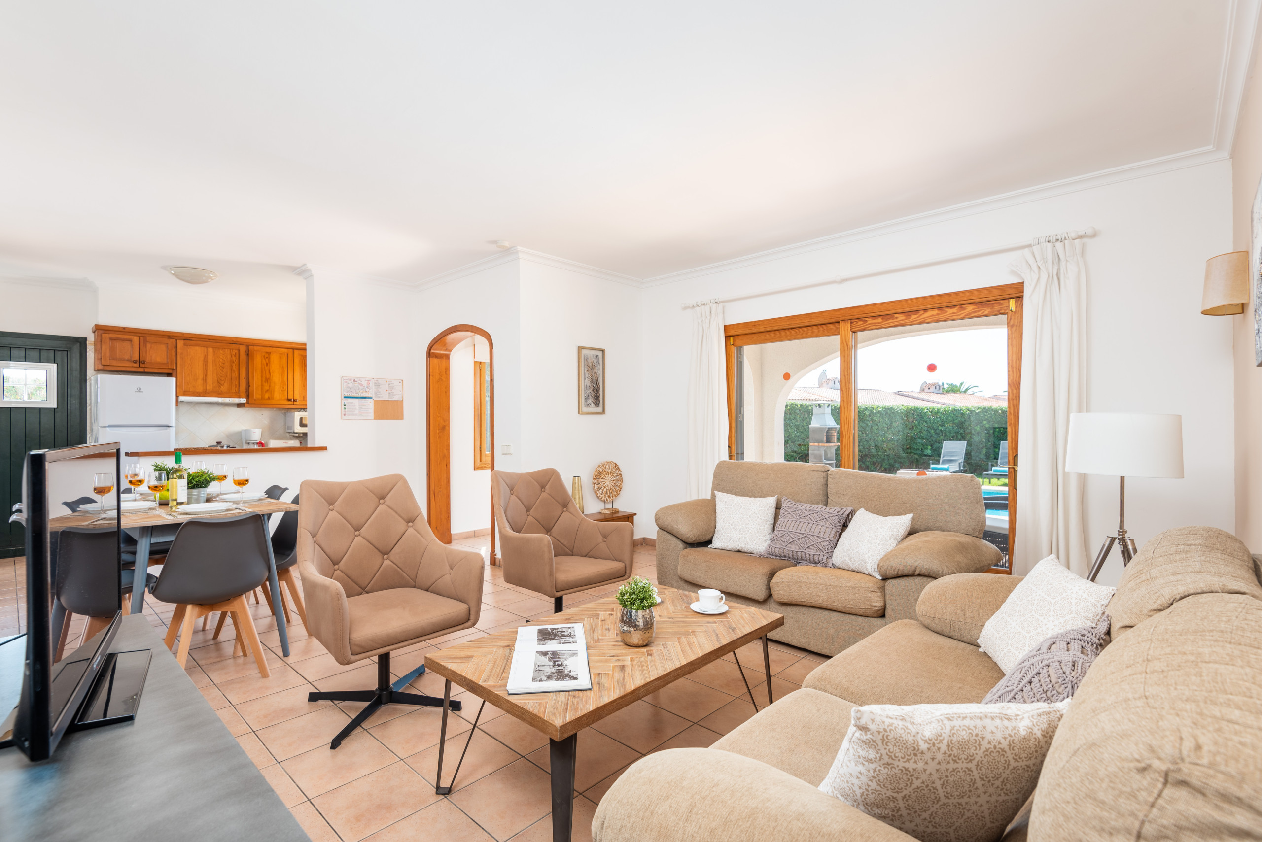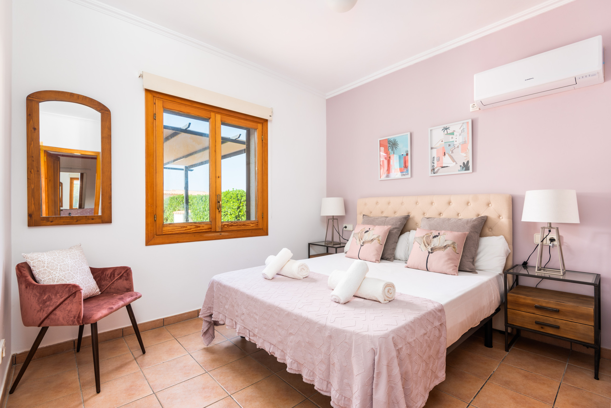 Villa Nicolás, construida en una sola planta, ofrece tres amplios y luminosos dormitorios,