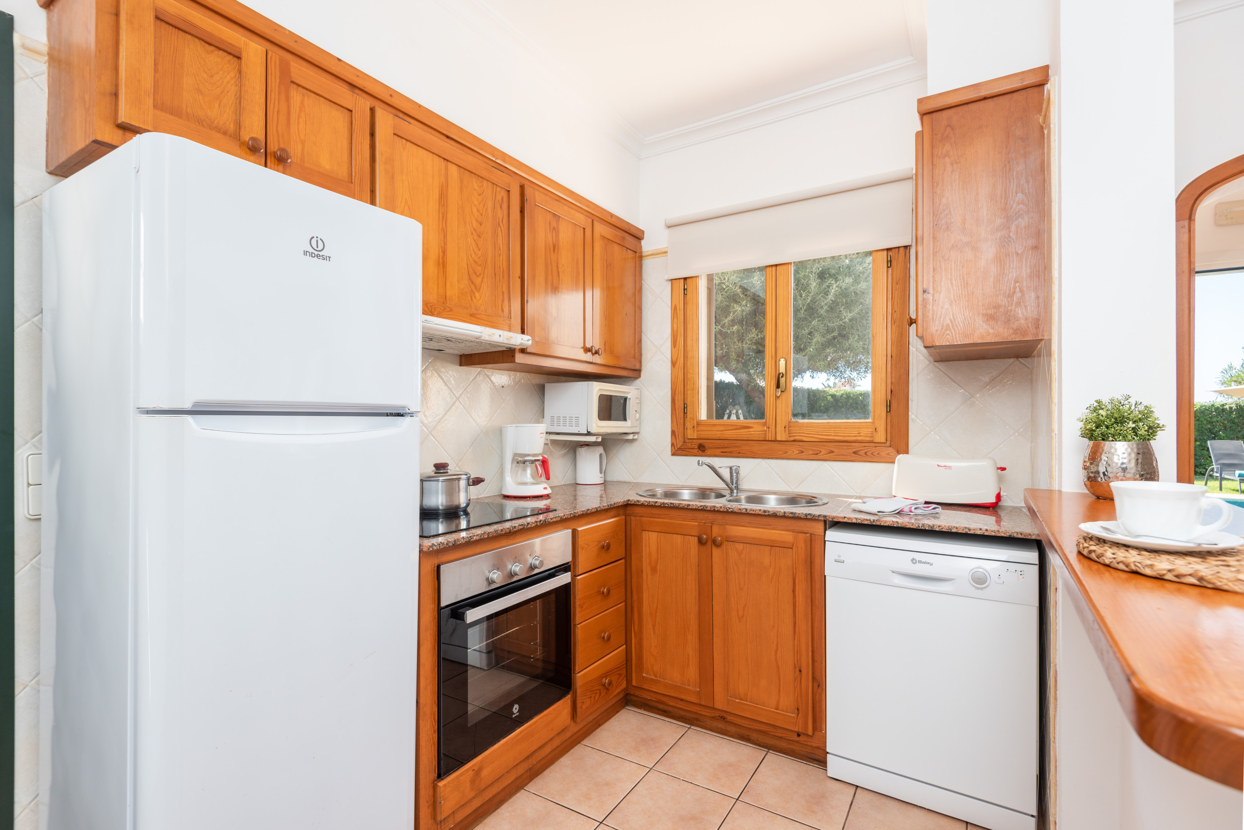 bien equipada: Horno, vitrocerámica, microondas, lavavajillas, frigorífico/ congelador.