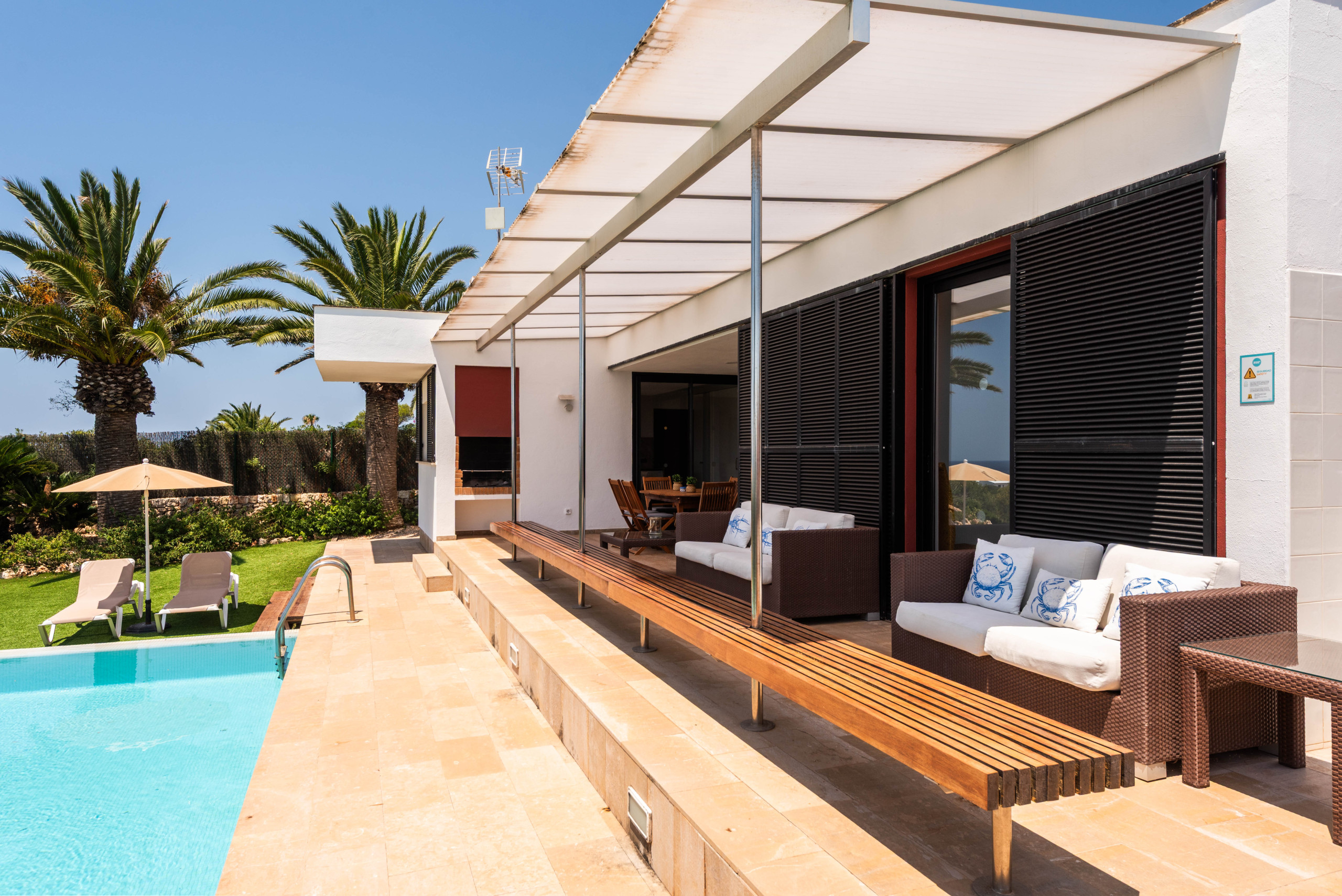 Situated in a tranquil setting with magnificent panoramic views of the coastline, Villa Rosa is the perfect villa for those who want to get away and relax in a wonderful house. It's privileged position in the middle of 2 resorts means you get the best of both, the old fishing village of Binibeca is about a 7 minute drive away, while the resort of Punta Prima is about a 5 minute drive away. Also, Binibeca beach is ideal for spending a day with the children.
