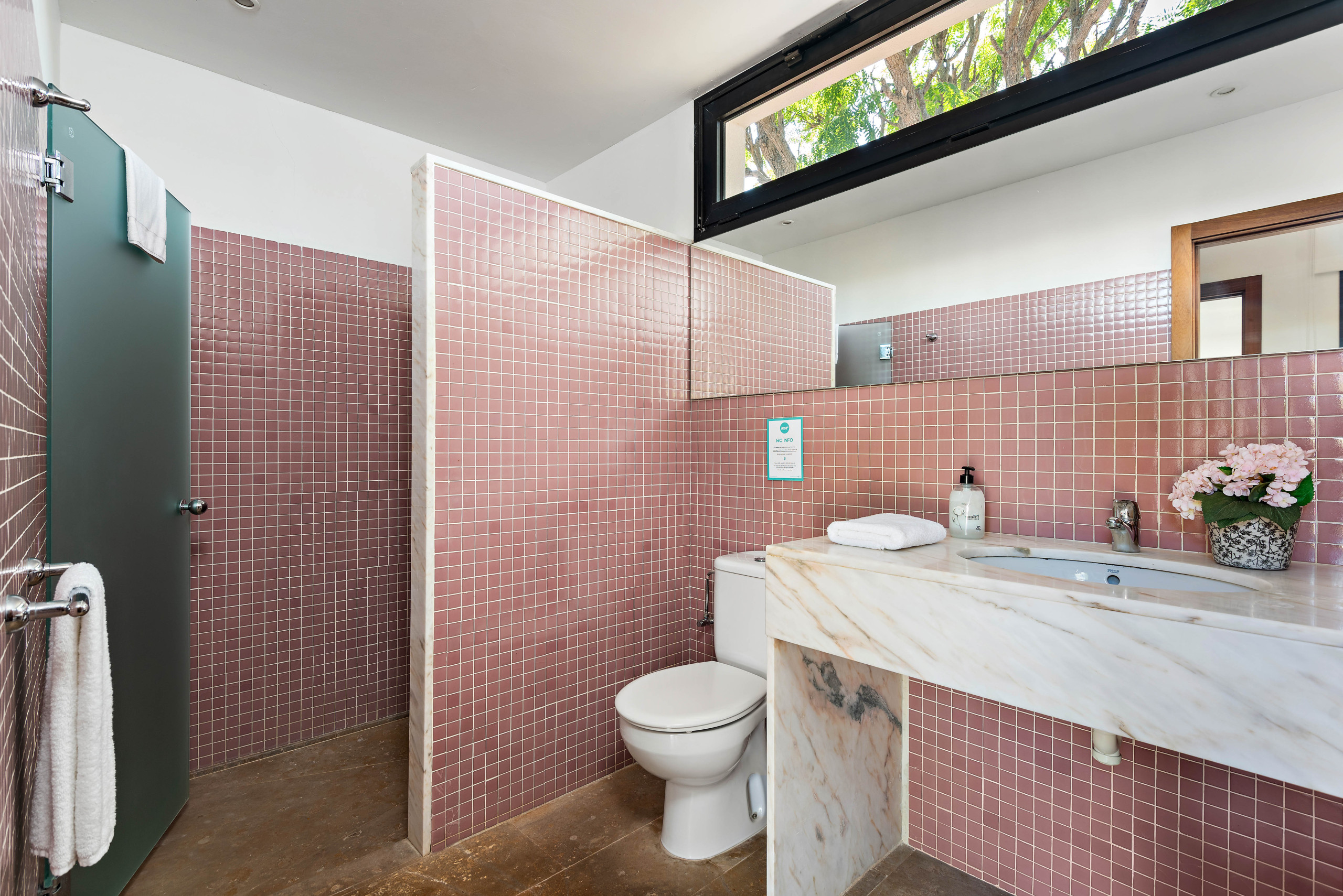 The villa has a modern design with spacious rooms and elegant furnishings. The living-dining room and separate kitchen open onto the covered terrace, which is slightly raised to give you the best of those great sea views. It has an amazing infinity pool that runs the full width of the terrace, perfect for a morning swim before relaxing on a sun lounger. The villa has free Wi-Fi for customers.