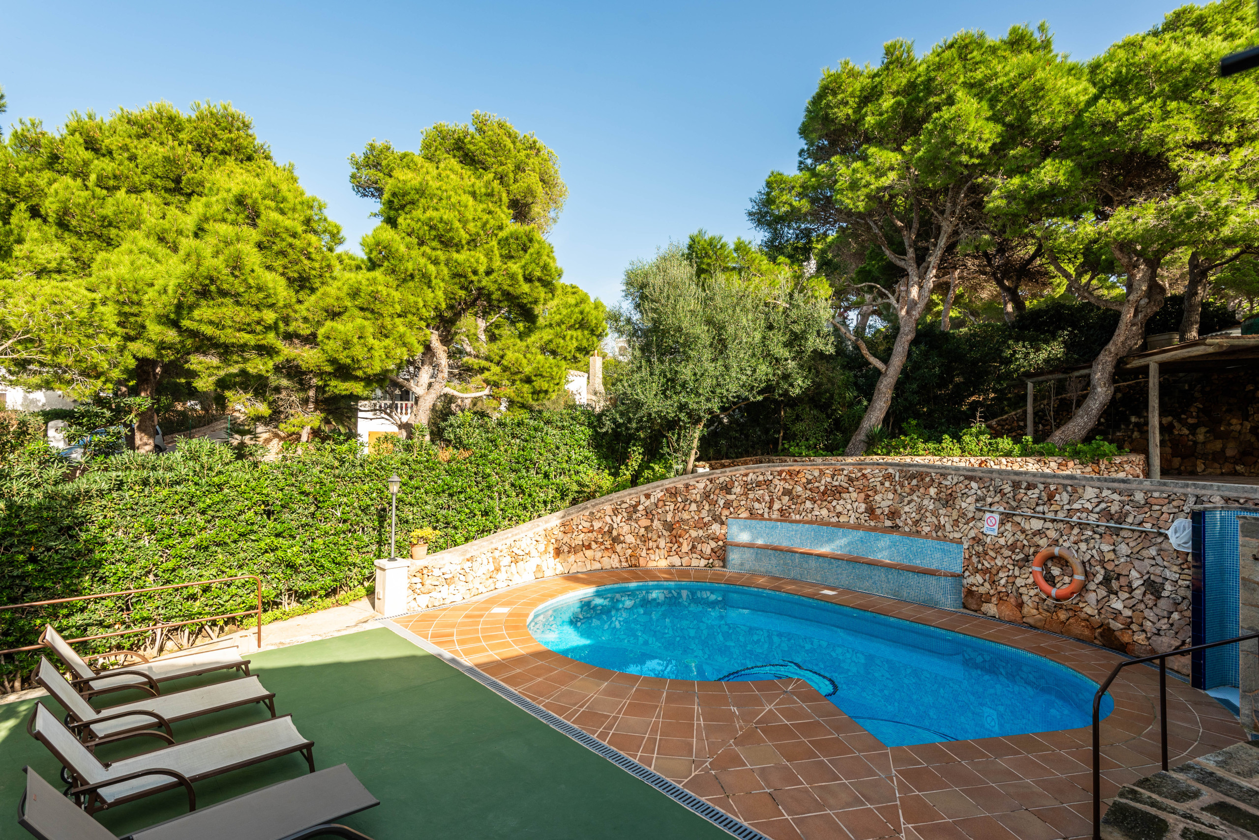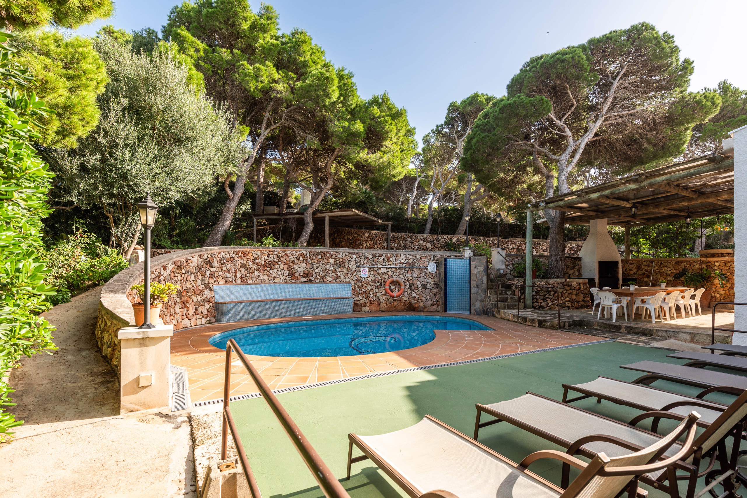 Exterior: Covered BBQ area, large and pleasant, located next to the pool. Solarium with sun loungers and kidney-shaped pool. Outdoor shower next to the pool. Covered parking area for 3 cars.