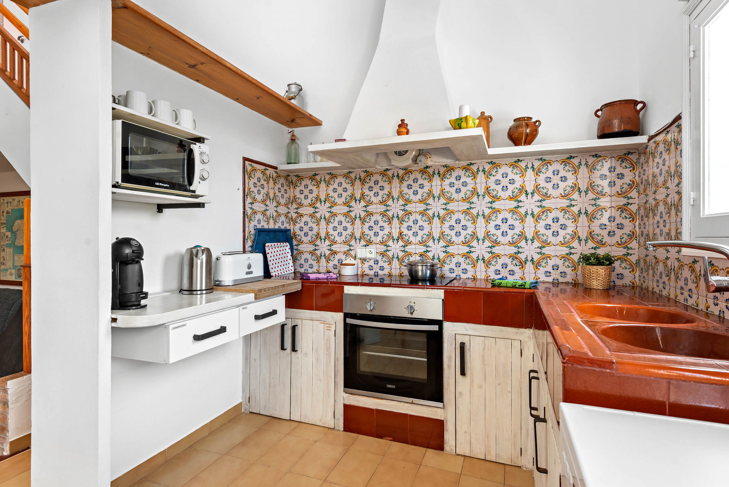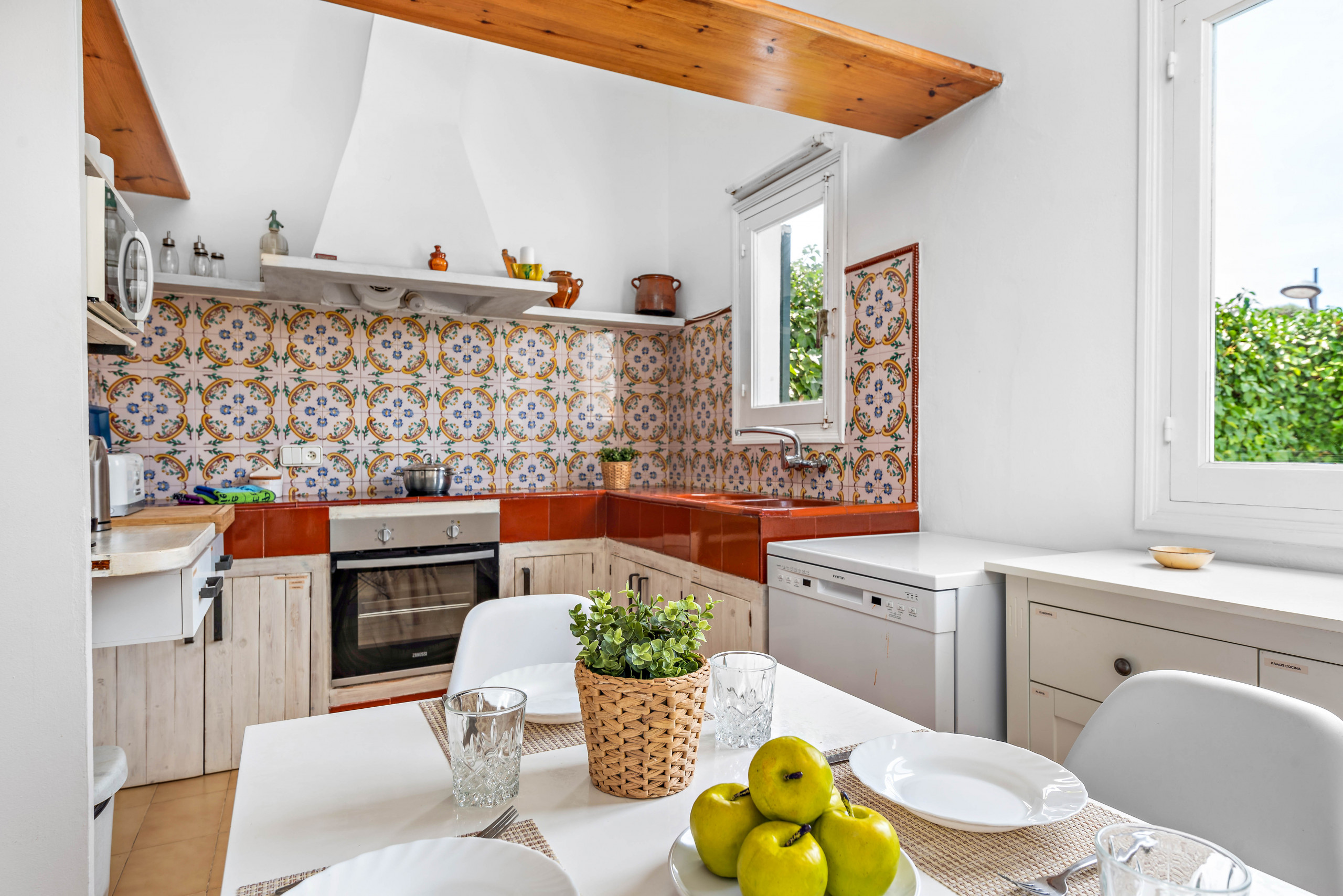 Inside, we find a rustic-style kitchen with everything you need; electric oven, ceramic hob, microwave, toaster, capsule coffee machine and dishwasher. There is also a dining area with tables and chairs adjacent to the bright living room. Living room with TV and Wifi.