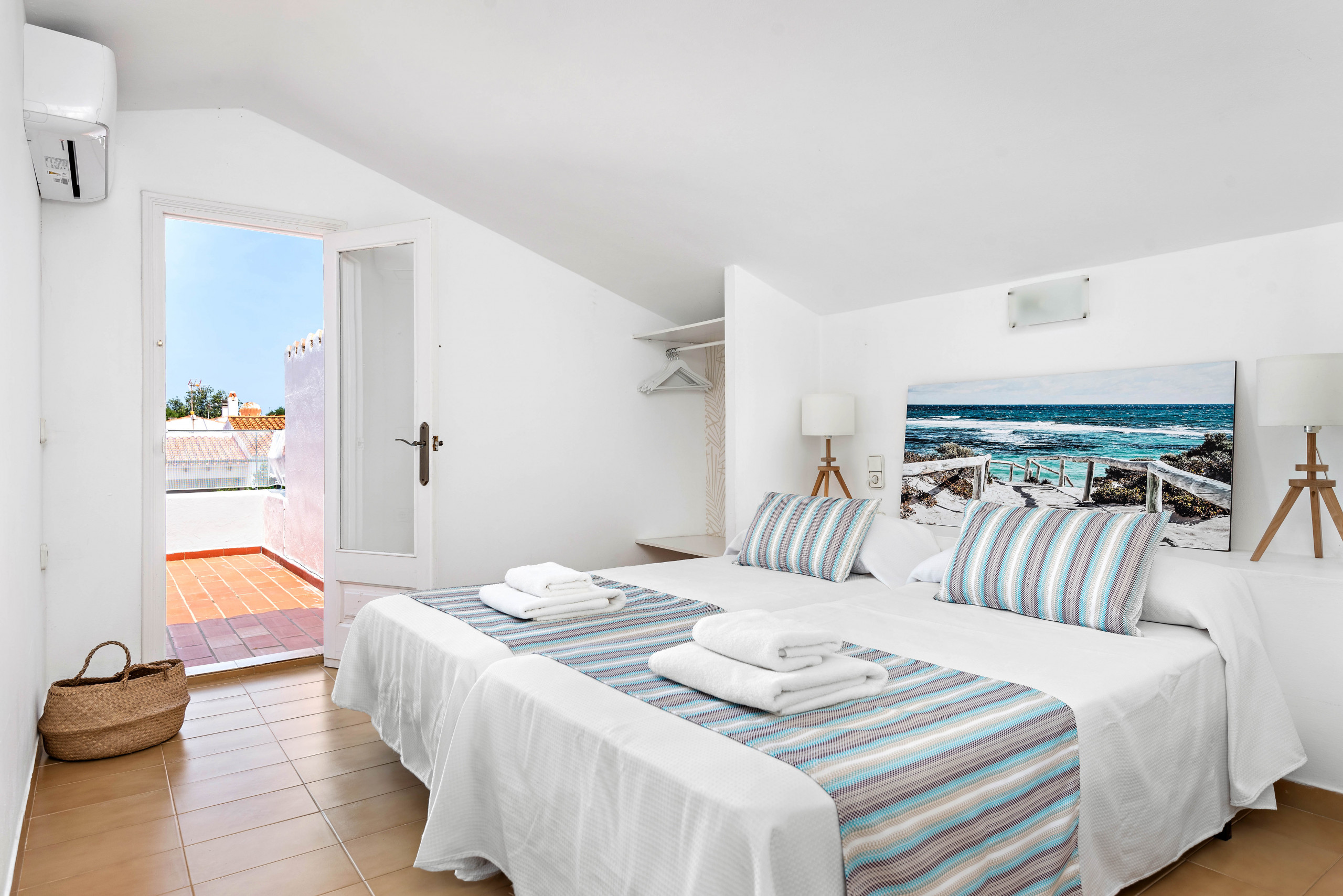 Villa Ses Cinc Claus is a modern, pleasant, and well-located 3-bedroom property, right next to the beach of Calan Blanes, within 2 minutes walking distance. This popular resort has a good choice of shops and places to eat, as well as children's play areas and waterpark (high season only). The old capital town and harbour of Ciutadella is a short drive or bus ride away and is well worth a visit for a much greater choice of facilities. The villa has 3 bedrooms; two of them with two beds each, the third bedroom has a double bed and an en suite bathroom with shower, there is also another a full bathroom in the villa. The living room has satellite TV, DVD and free Wi-Fi for customers. Also has a fully equipped kitchen, furnished terrace, barbecue, garden, and private pool. The villa has air conditioning in the bedrooms. The villa is equipped and has capacity for up to 6 occupants.