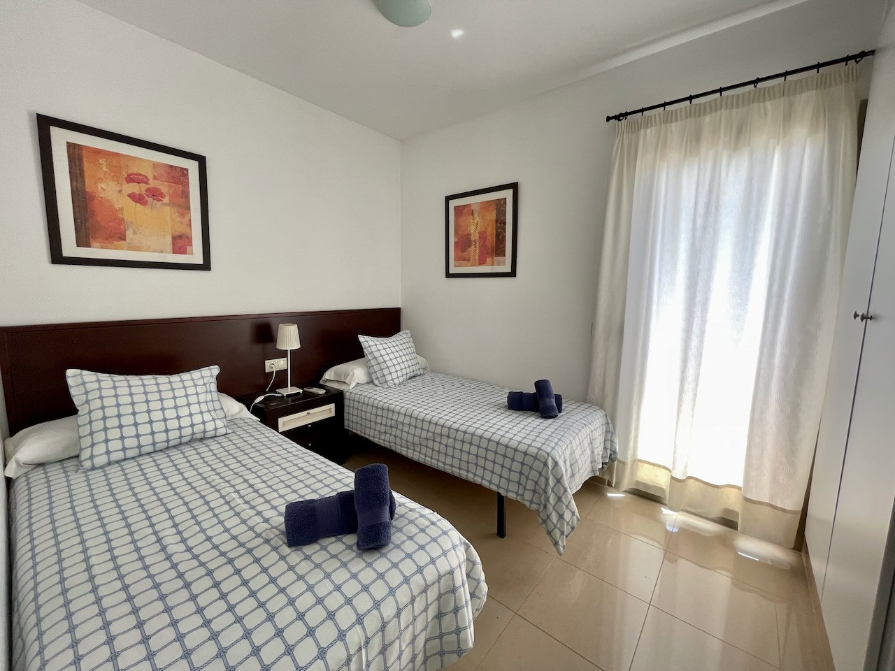 In the hallway, there is a bathroom for the 2 bedrooms.