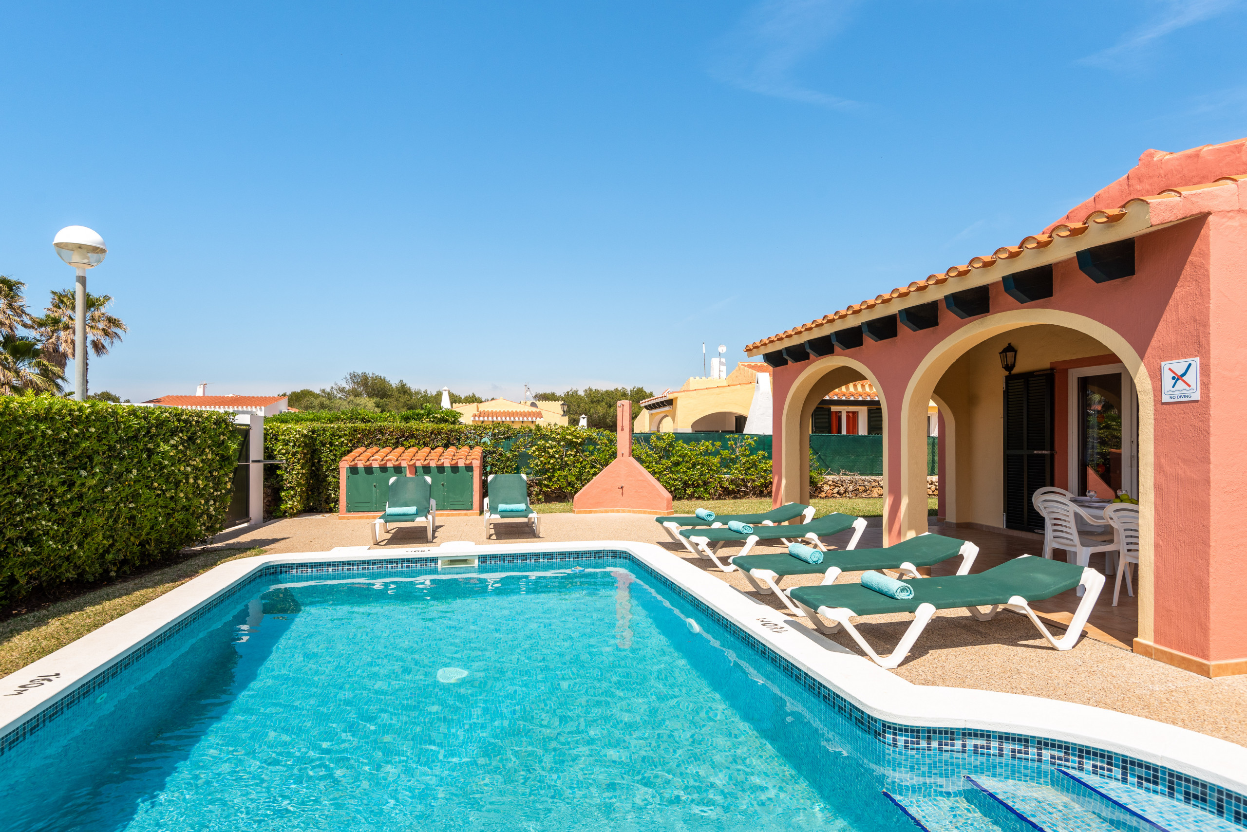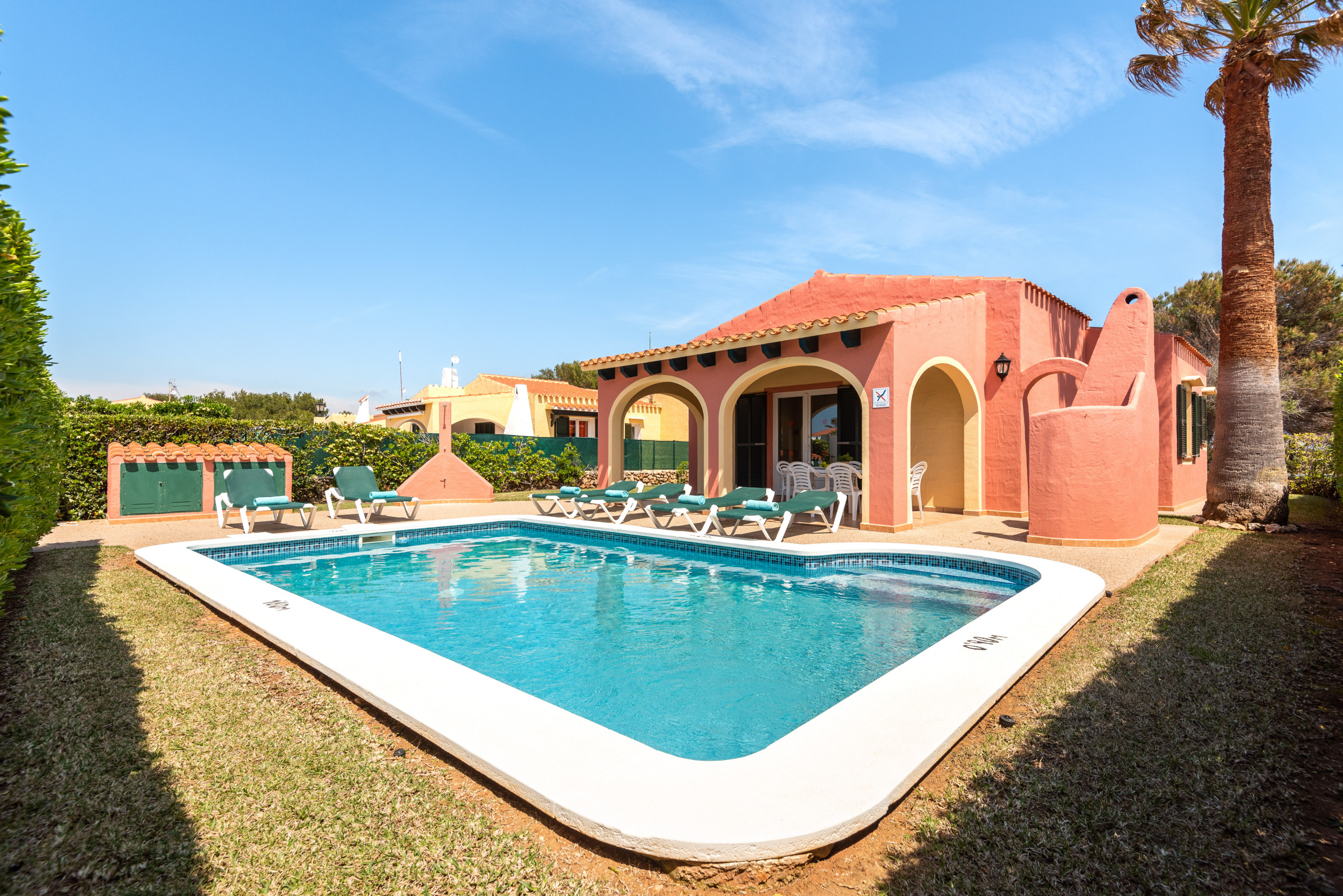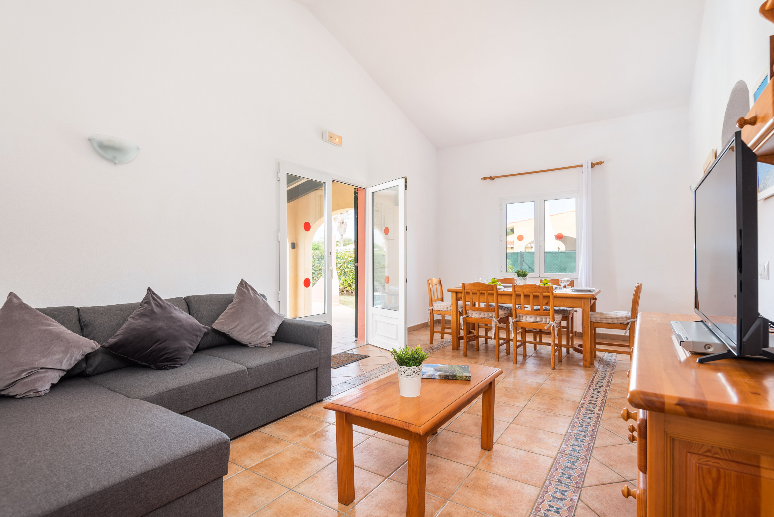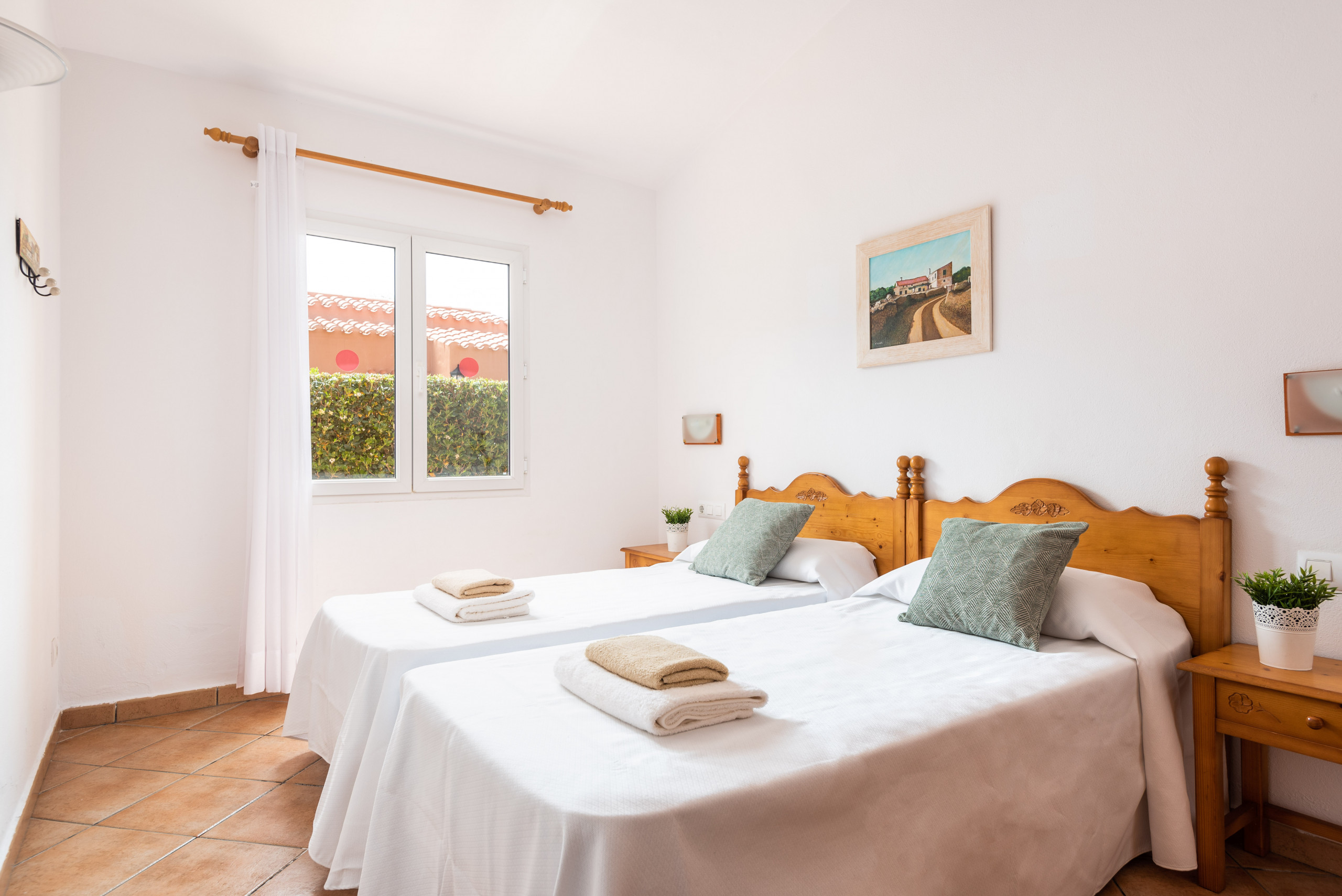 The Villas Begonias are located in the Cap D'Artrux area in the resort of Cala’n Bosch, just a five-minute drive from a sandy beach and just a fifteen-minute walk from the Cala’n Bosch marina, where you will find a good selection of shops, restaurants and outdoor cafes. These villas are of a classic style on the inside, while maintaining their typical Menorcan characteristics. They are located on one floor and have air conditioning in the living room and in all the bedrooms. They have 3 bedrooms, two of them with two single beds each which share a bathroom and one double bedroom with a double bed and an en suite bathroom.
